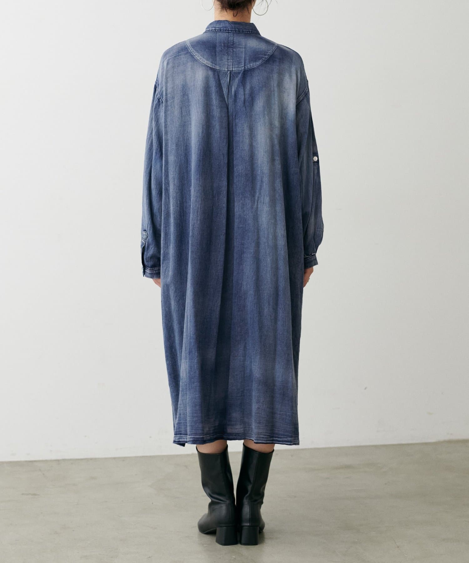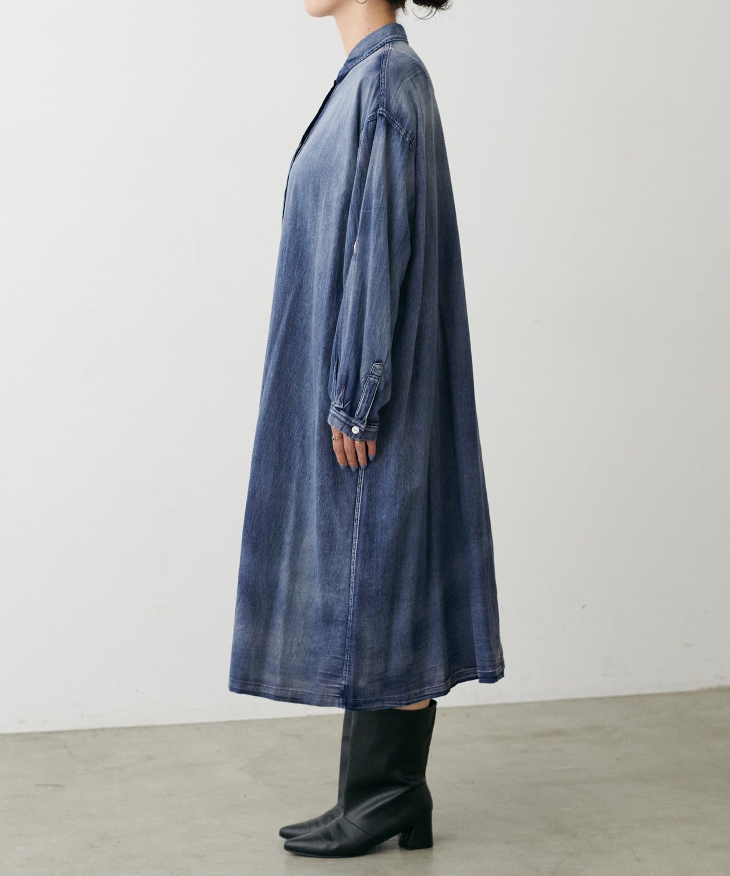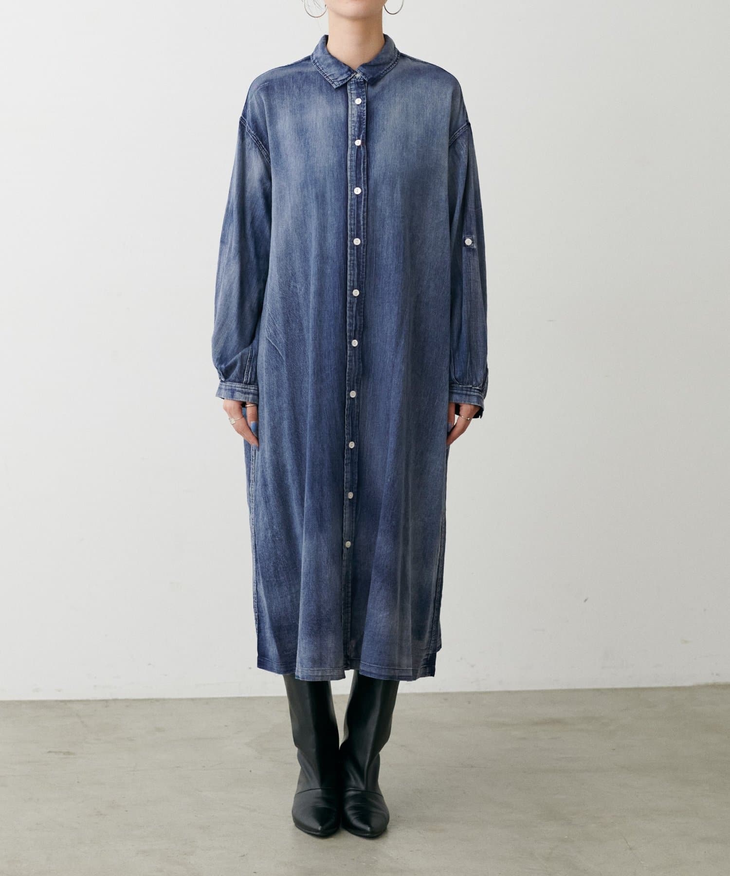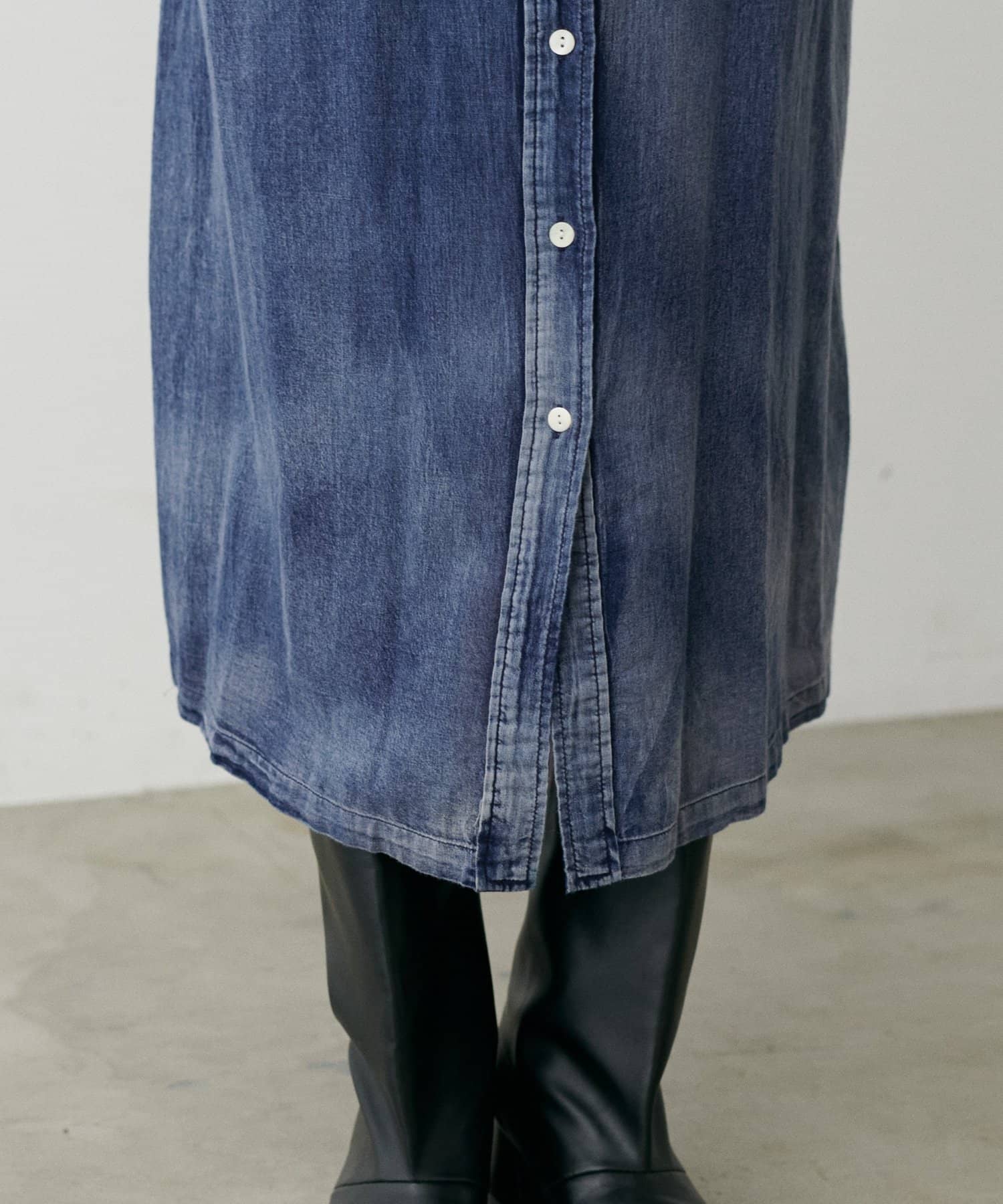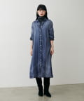 デニム風ロングシャツワンピース