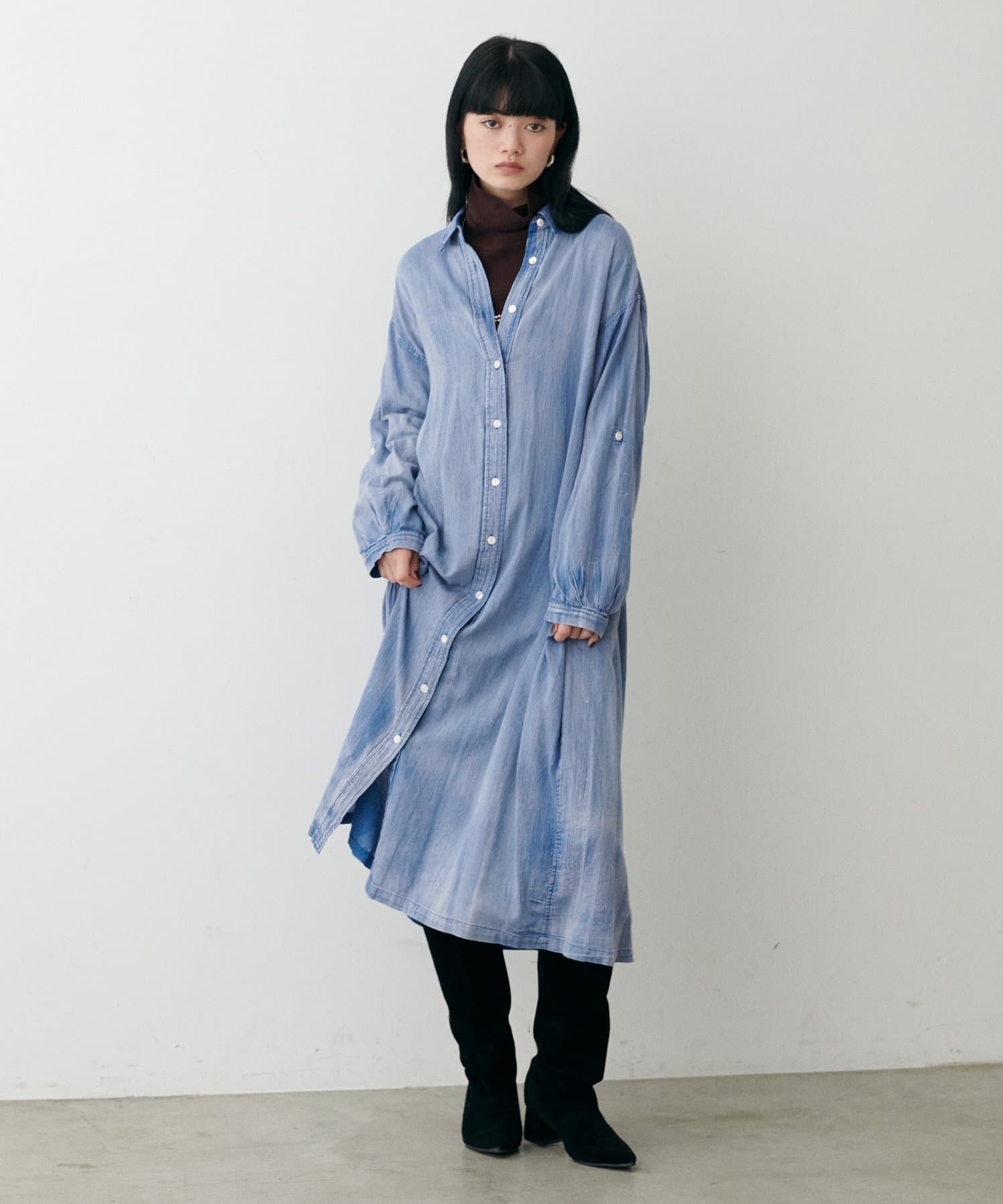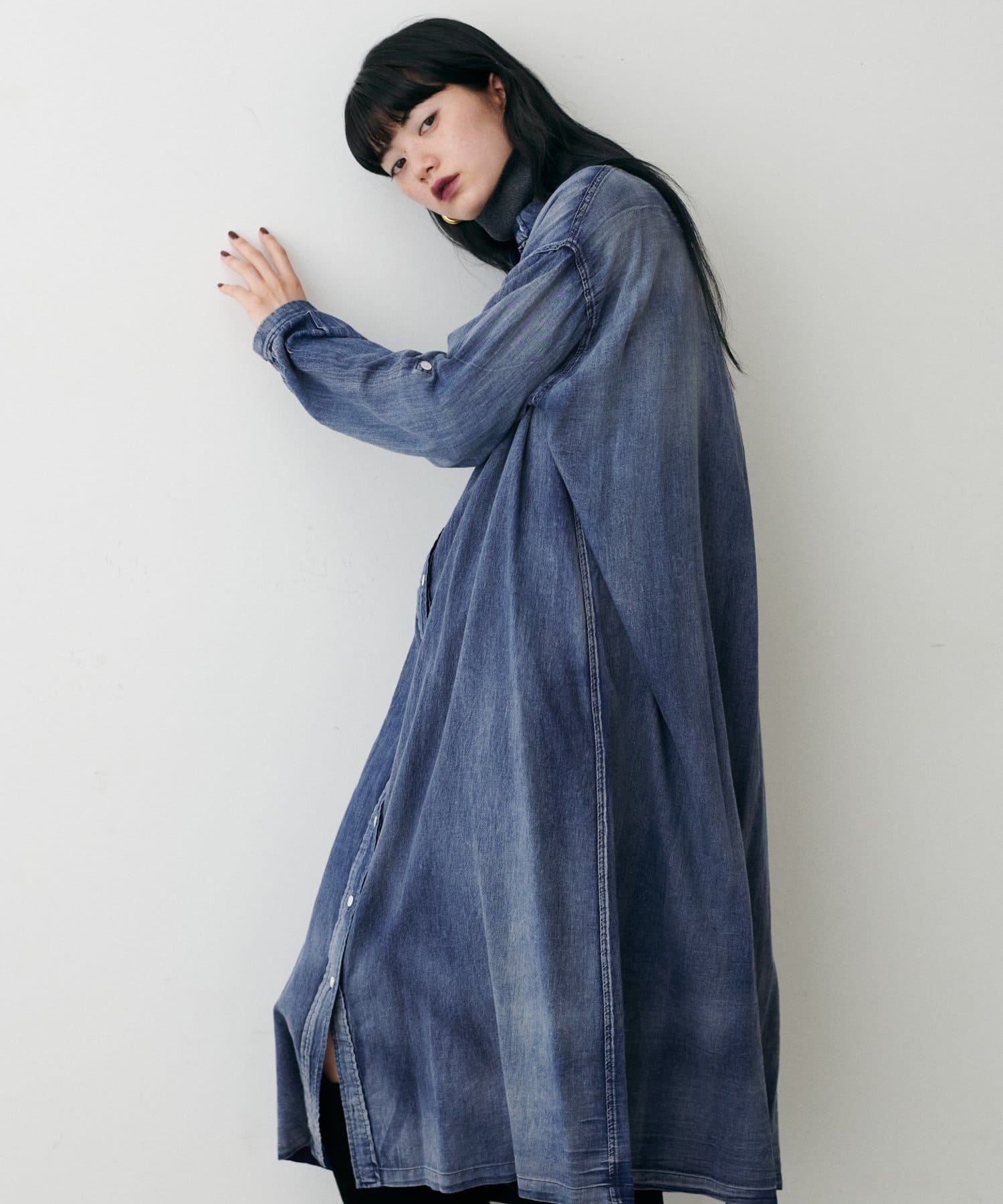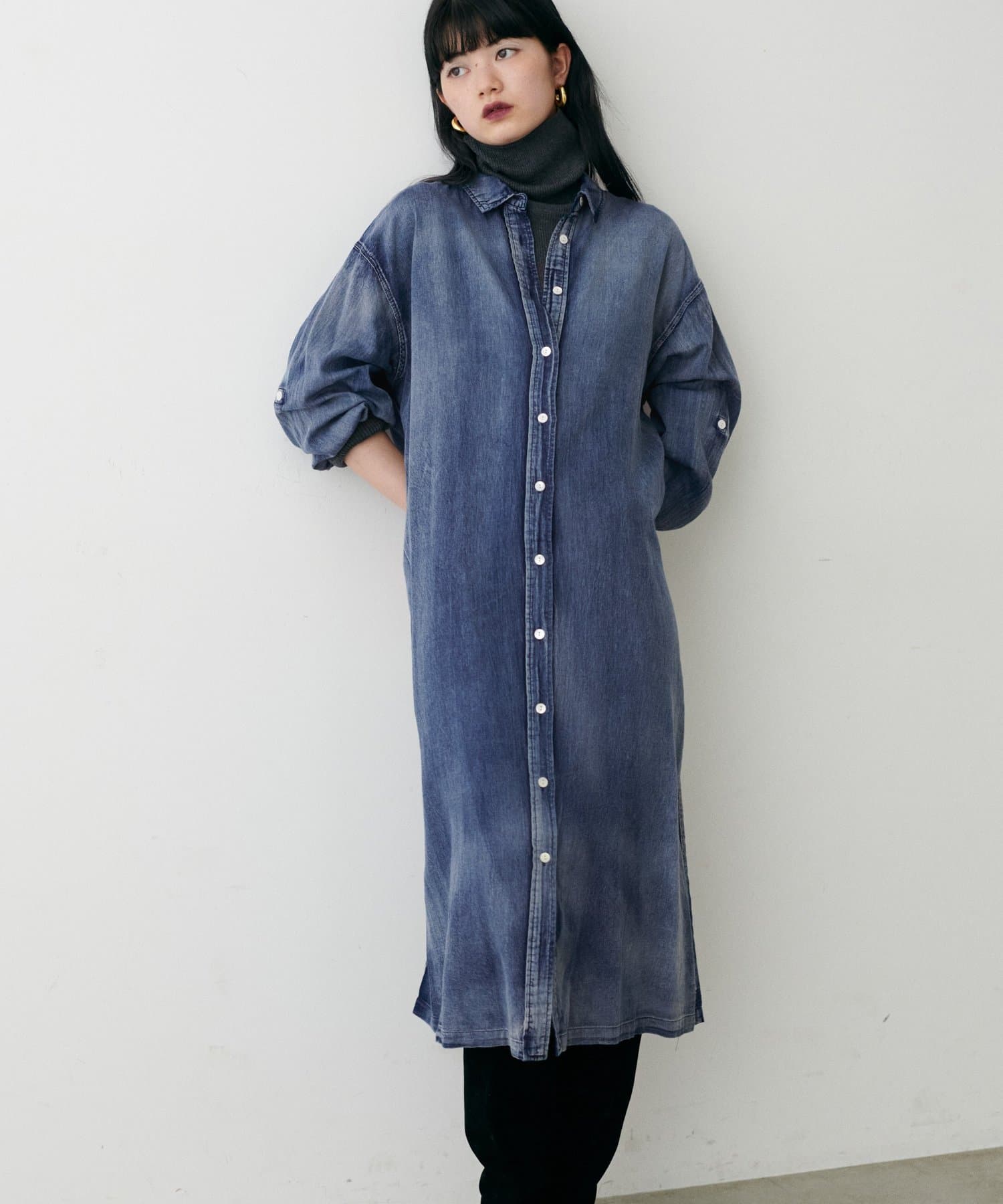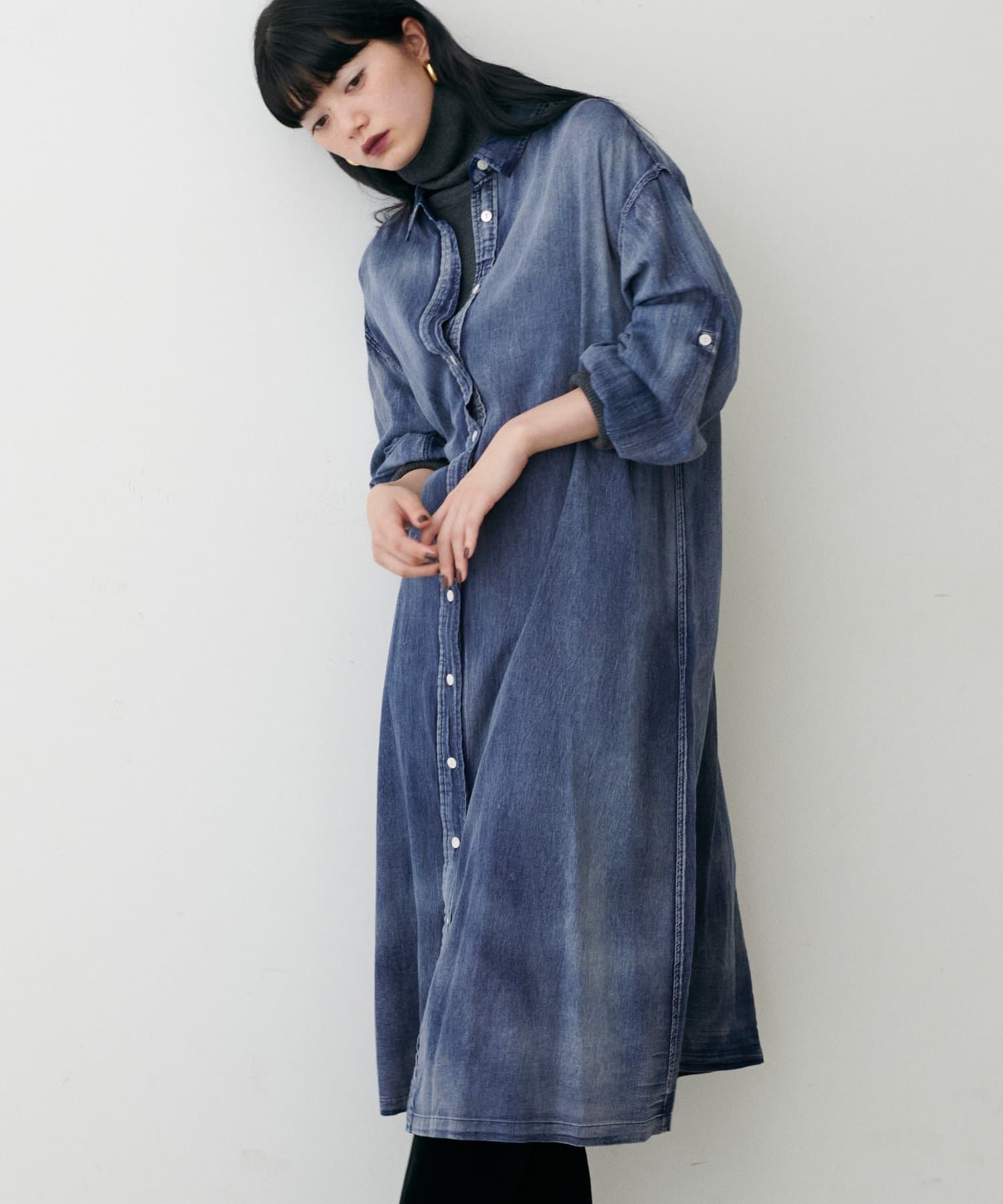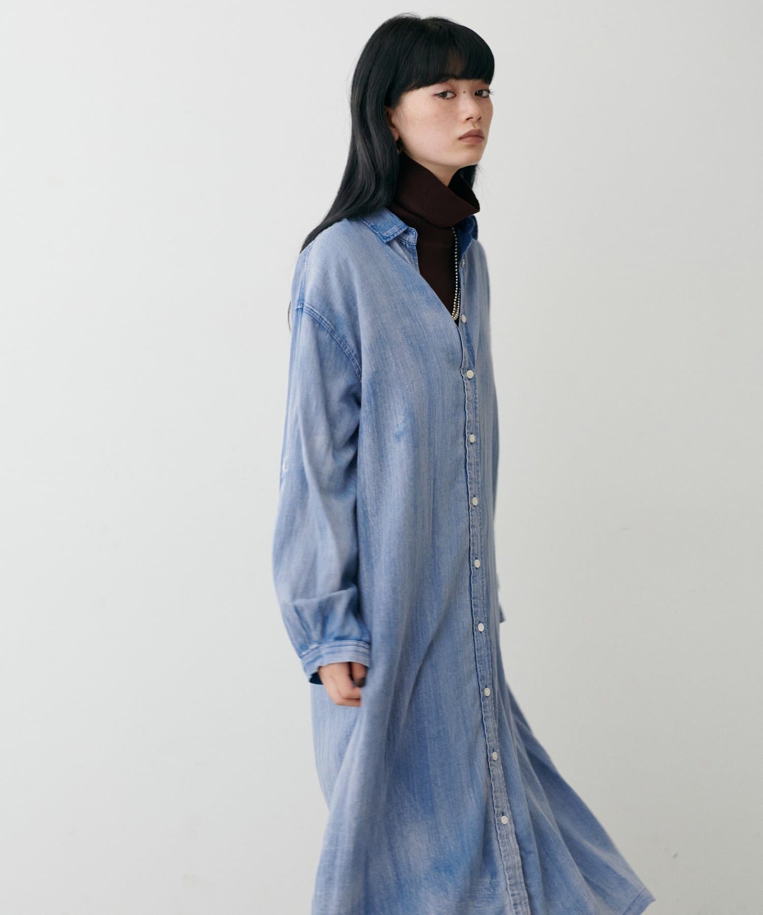 デニム風ロングシャツワンピース
