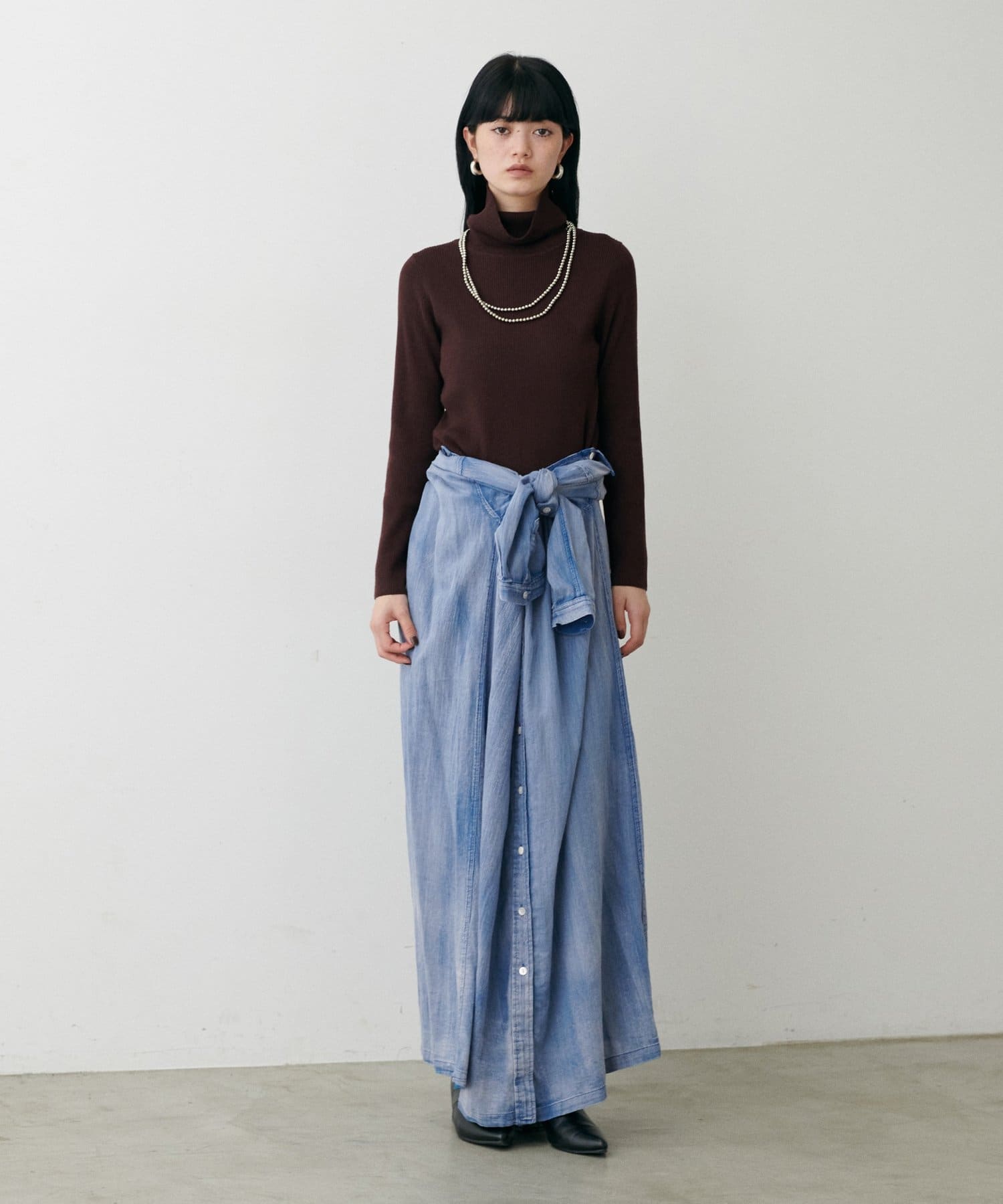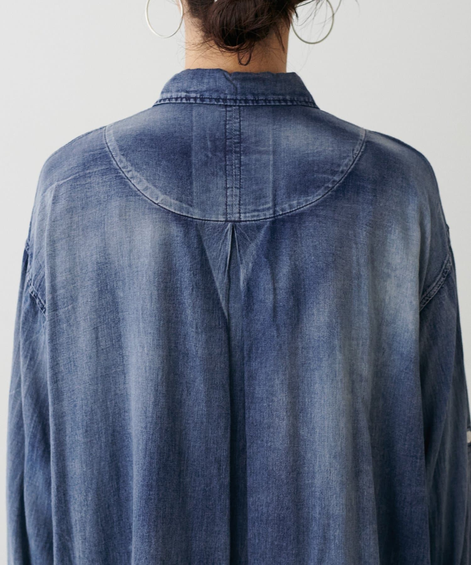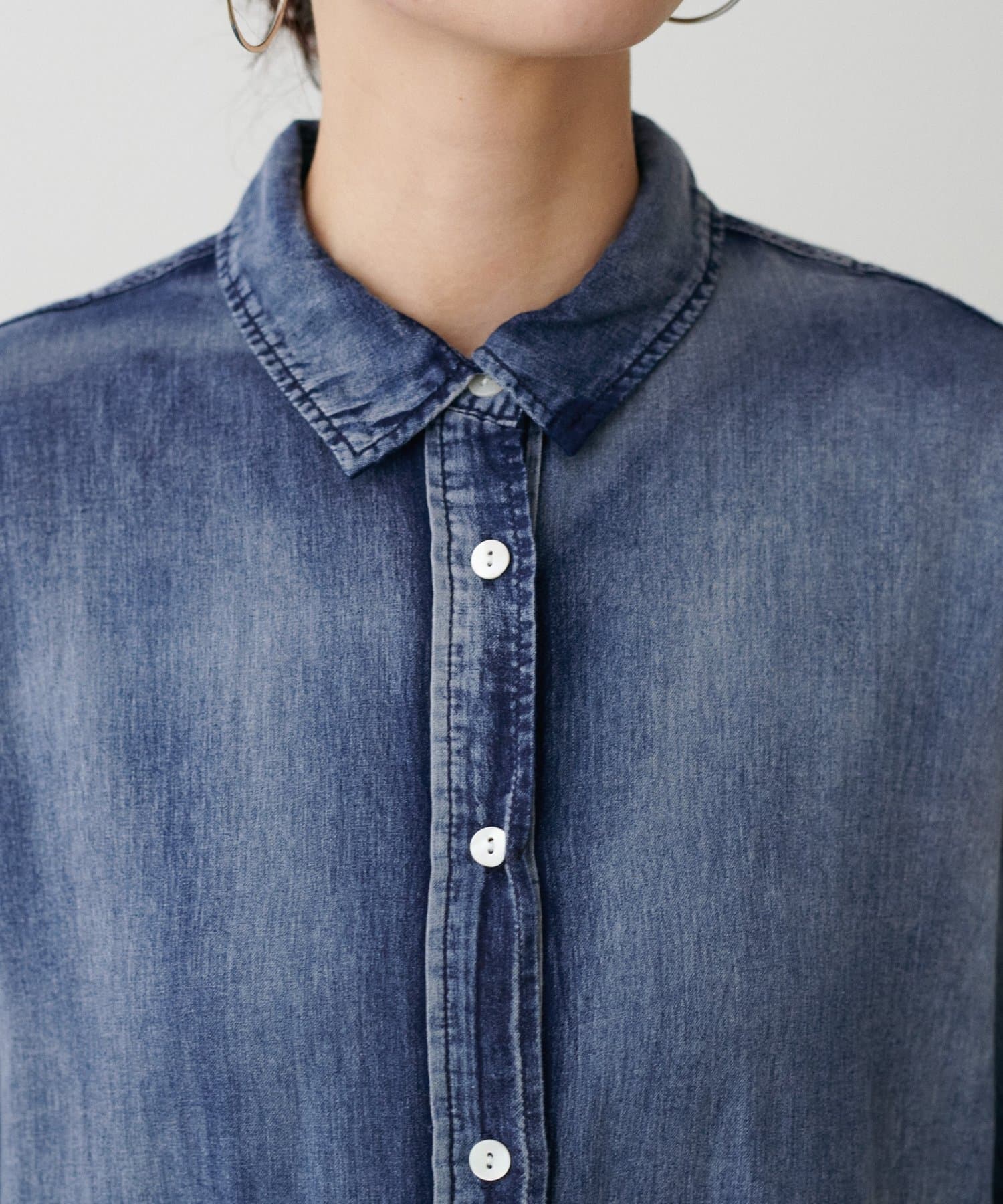 ロングシーズンお使いいただけるのがポイントのデニム風シャツ。