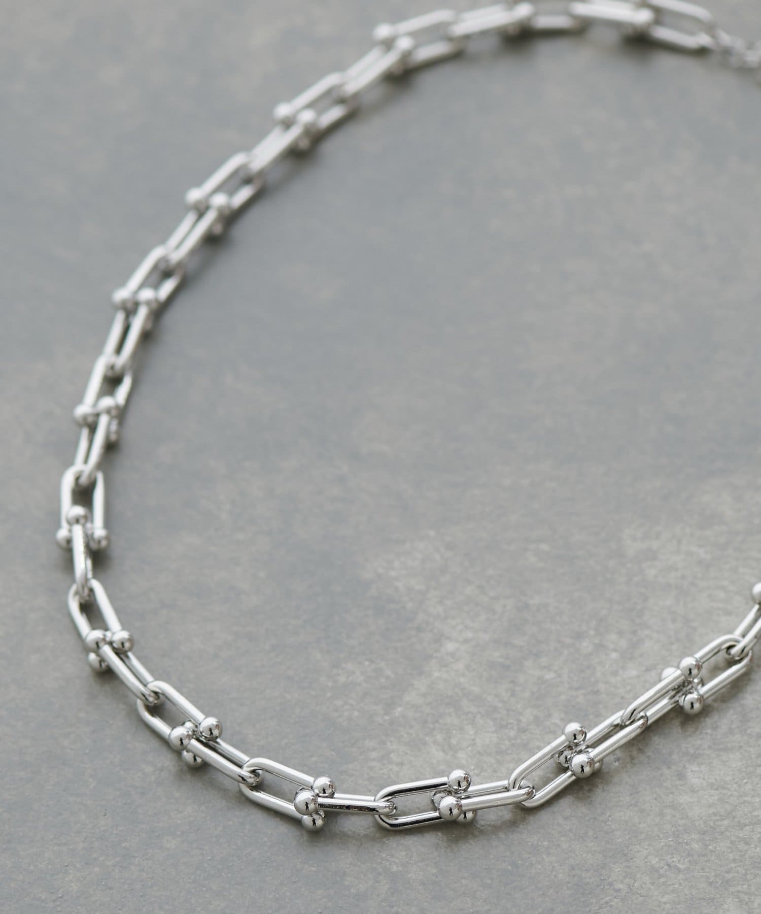 シンプルながら存在感のあるボリュームのあるネックレス。