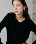 フェイクレザーのストラップは、コードを垂らしたり結んだりと使い方も色々。