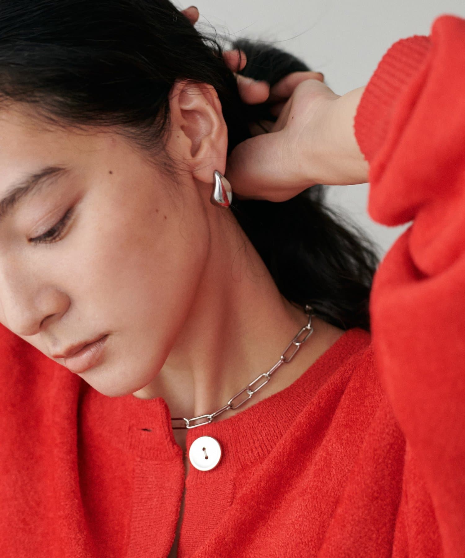 ニュアンスのドロップ型が特徴的なピアス。