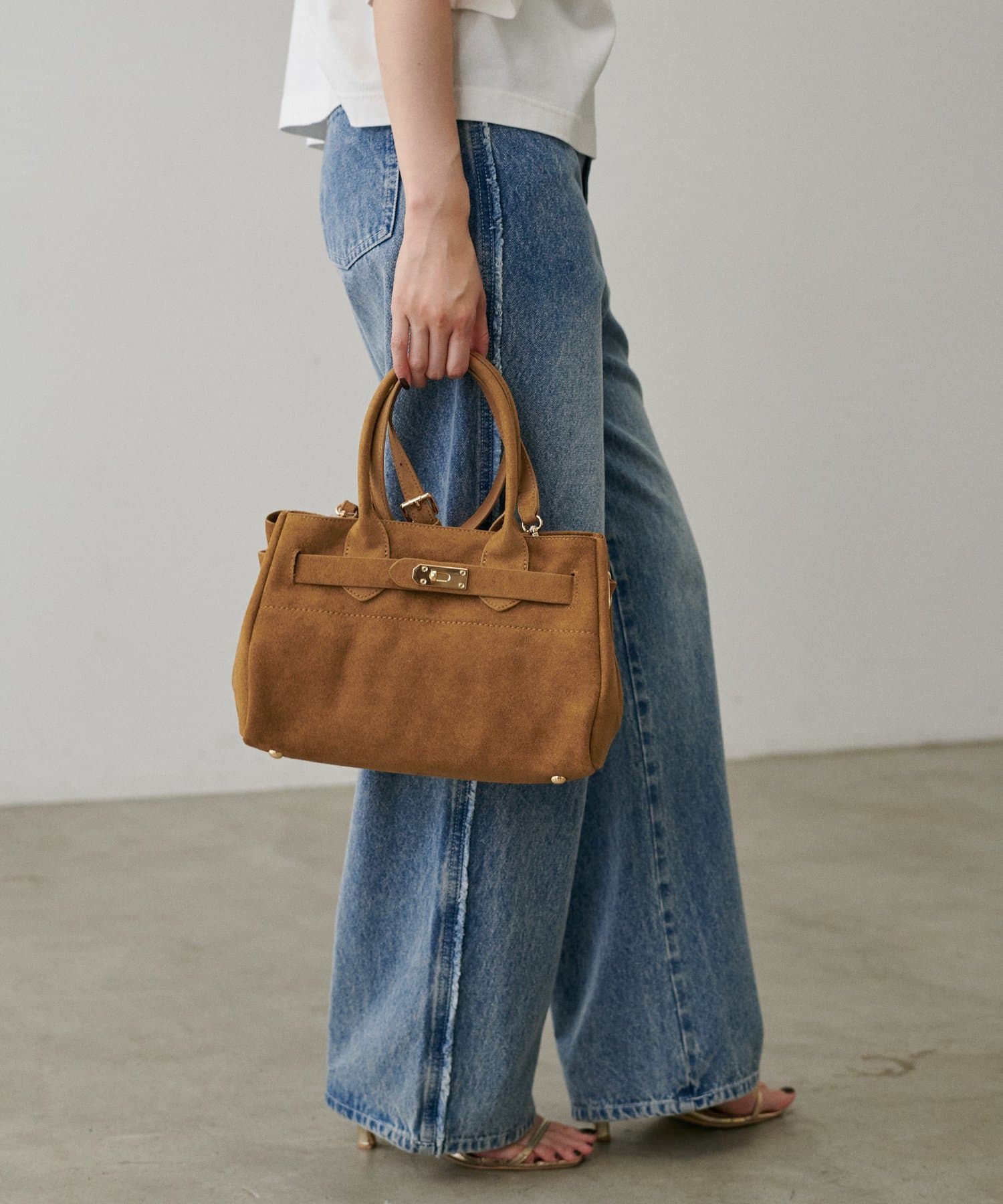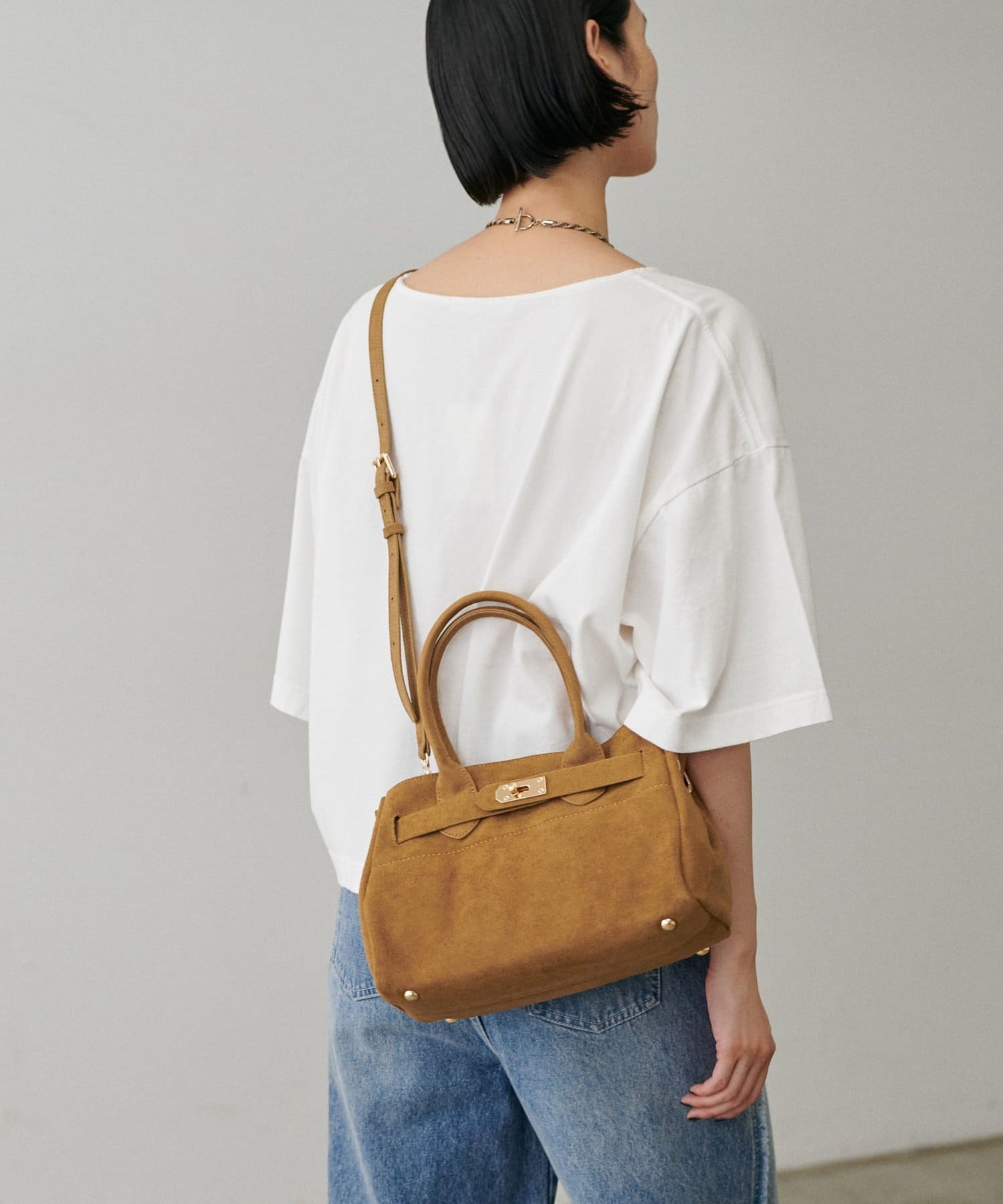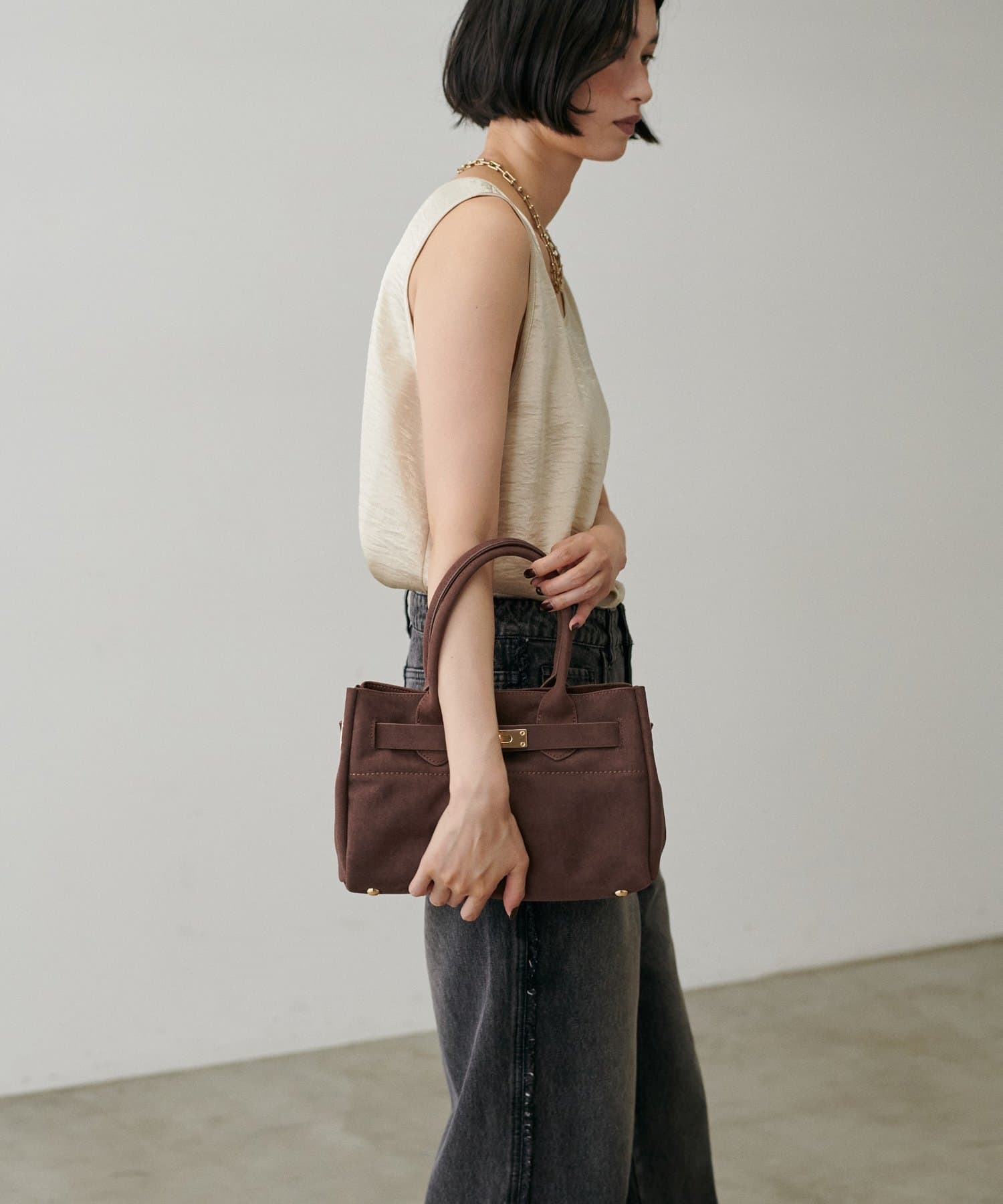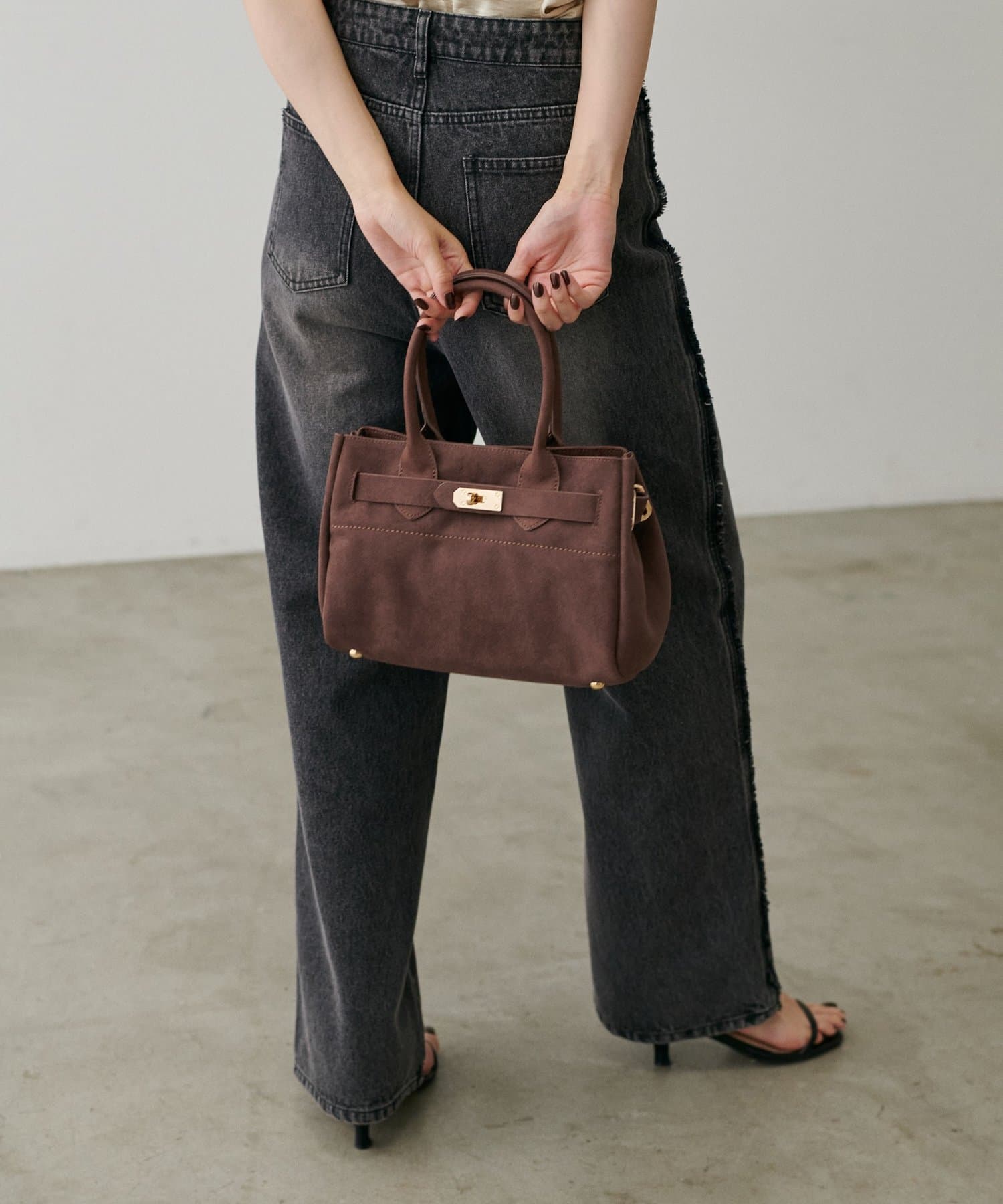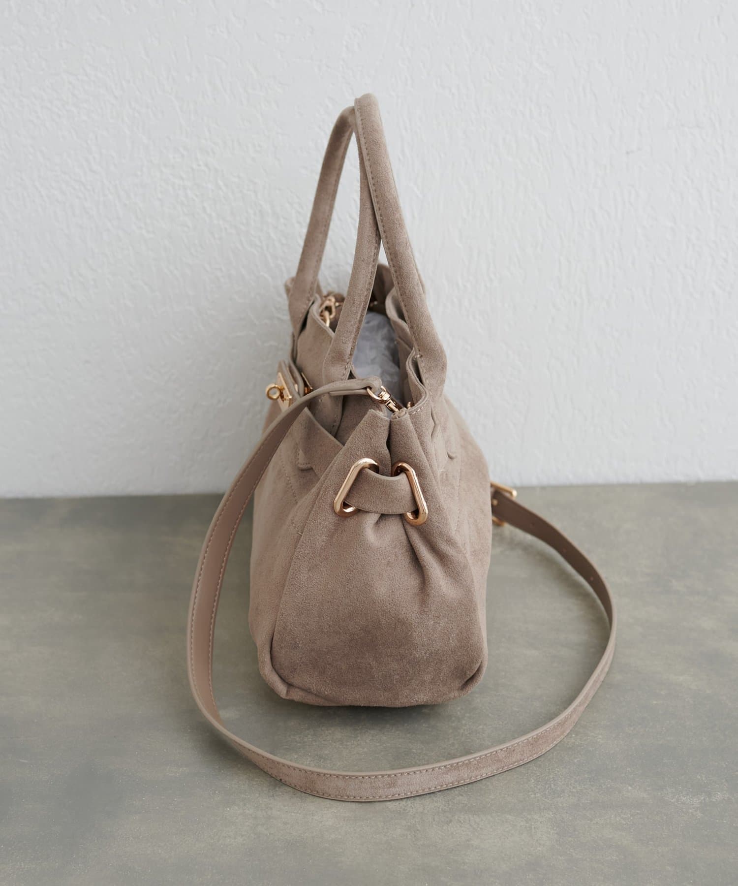 やわらかなフェイクスエード素材を使用した、上品なスクエア型バッグ。