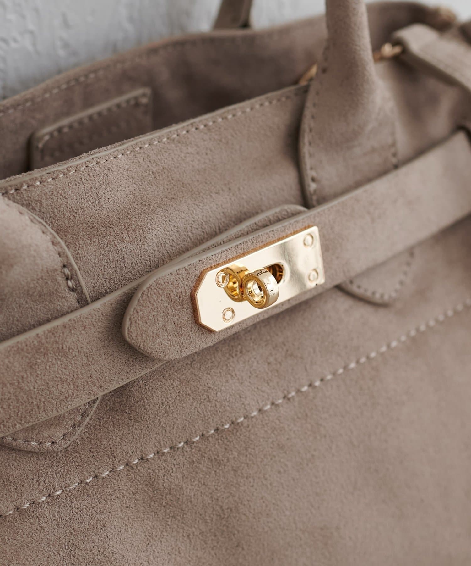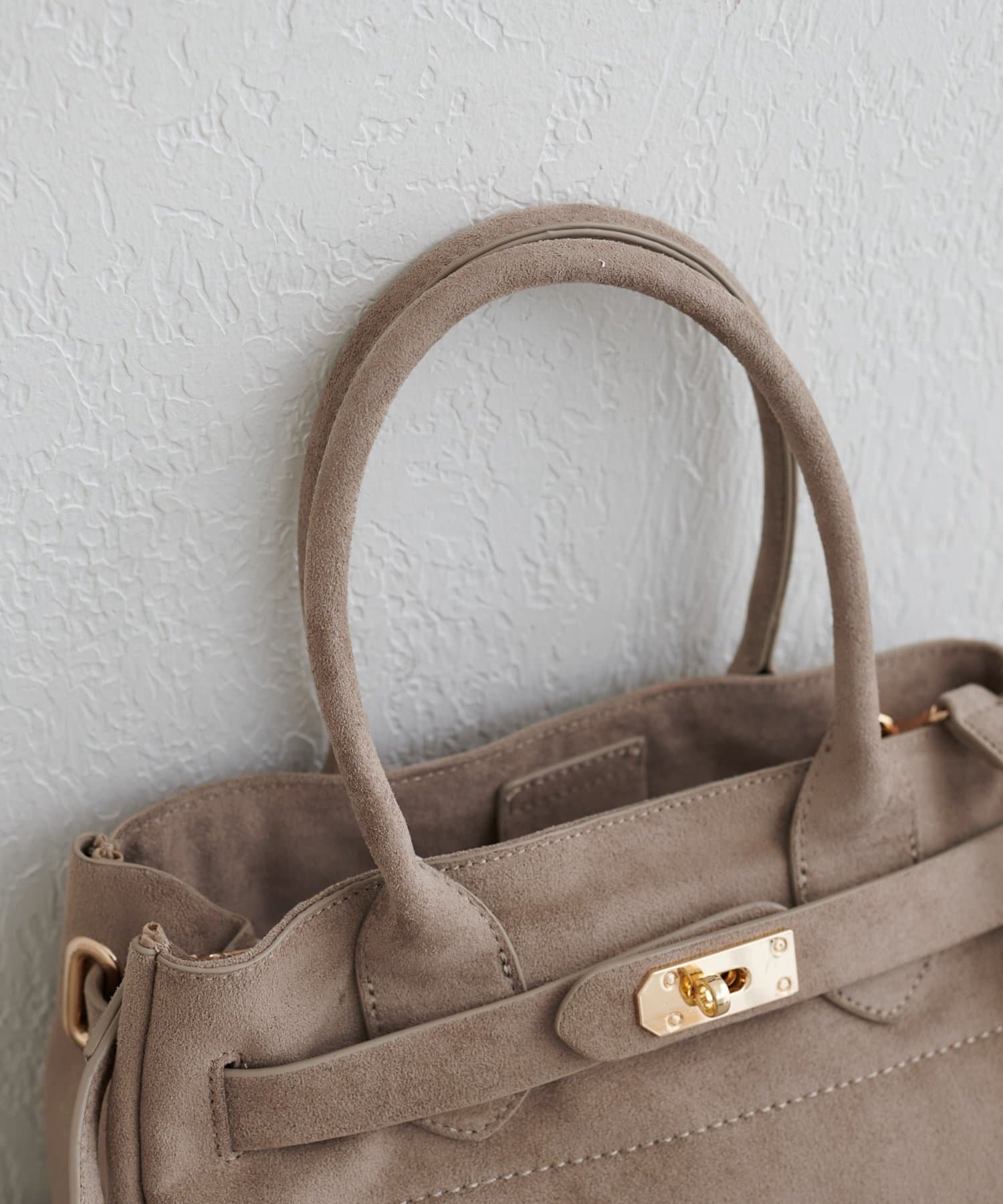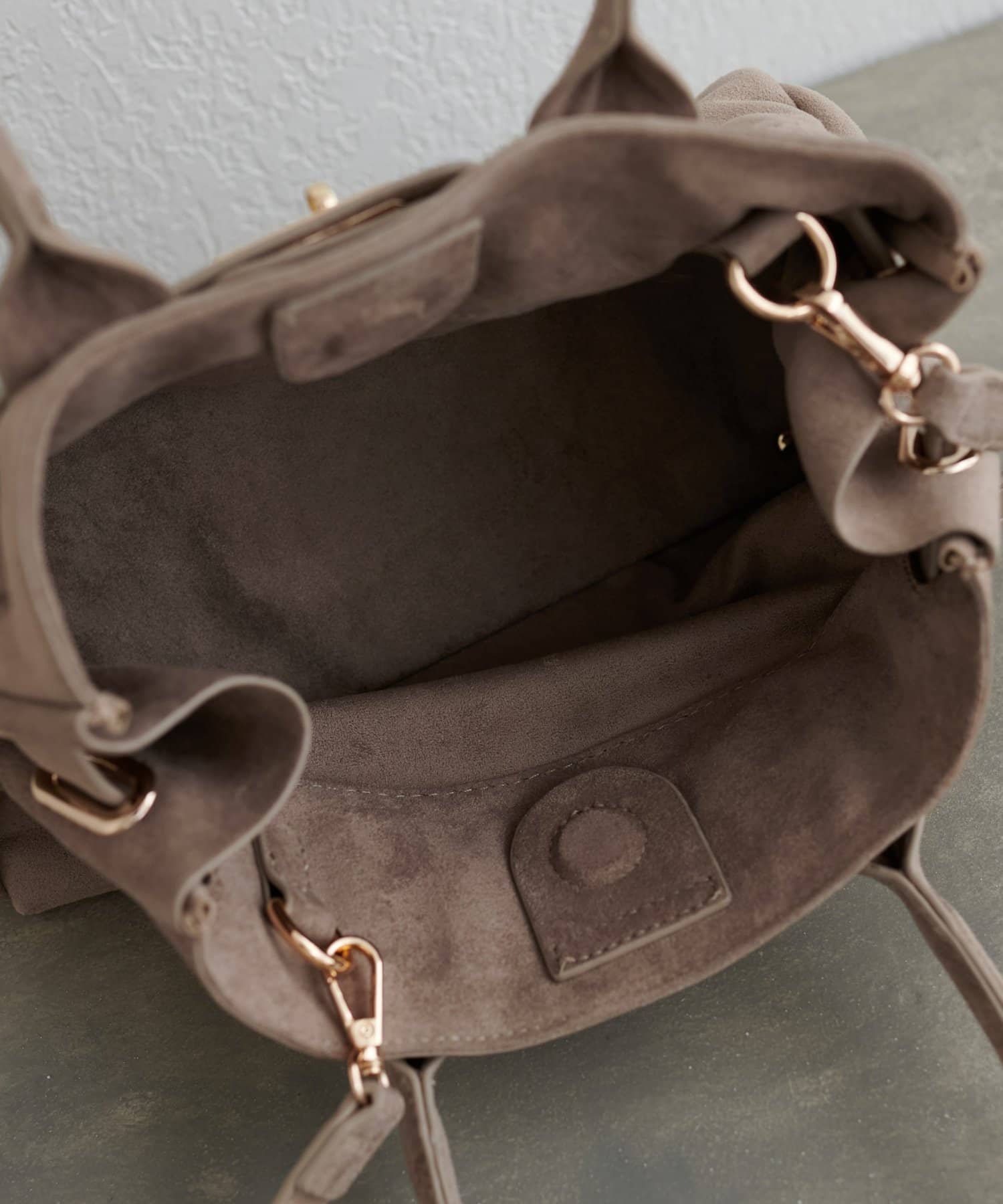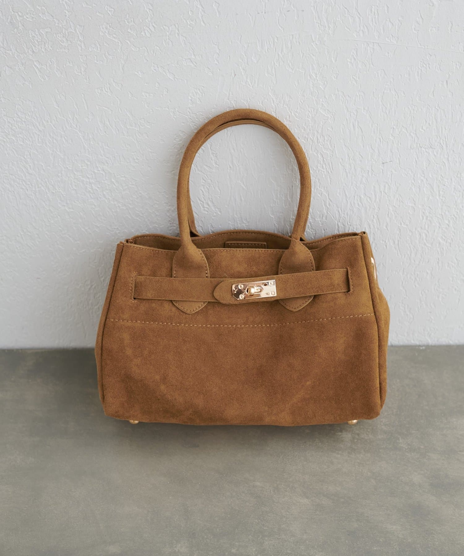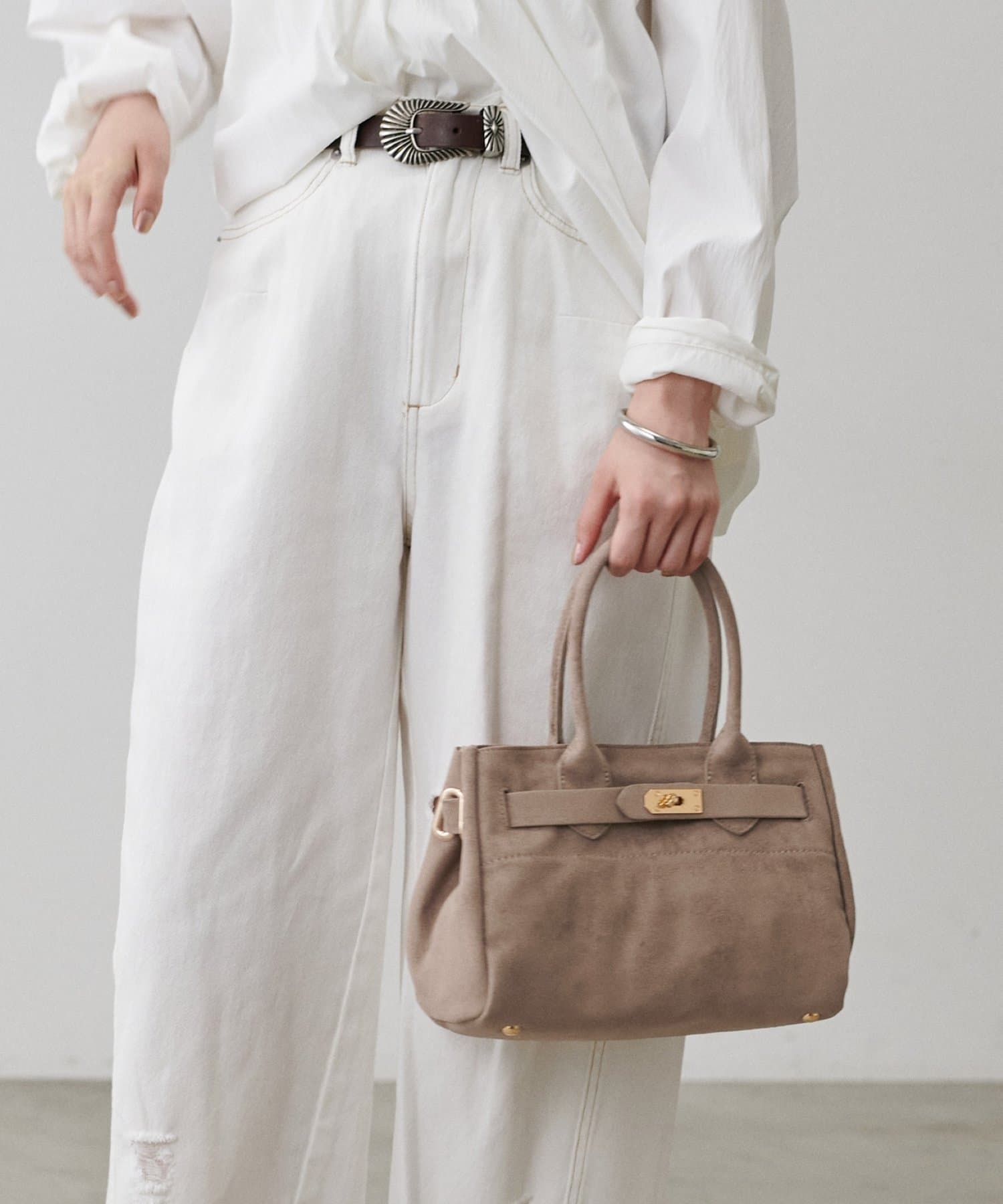 やわらかなフェイクスエード素材を使用した、上品なスクエア型バッグ。