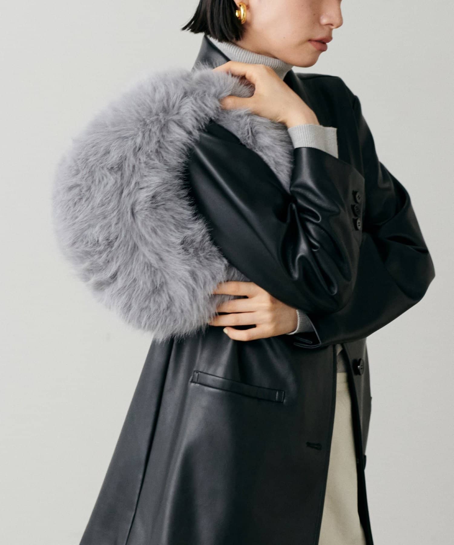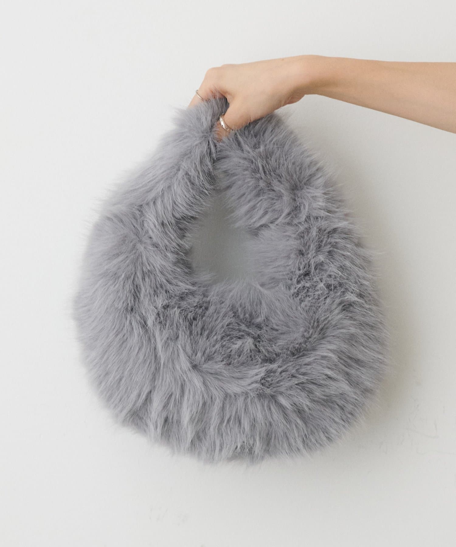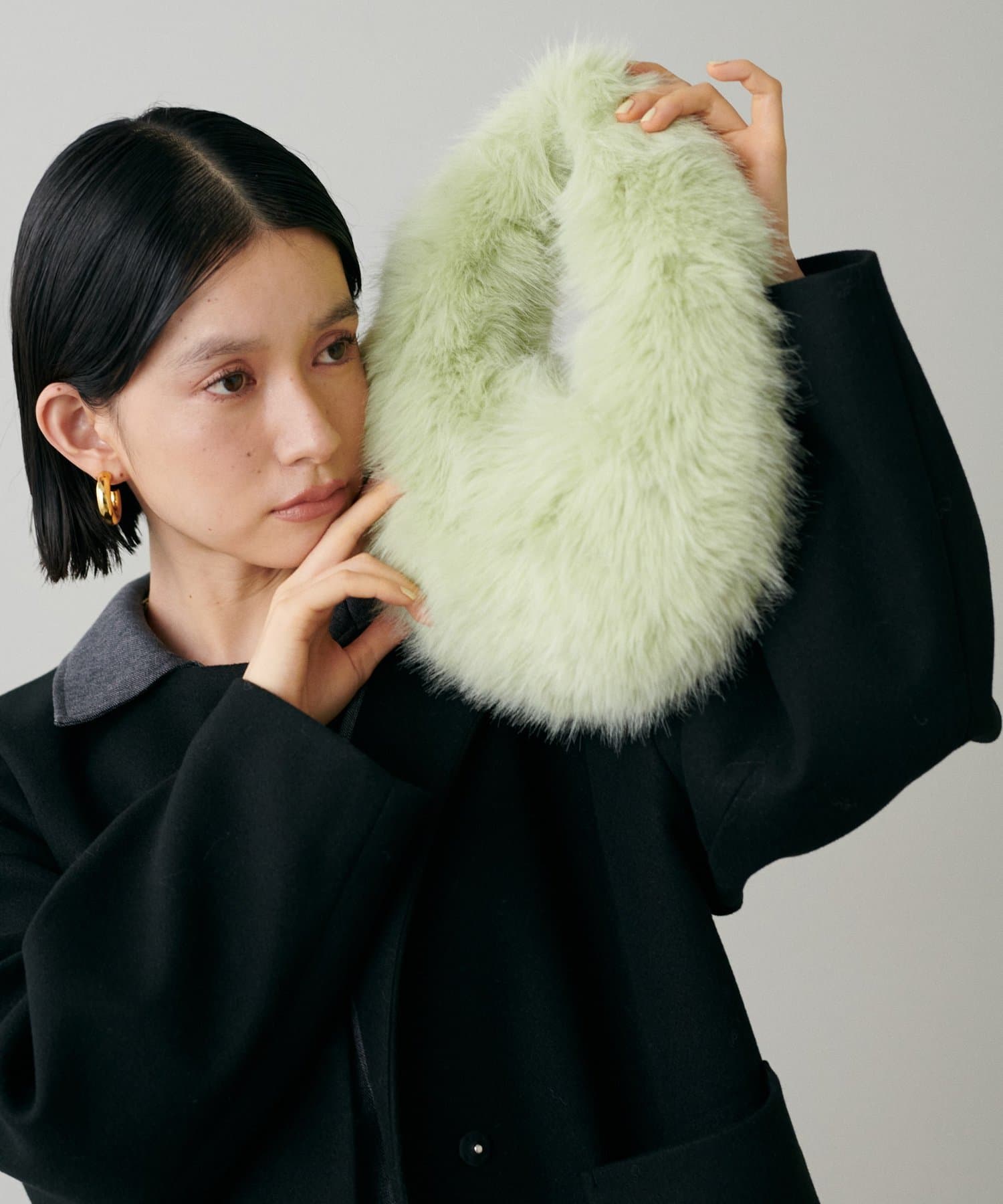 やわらかなフェイクファーを全面に使用した、シーズンライクなオーバル型バッグ。