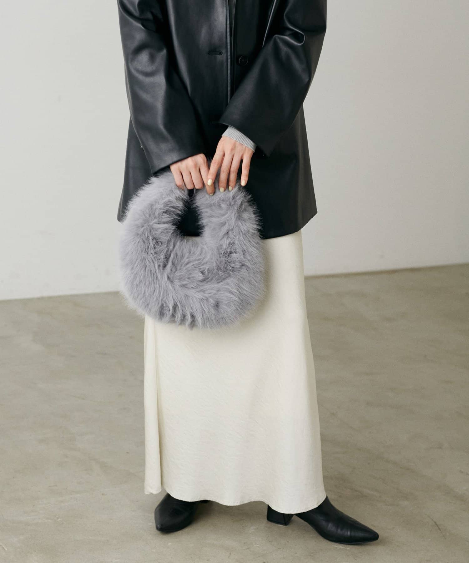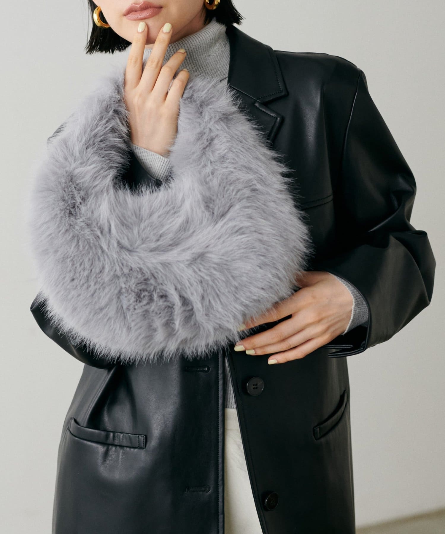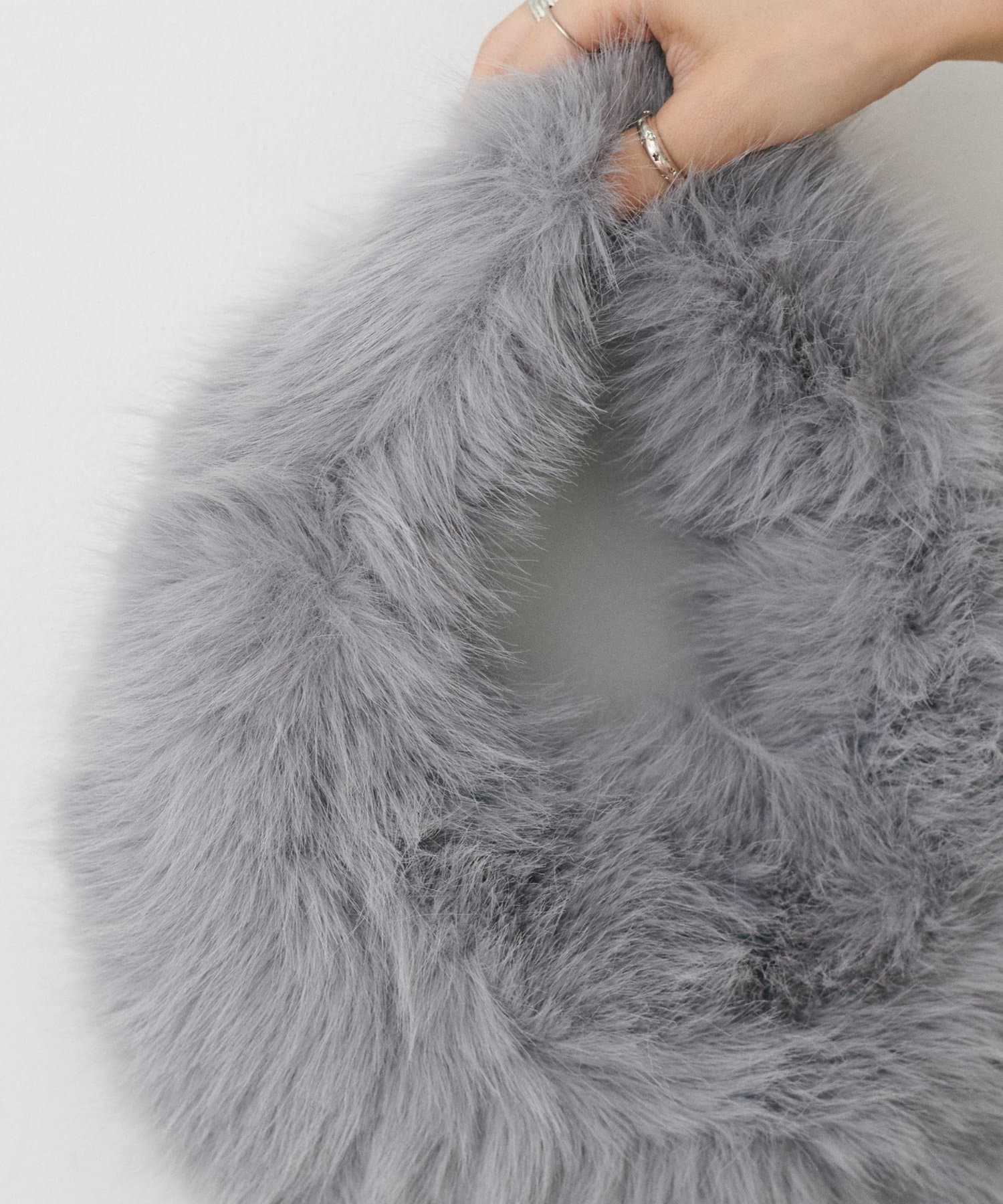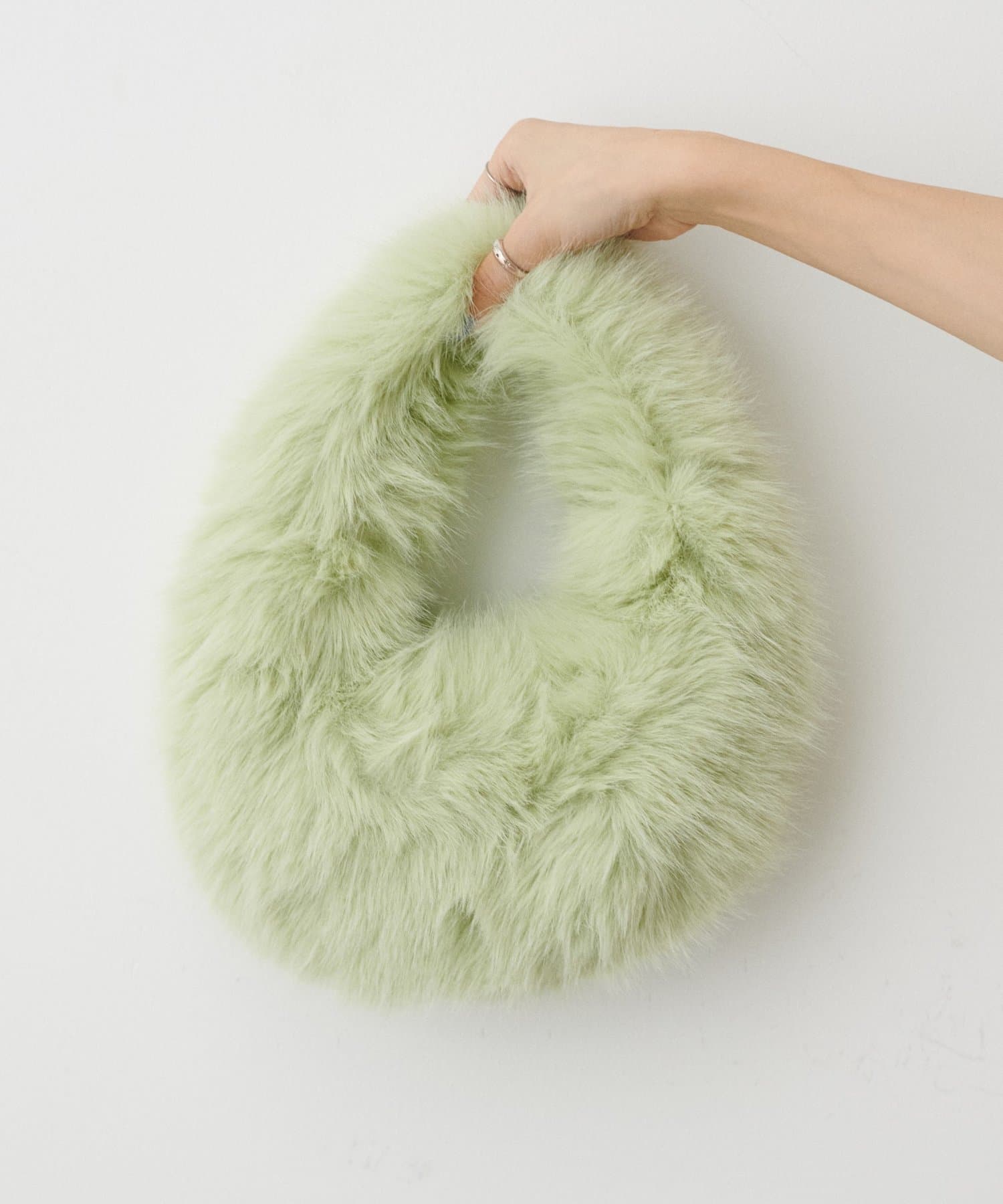 やわらかなフェイクファーを全面に使用した、シーズンライクなオーバル型バッグ。