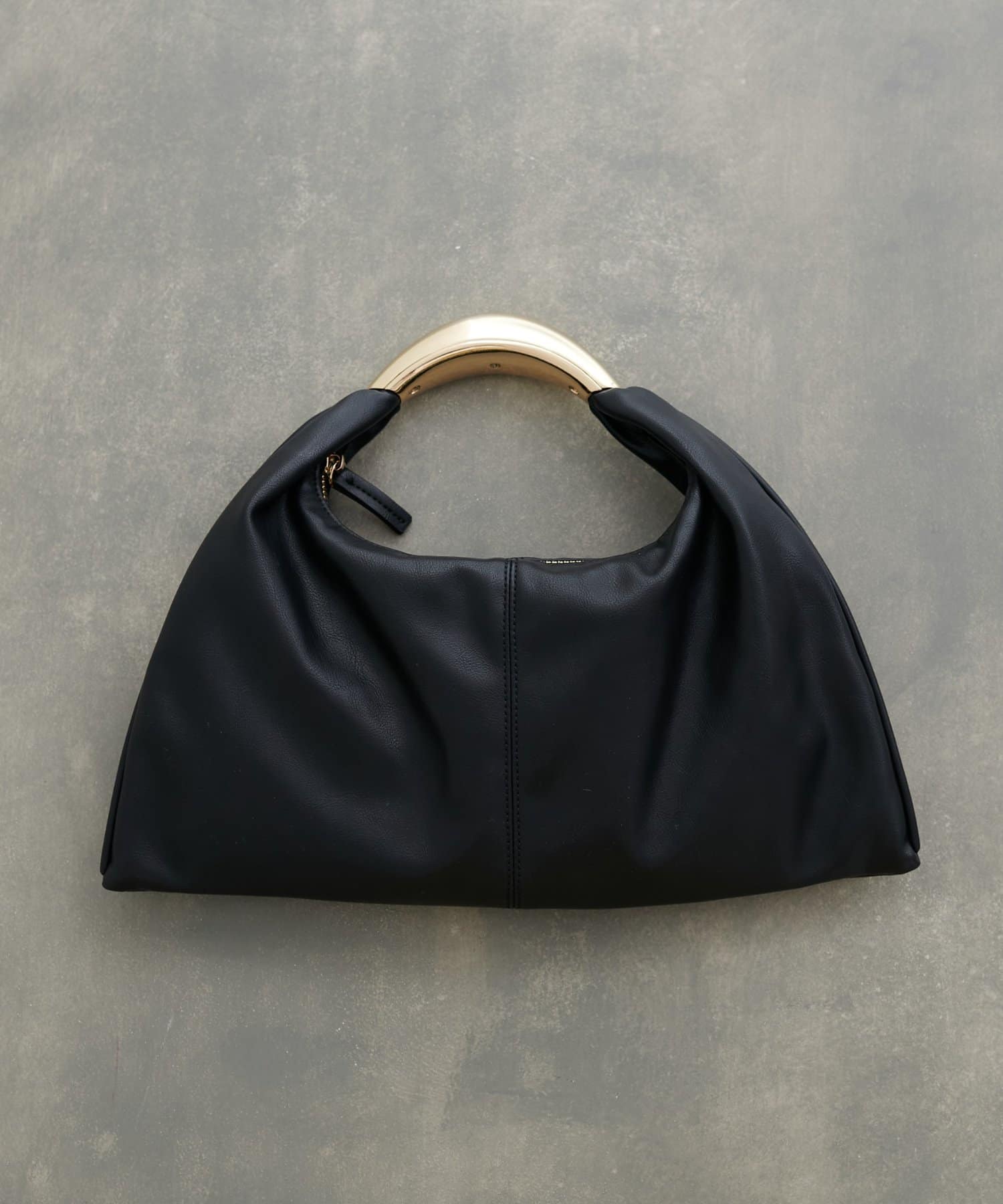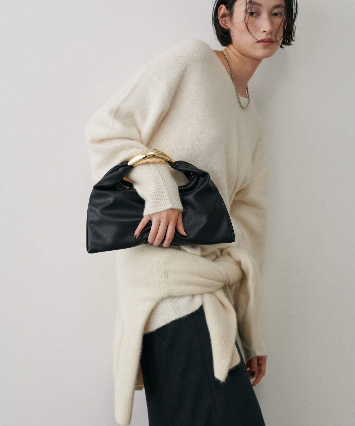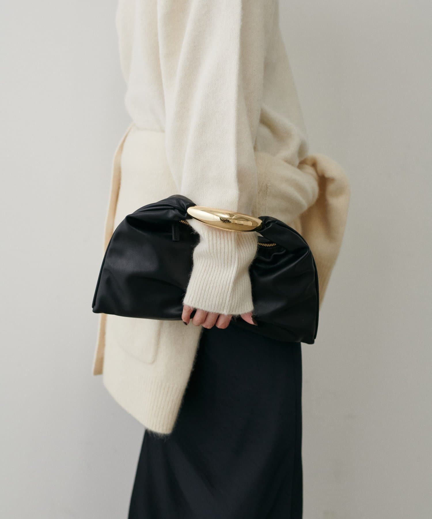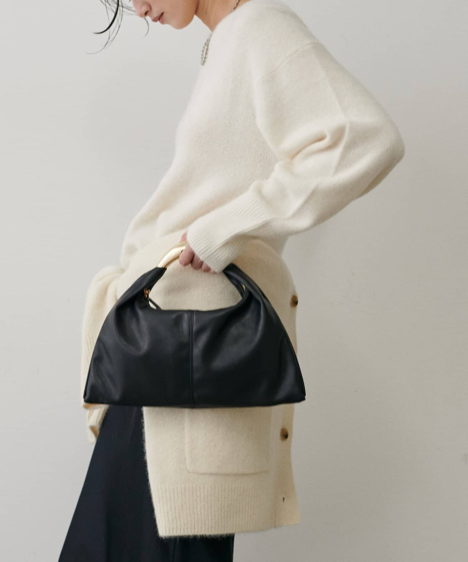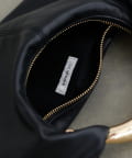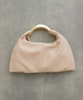彫刻のように立体的なメタルハンドルが目を惹くデザインバッグ。