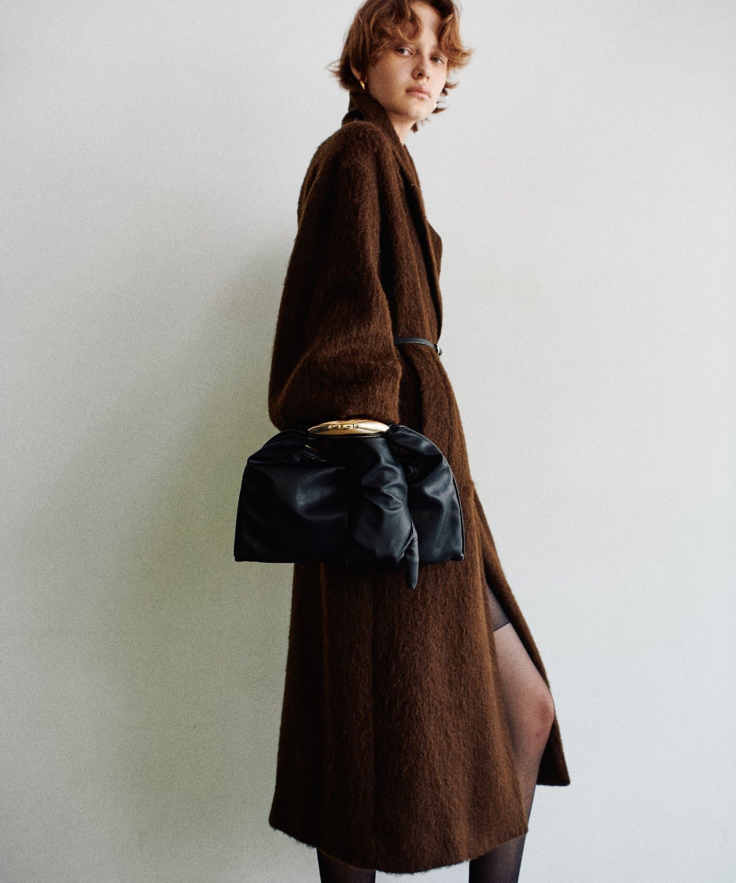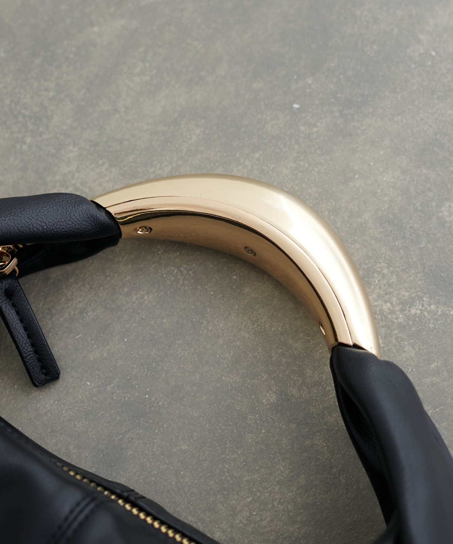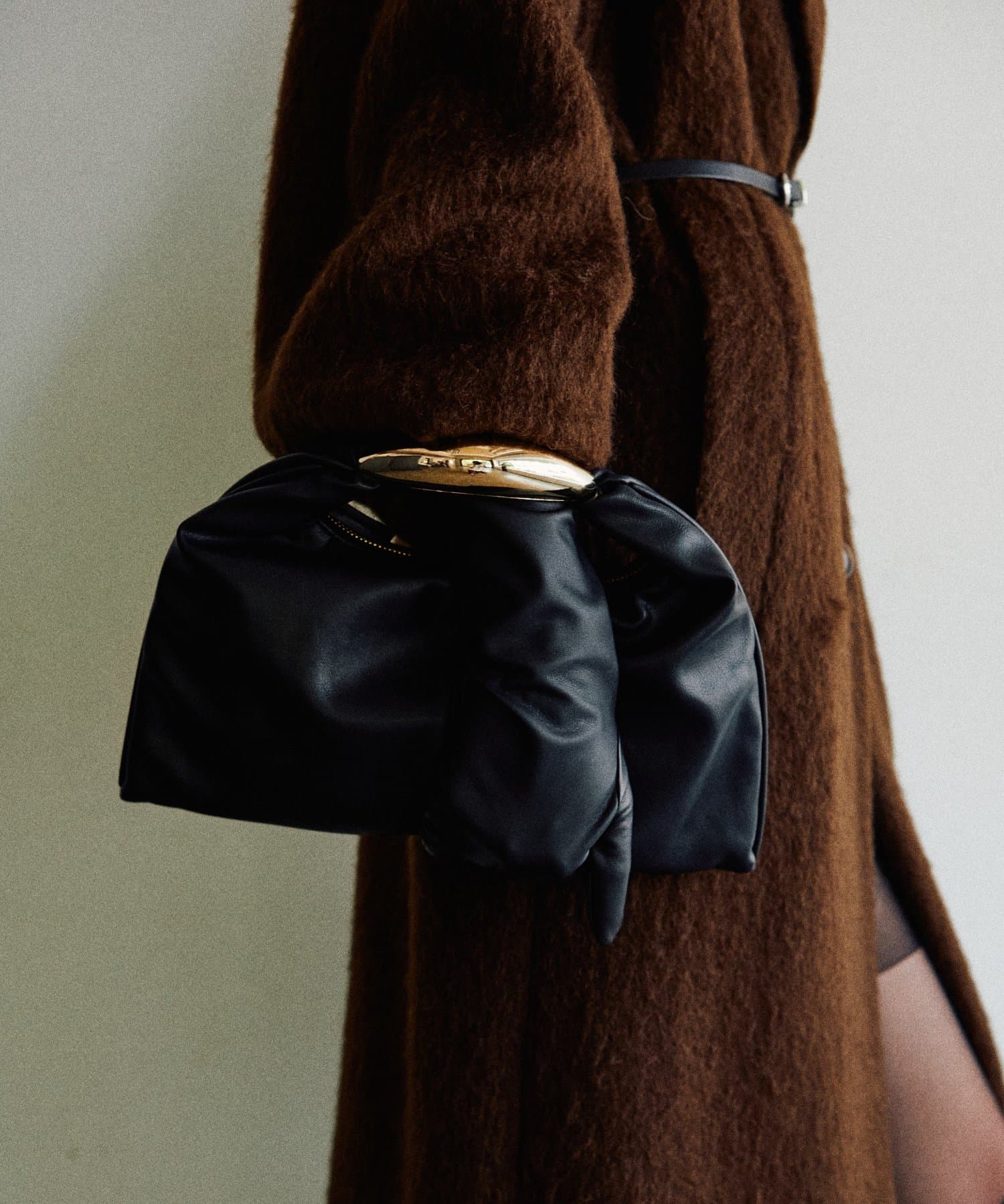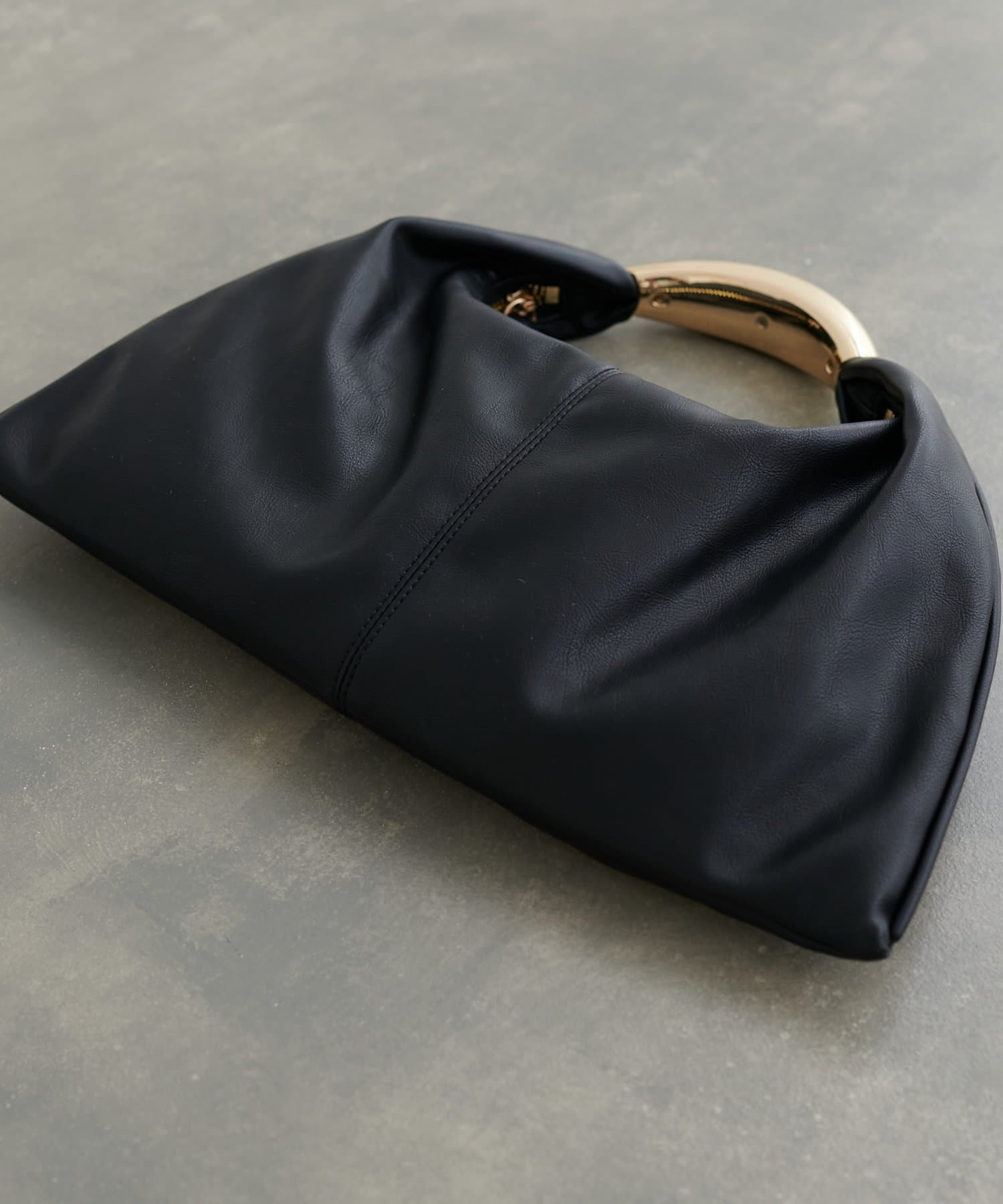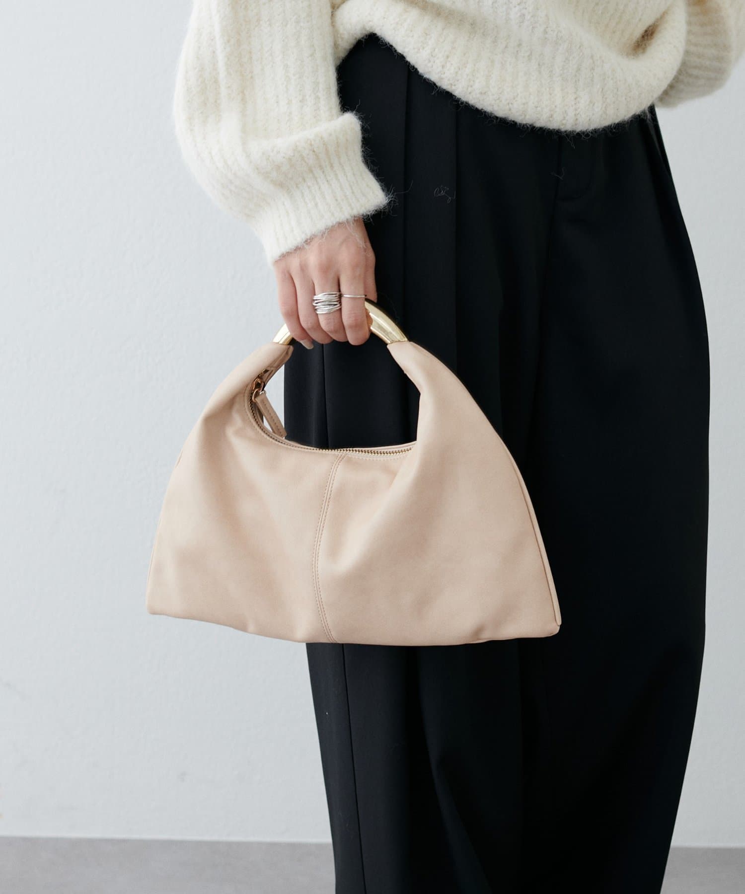 彫刻のように立体的なメタルハンドルが目を惹くデザインバッグ。