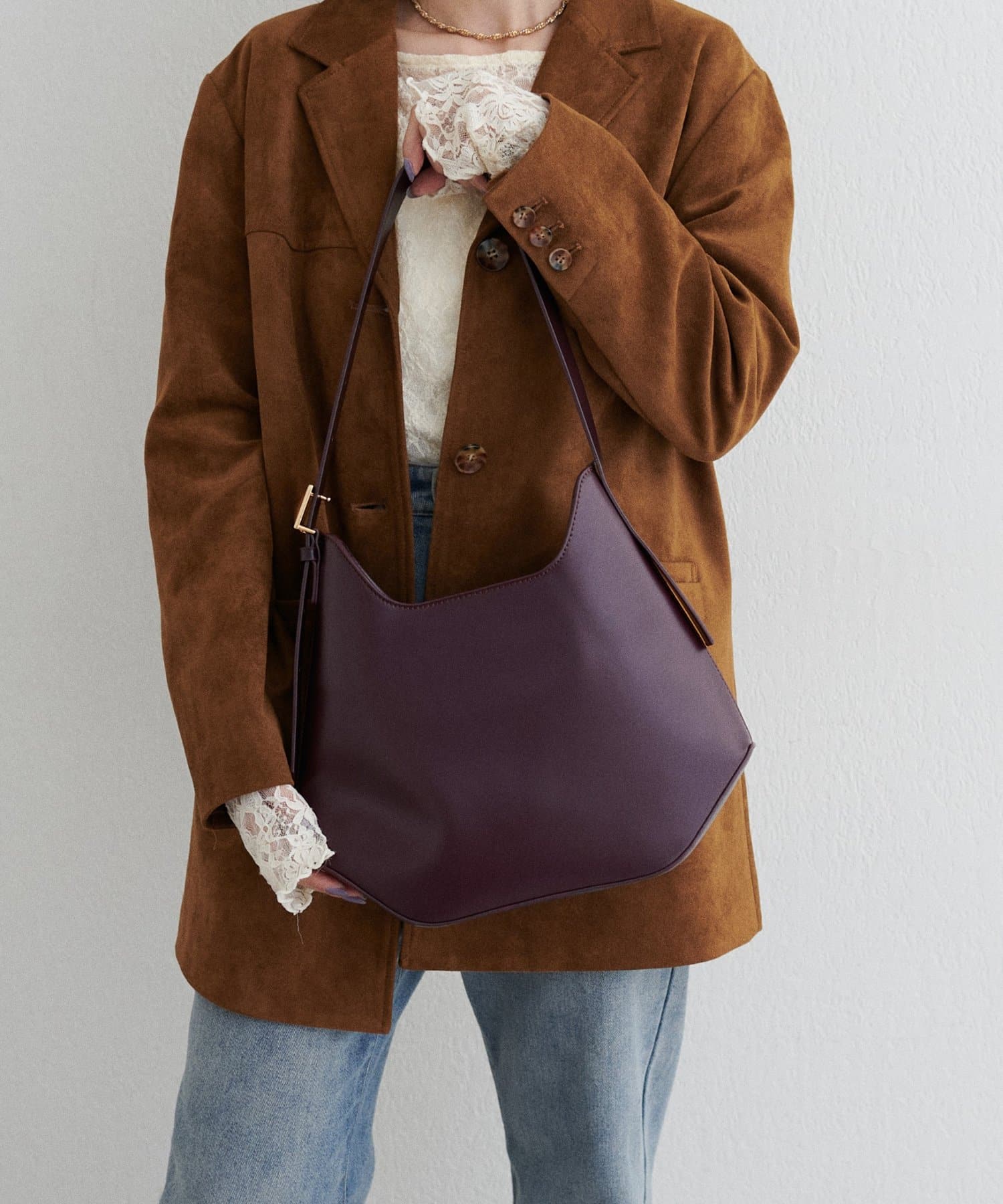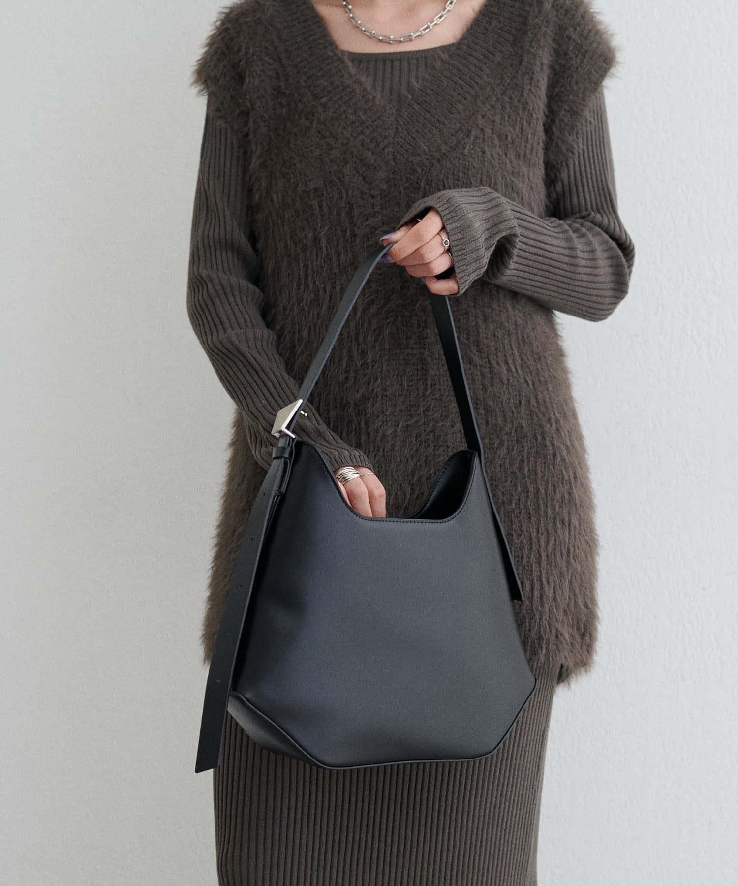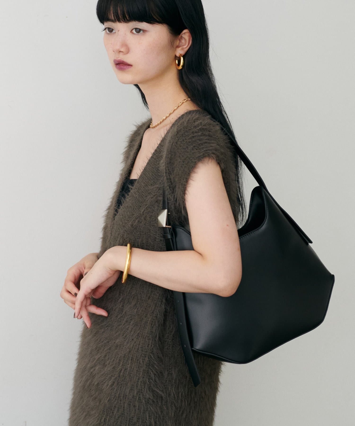 肩掛けも手持ちもできるバランスの良いハンドル丈で、シーズンを問わず幅広いコーディネートにマッチします。