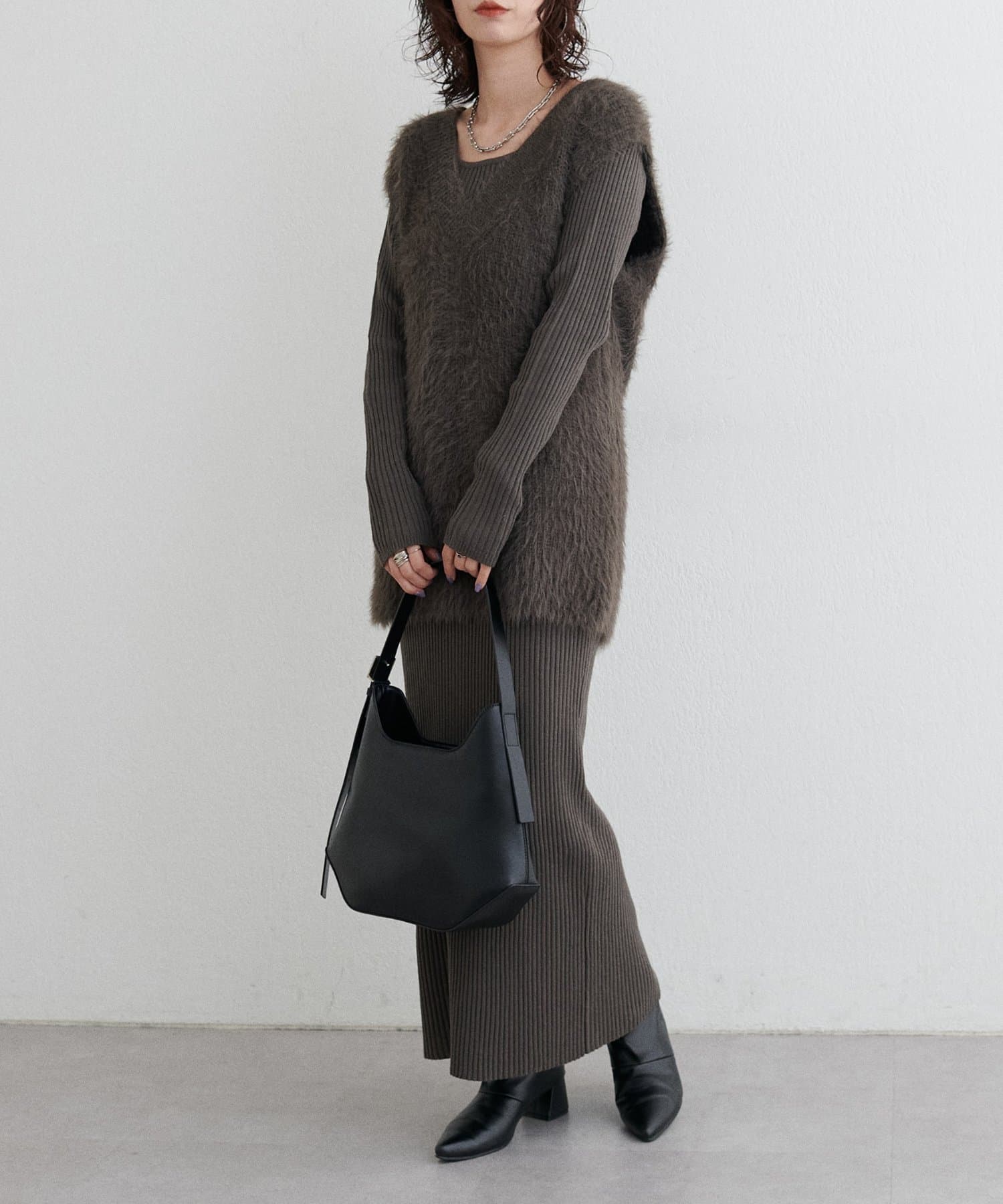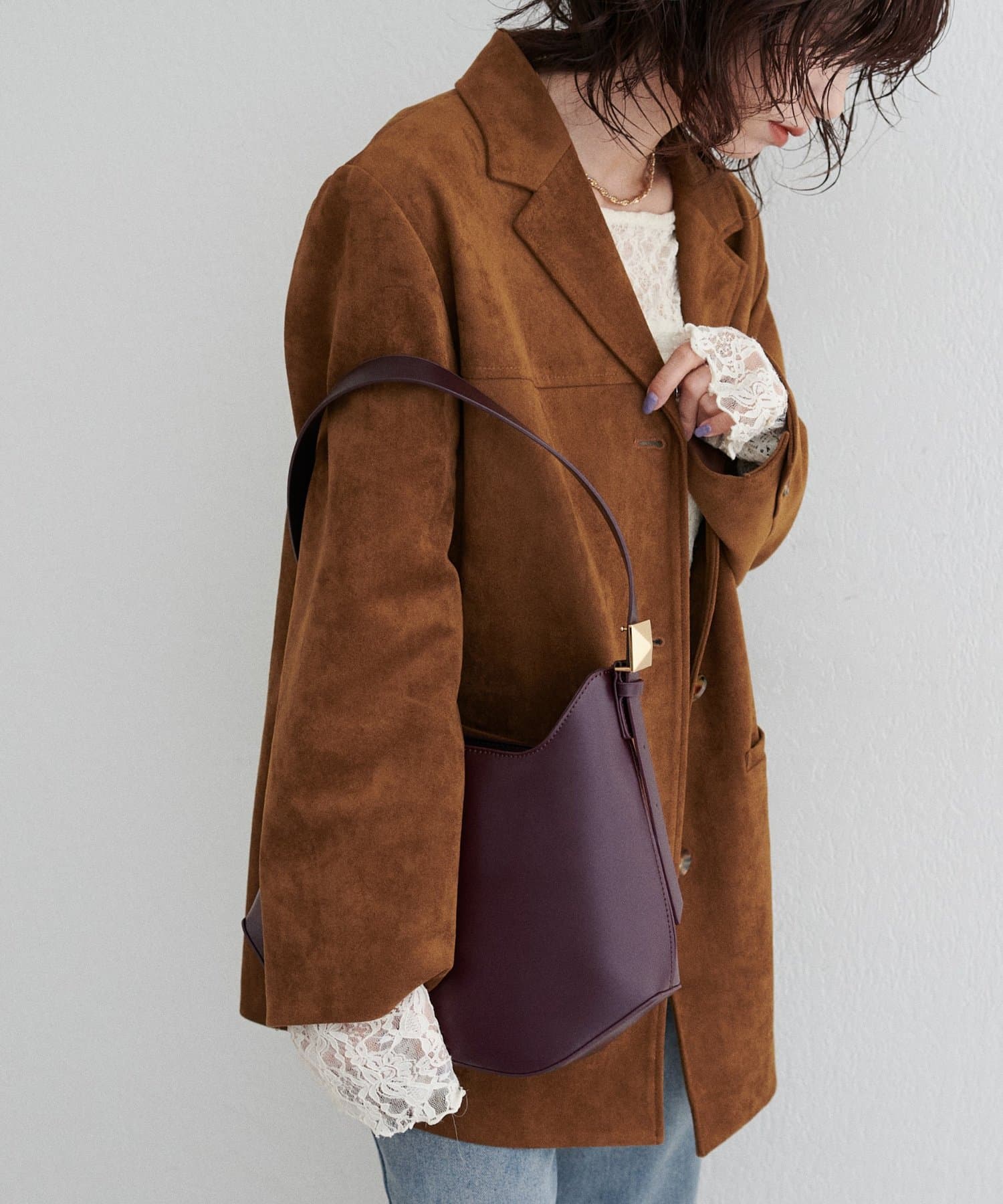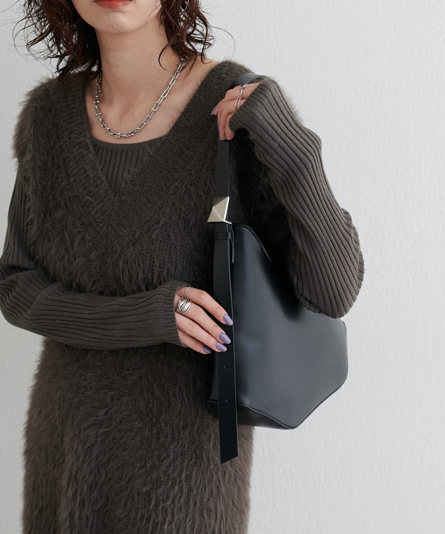 肩掛けも手持ちもできるバランスの良いハンドル丈で、シーズンを問わず幅広いコーディネートにマッチします。