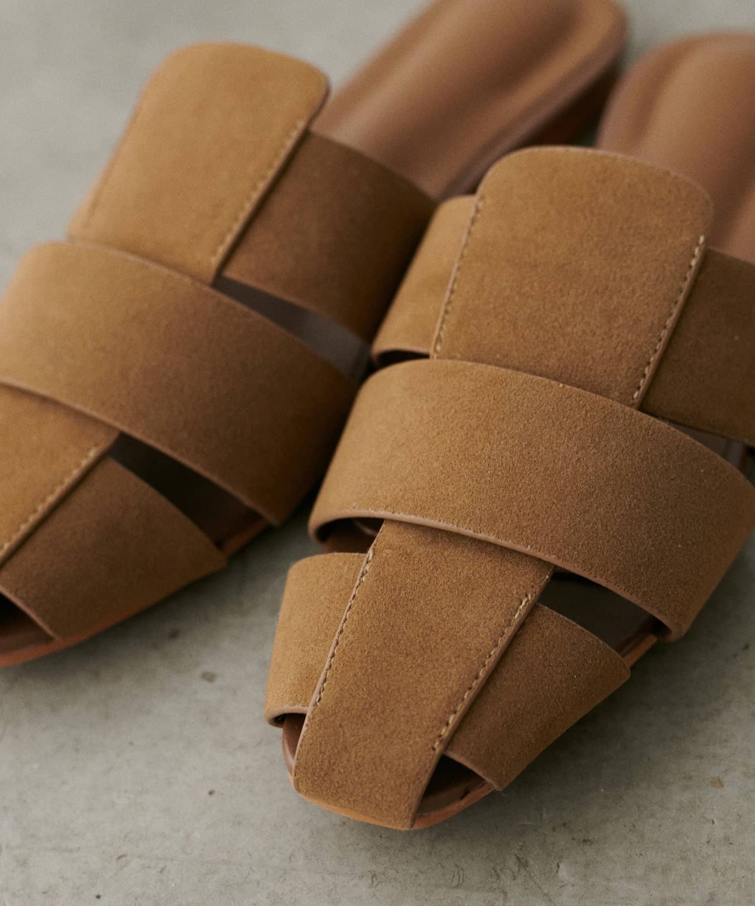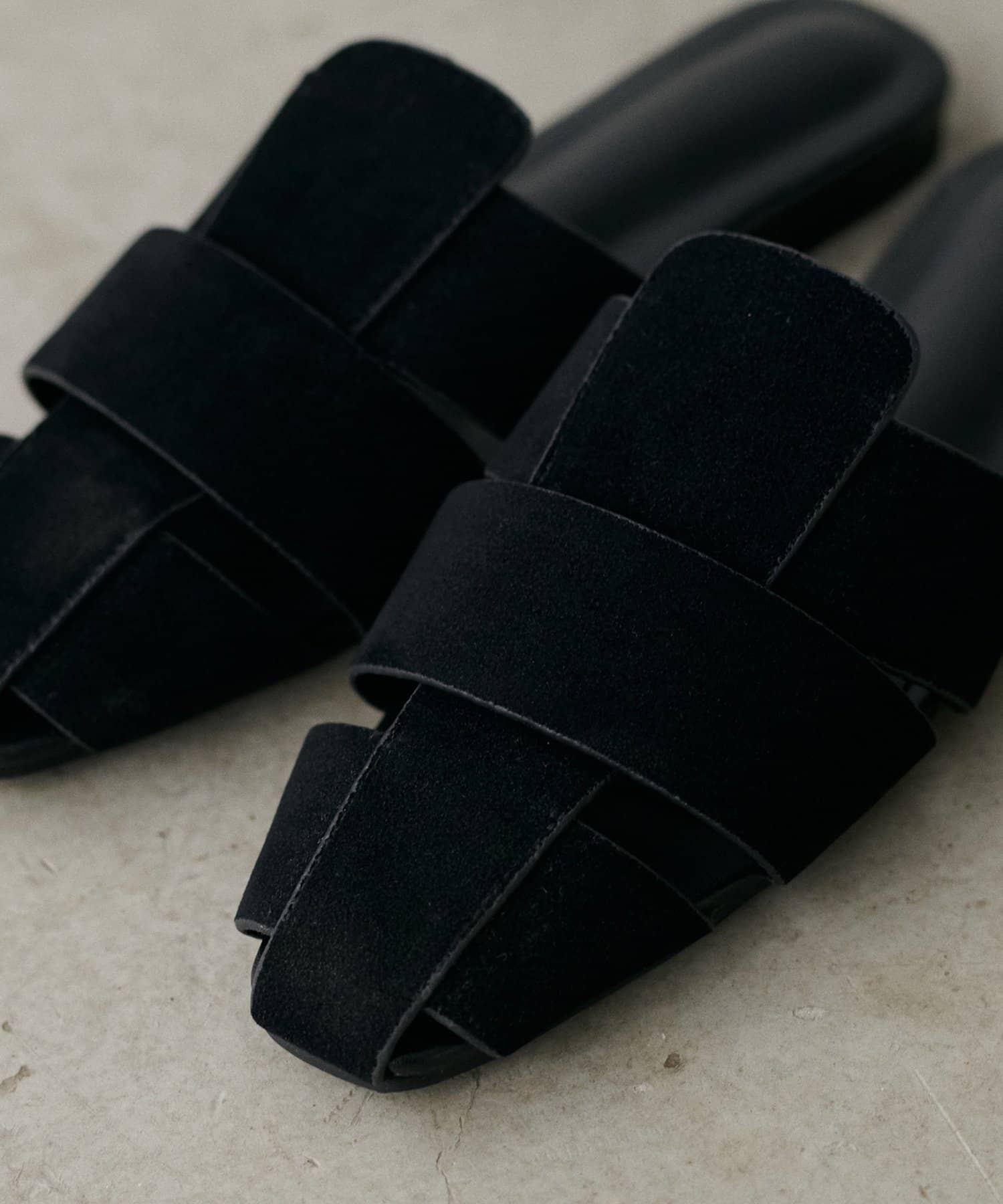 編み込みスエードミュール