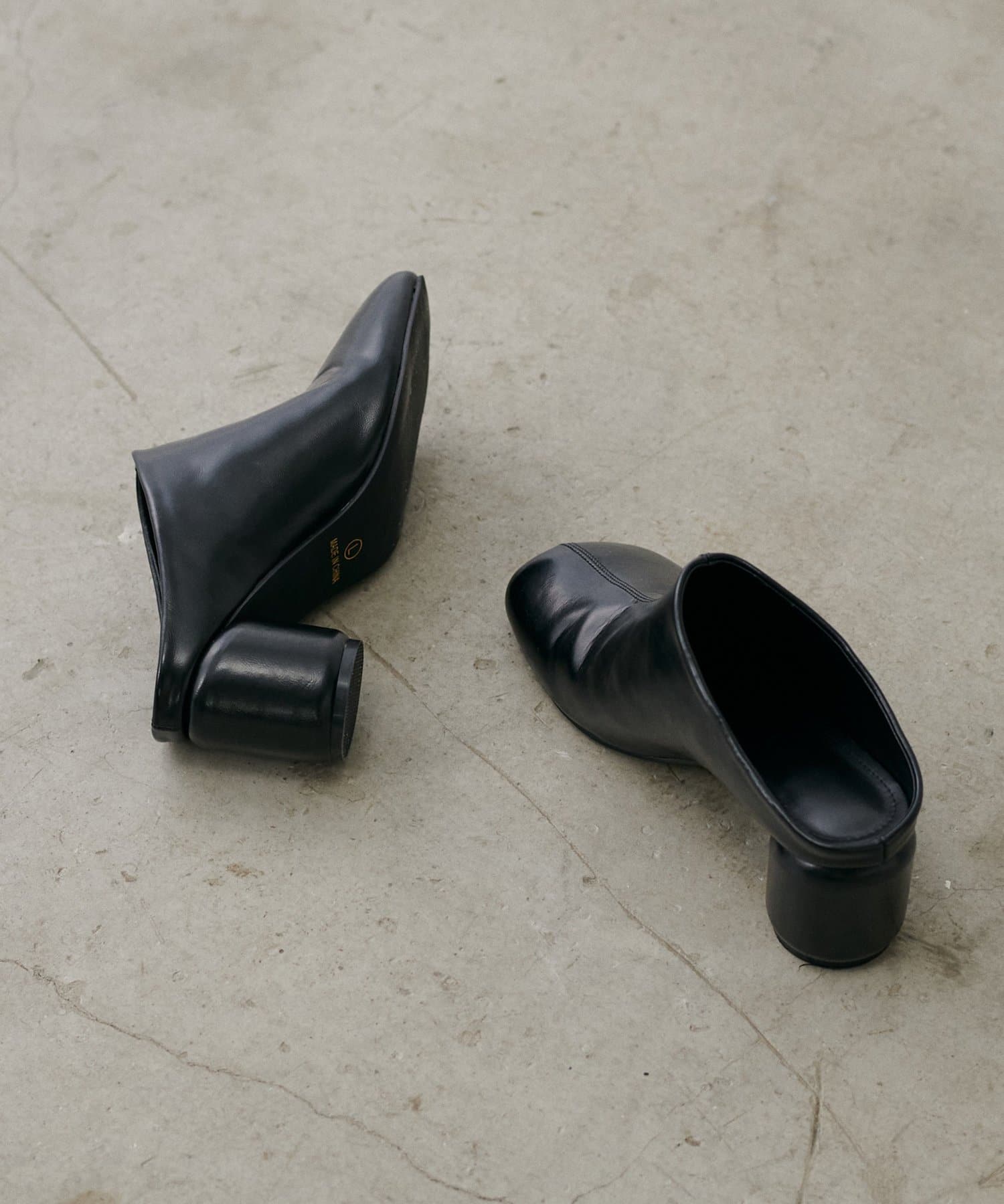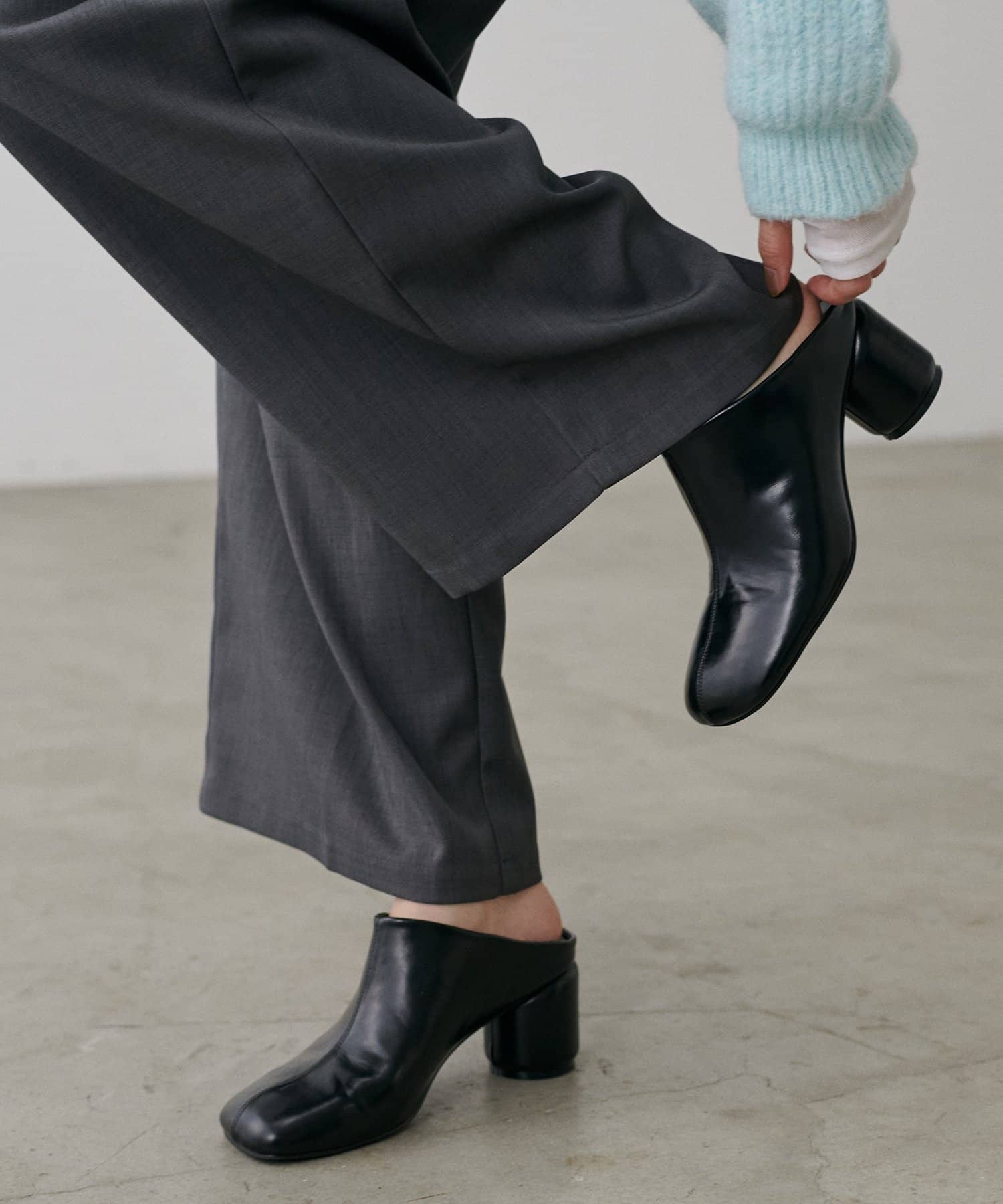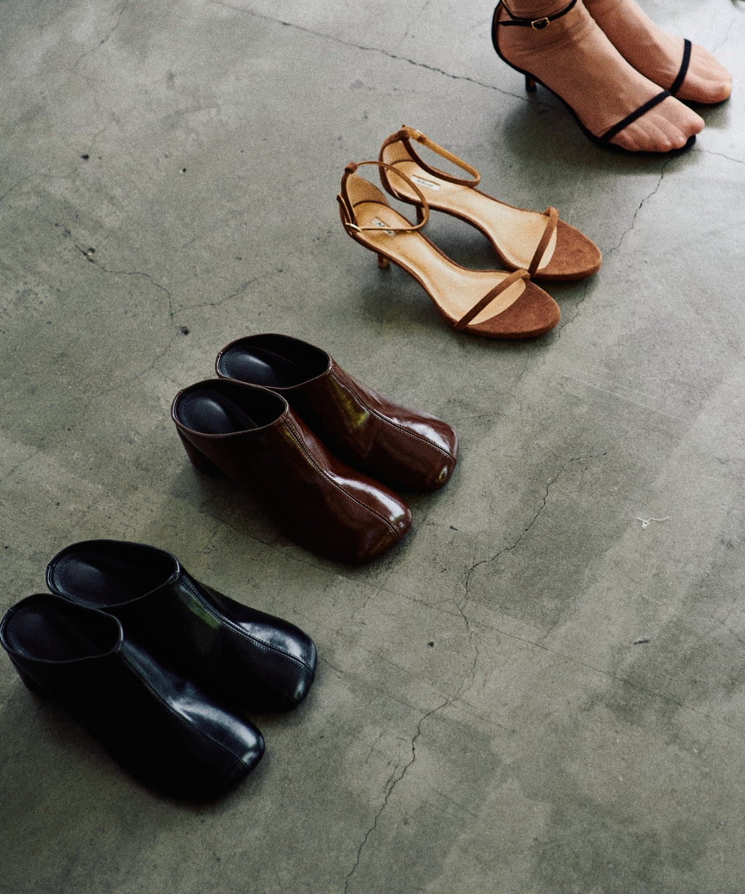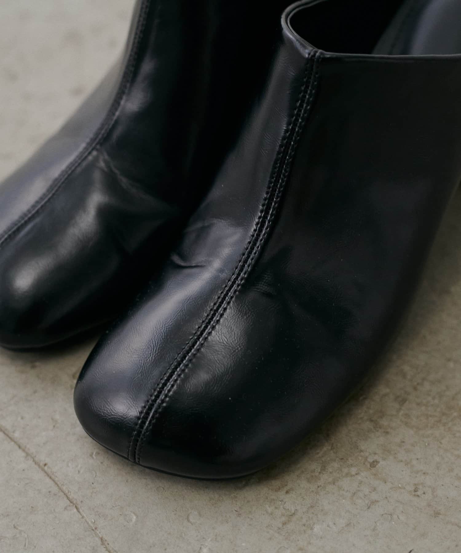 モードな印象を与えるスクエアトゥデザインのブーティー。