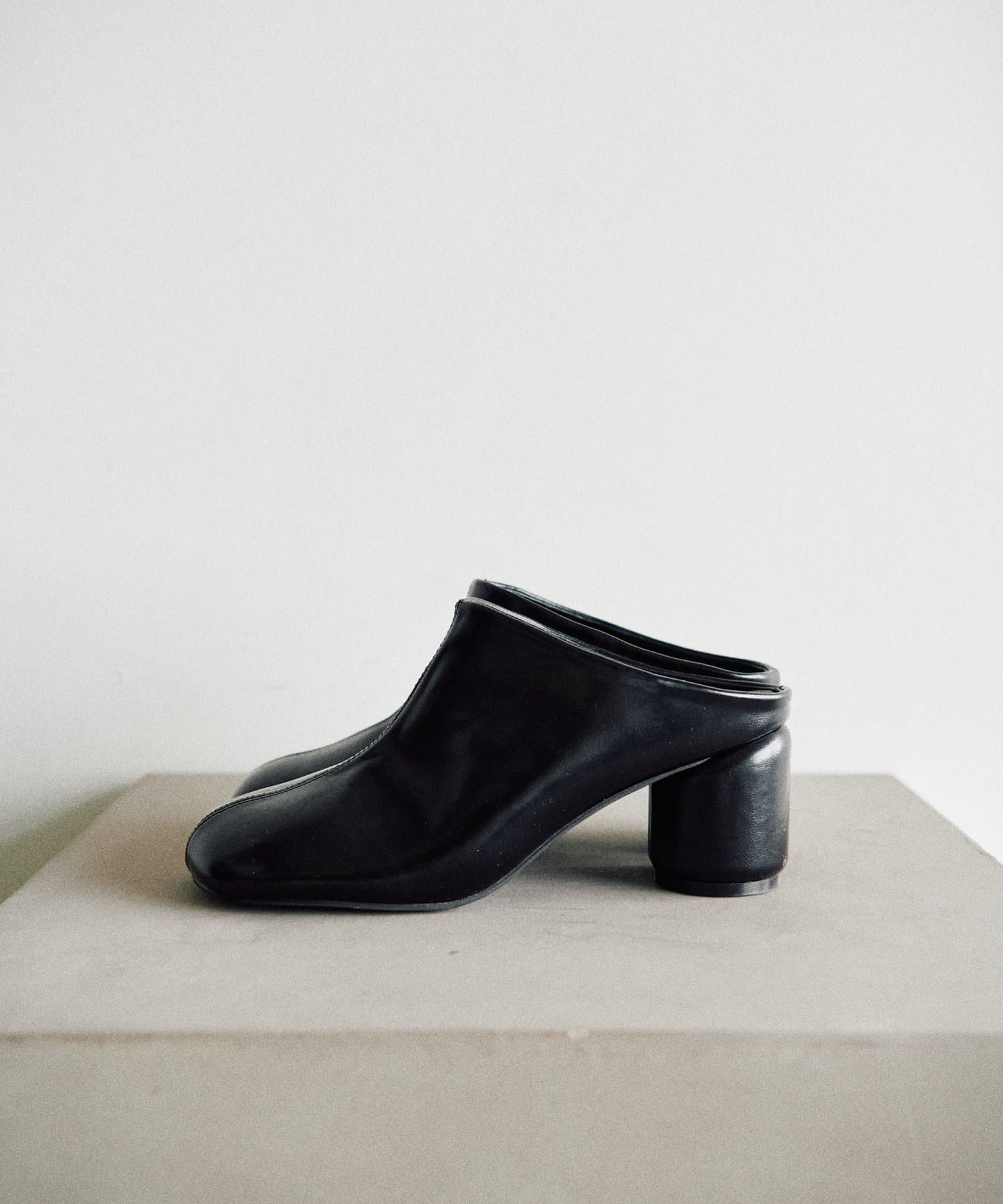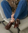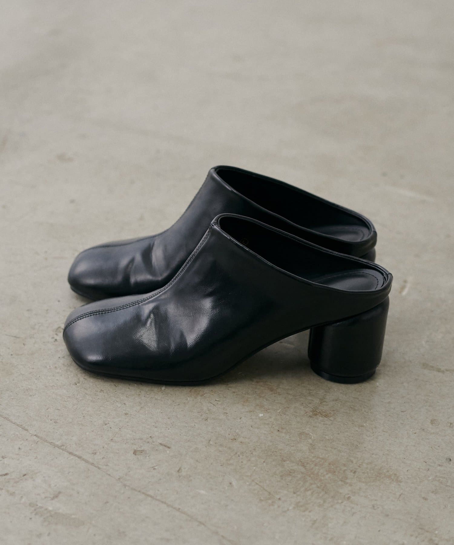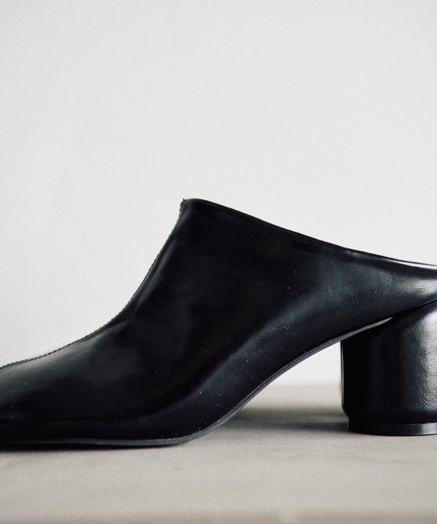 モードな印象を与えるスクエアトゥデザインのブーティー。