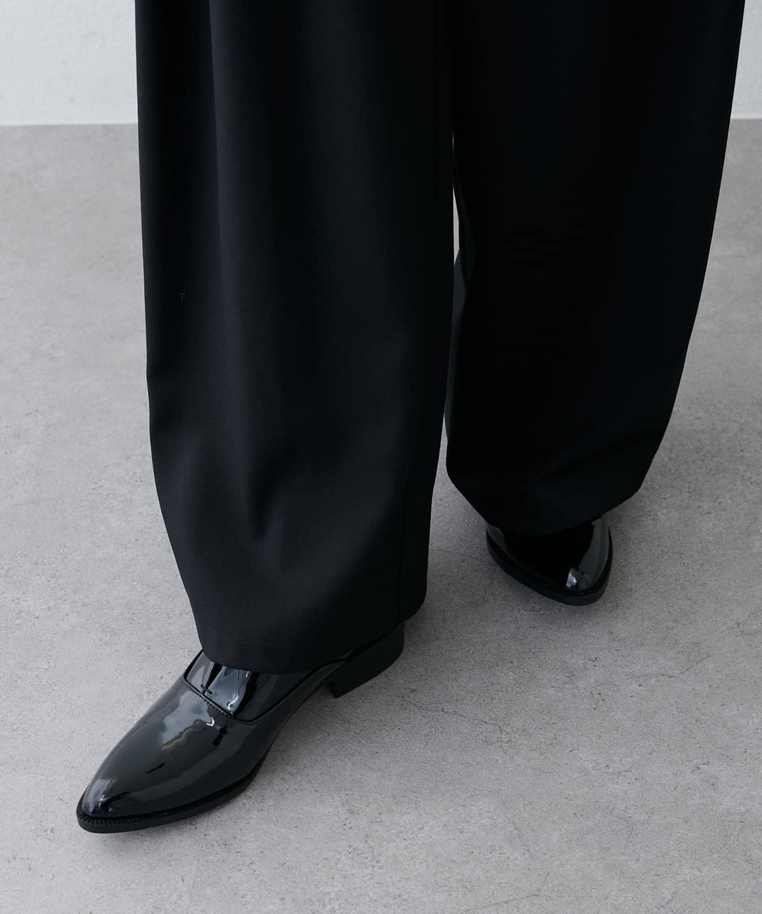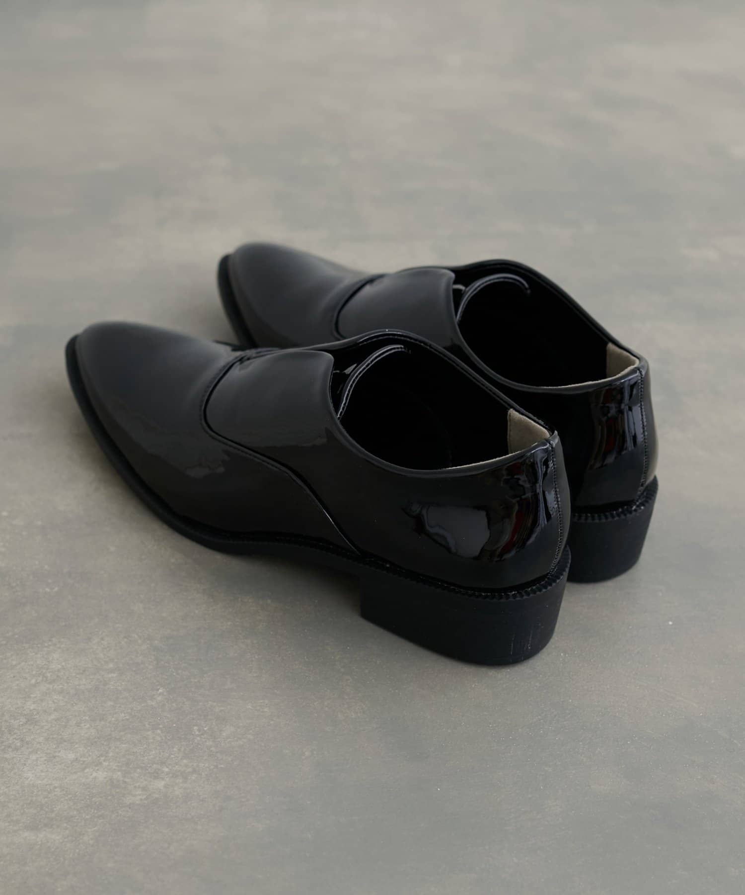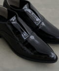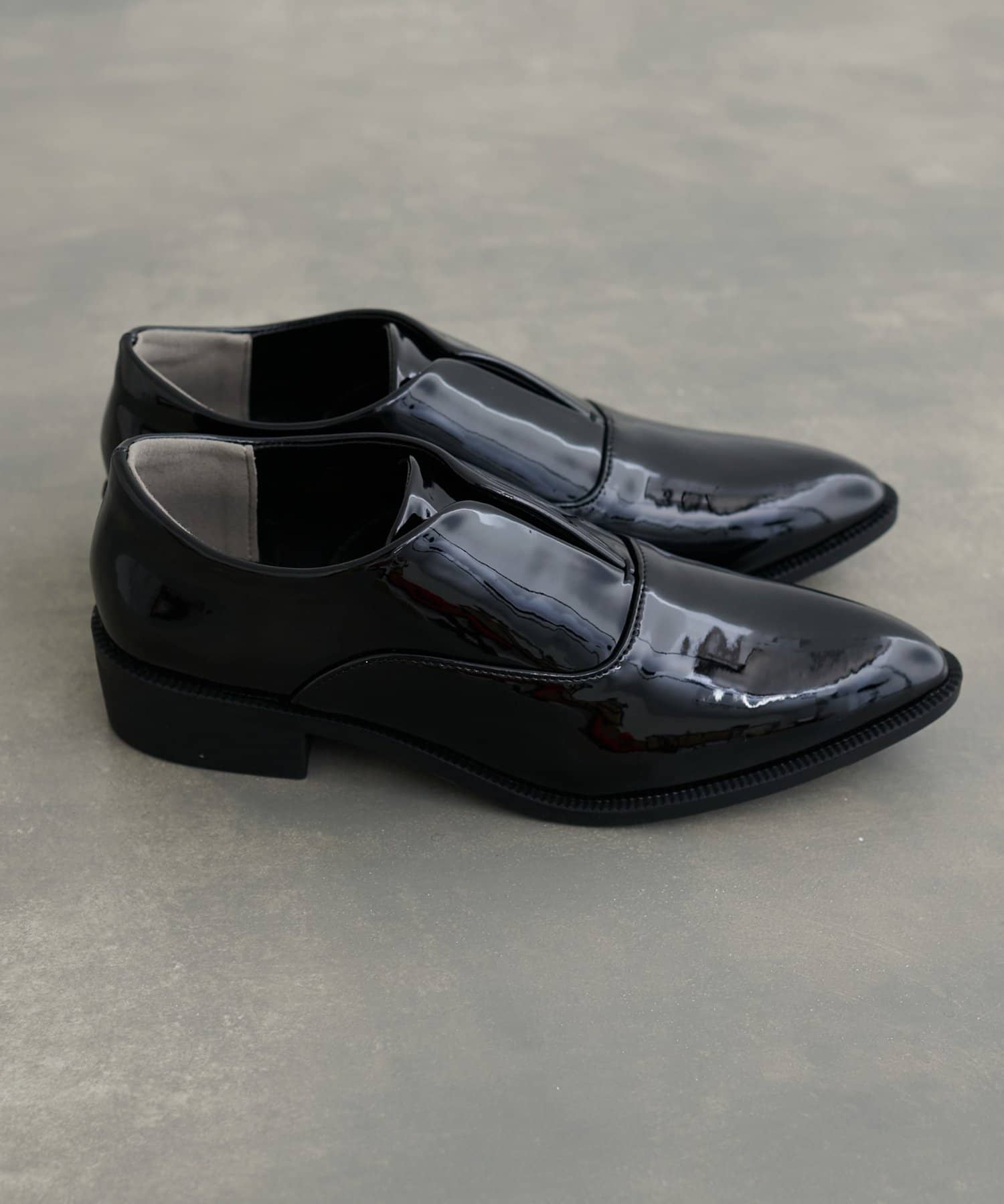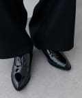 シャープなポインテッドトゥがモードな印象を与えるローファー。