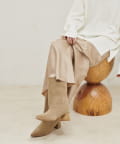 安定感のあるヒールで歩きやすく、秋冬のスタイリングに幅広く活躍する一足です。