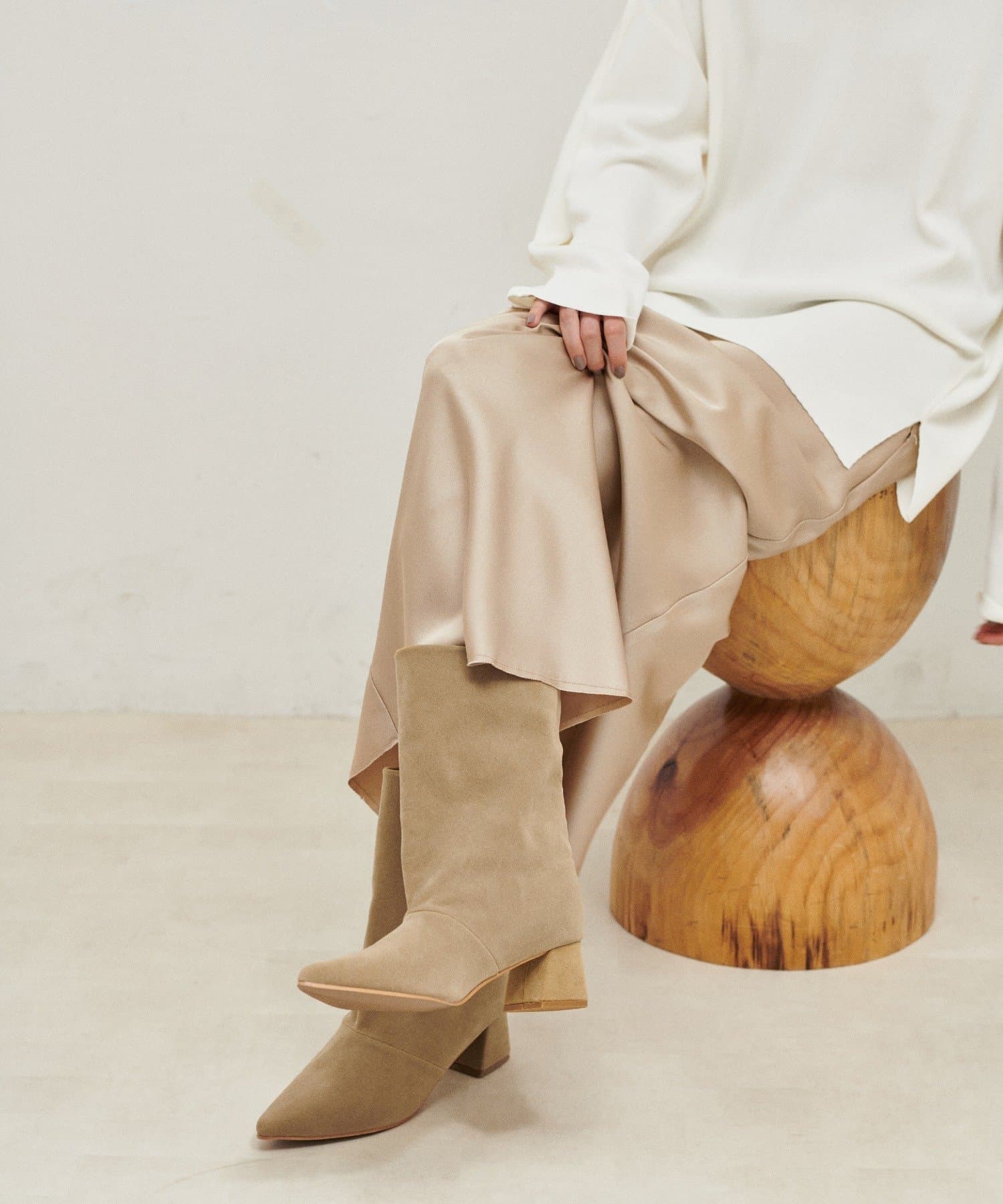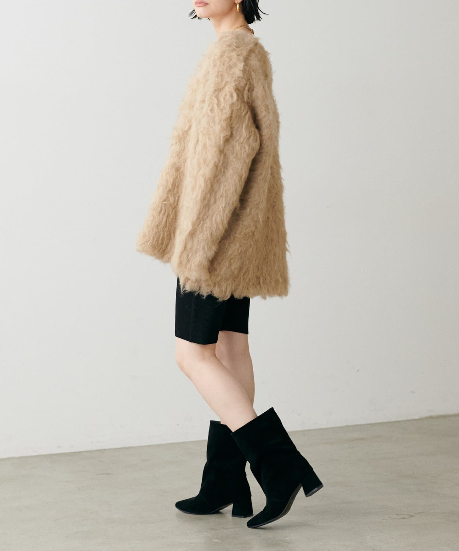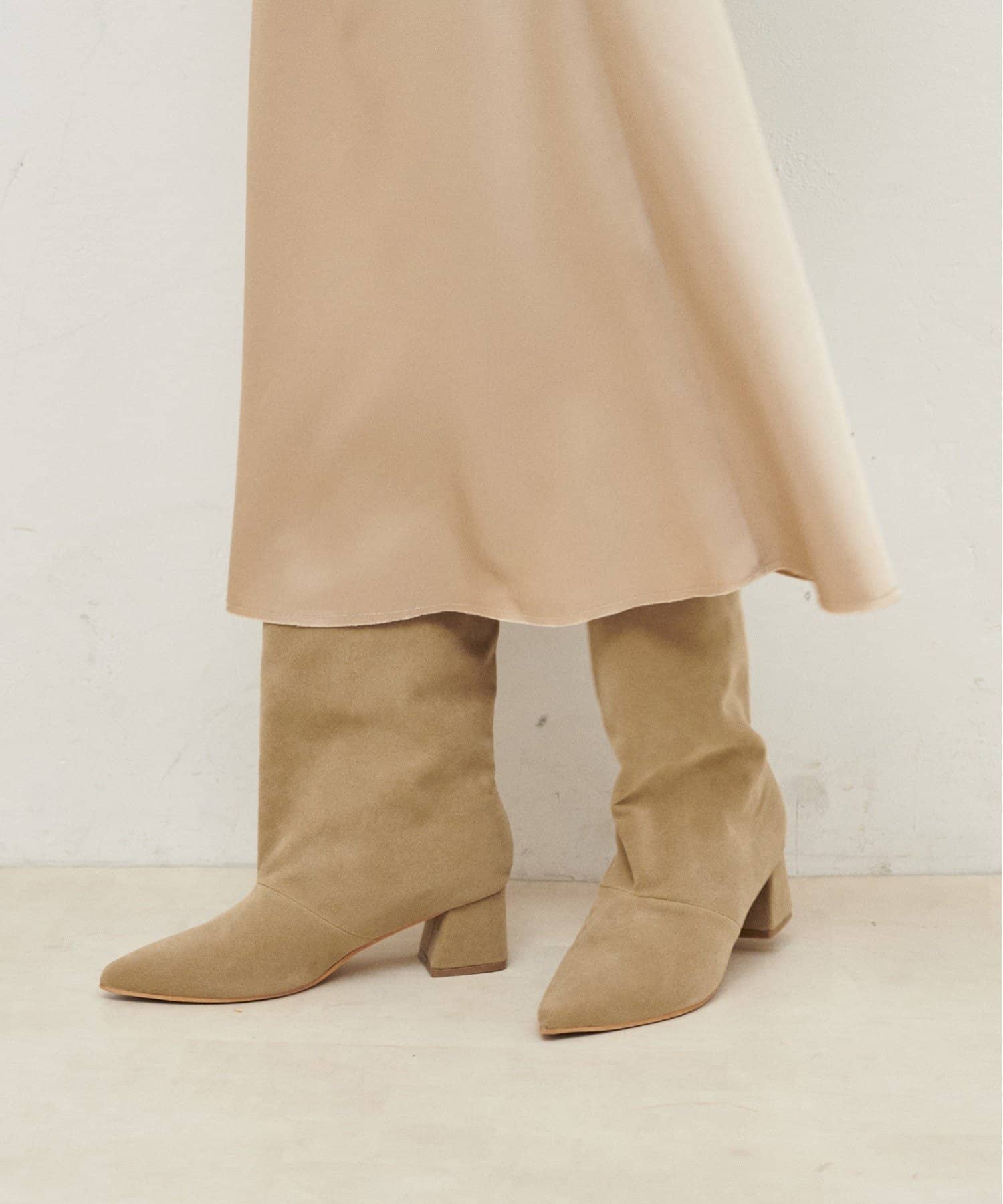 ワイドなシャフトデザインで、足元に抜け感をプラスするミドル丈ブーツ。