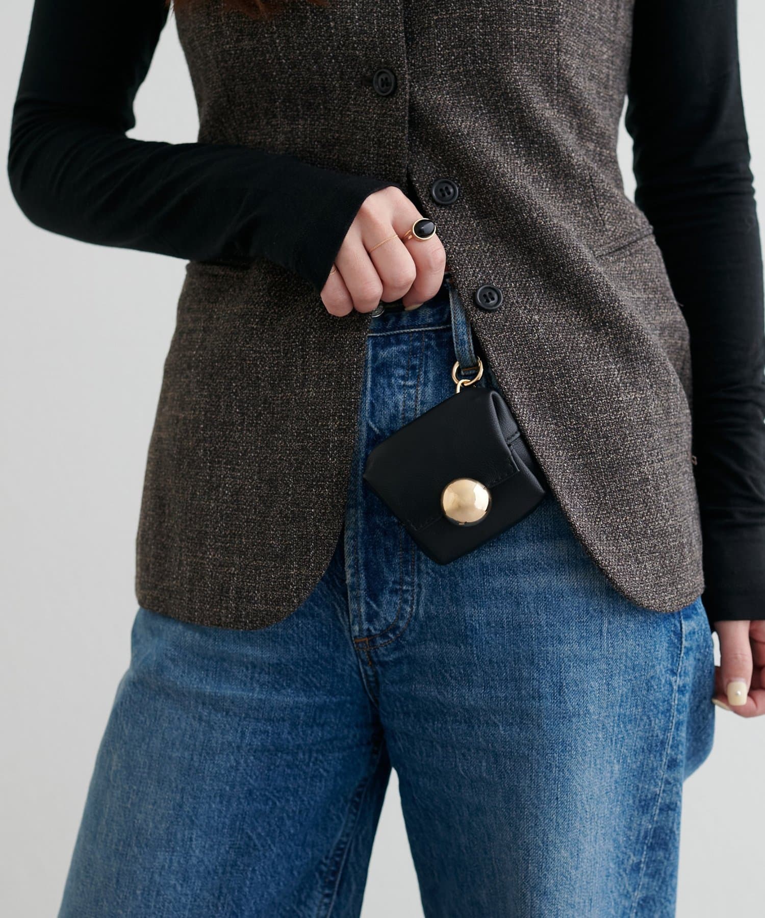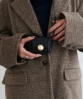 中央の丸いメタルモチーフがアクセントになったミニウォレット。