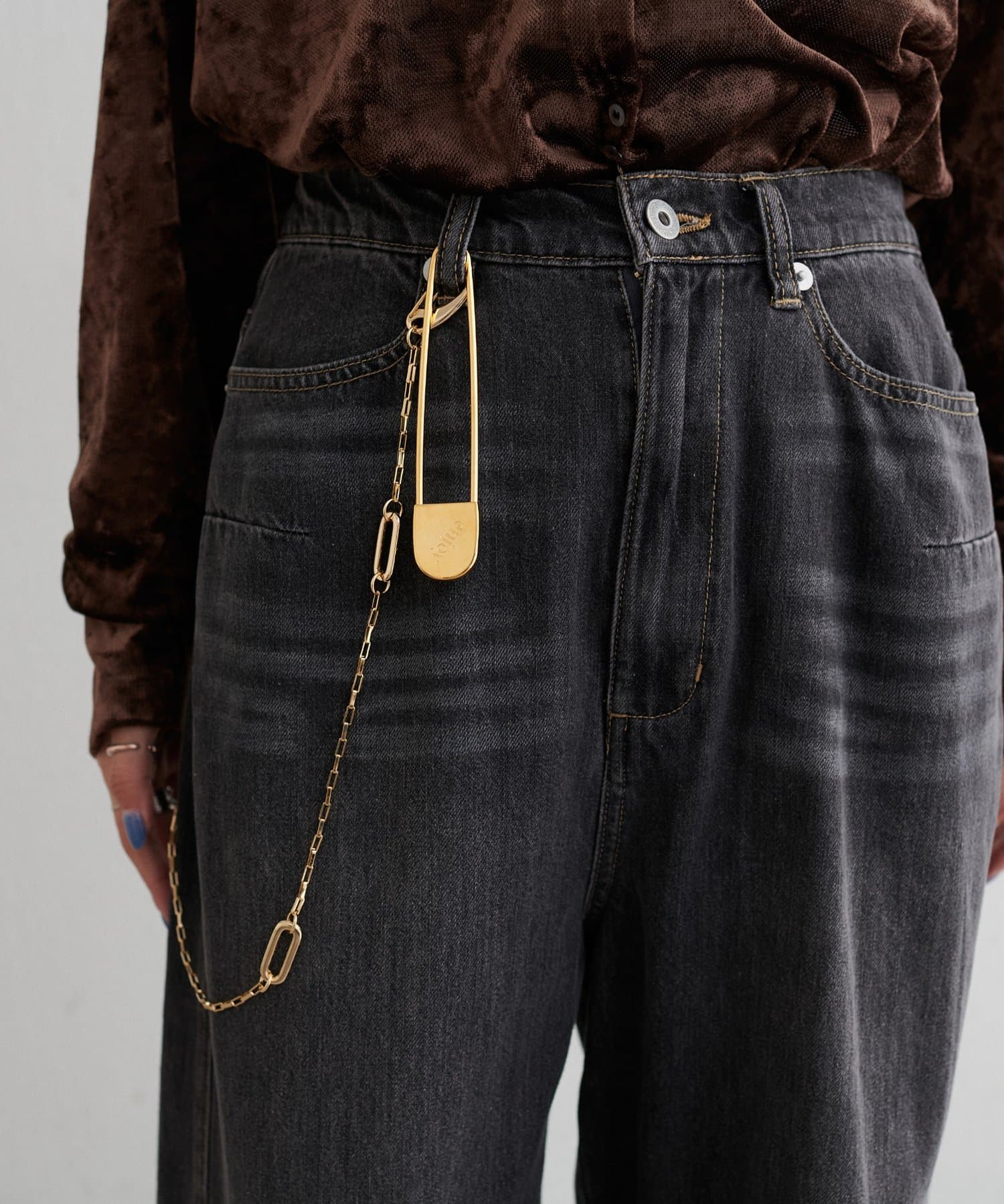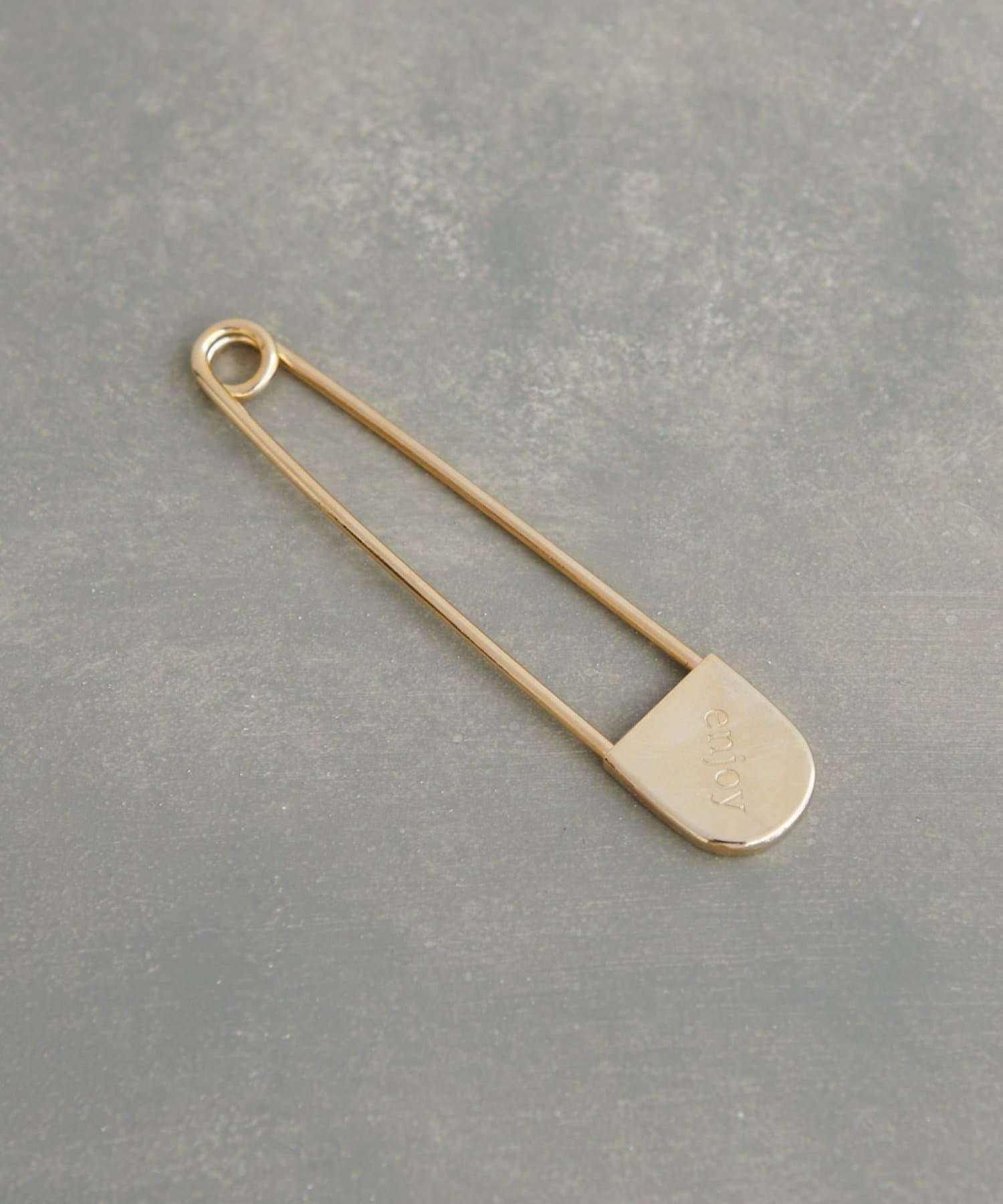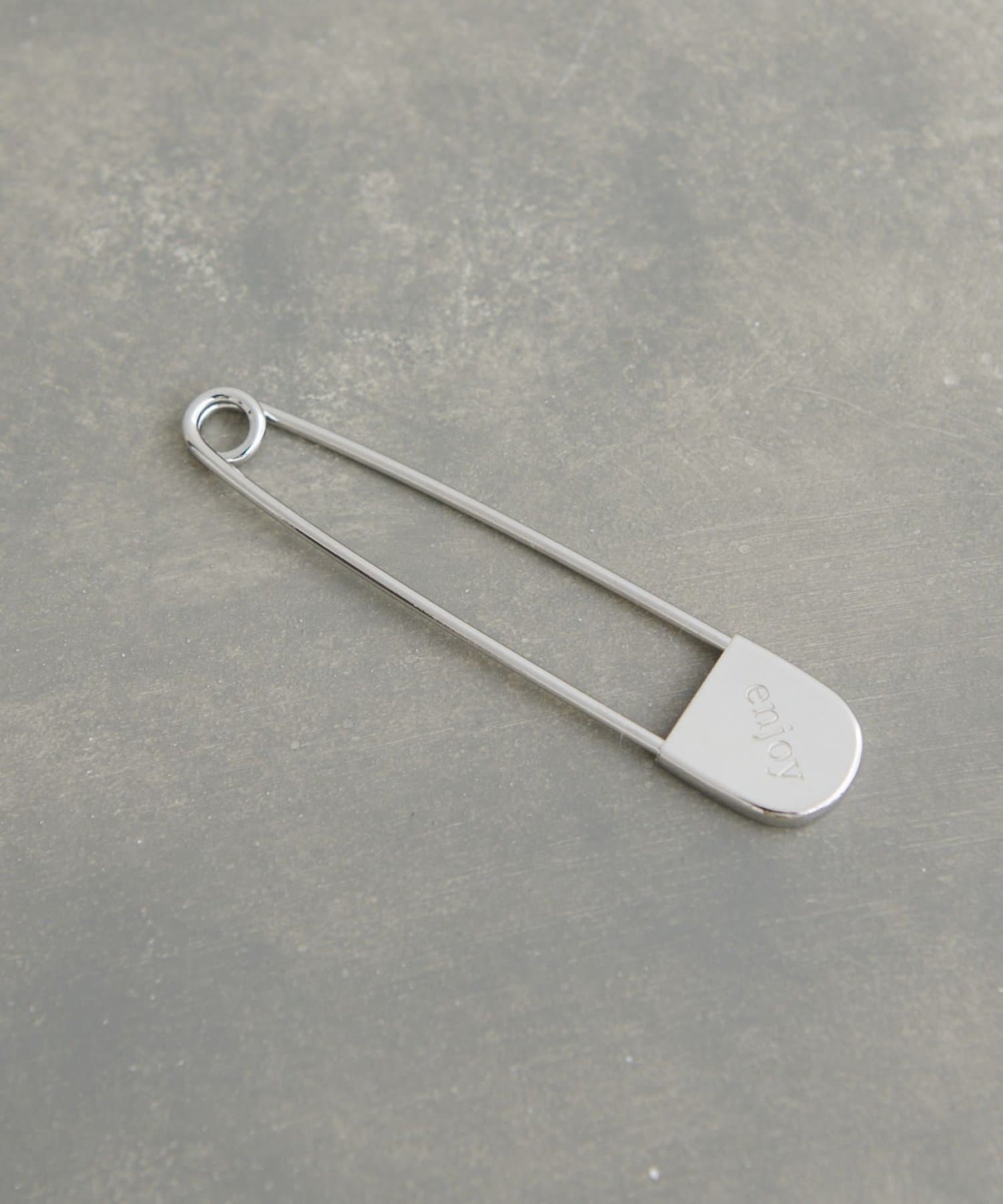 “enjoy”ロゴを刻印した存在感のあるビッグサイズのピンアクセサリー。