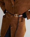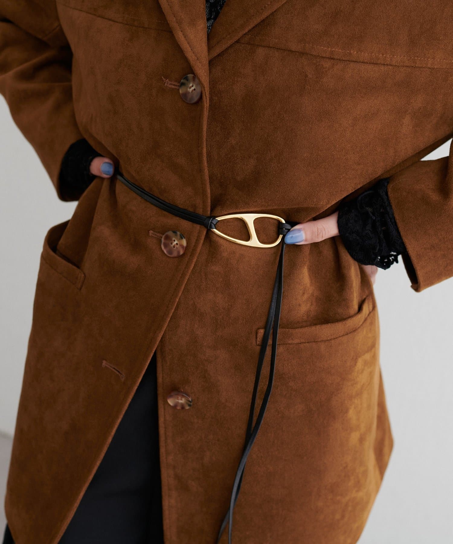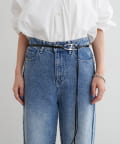 オリジナルのバックルが印象的な、アクセサリーライクなデザインベルト。