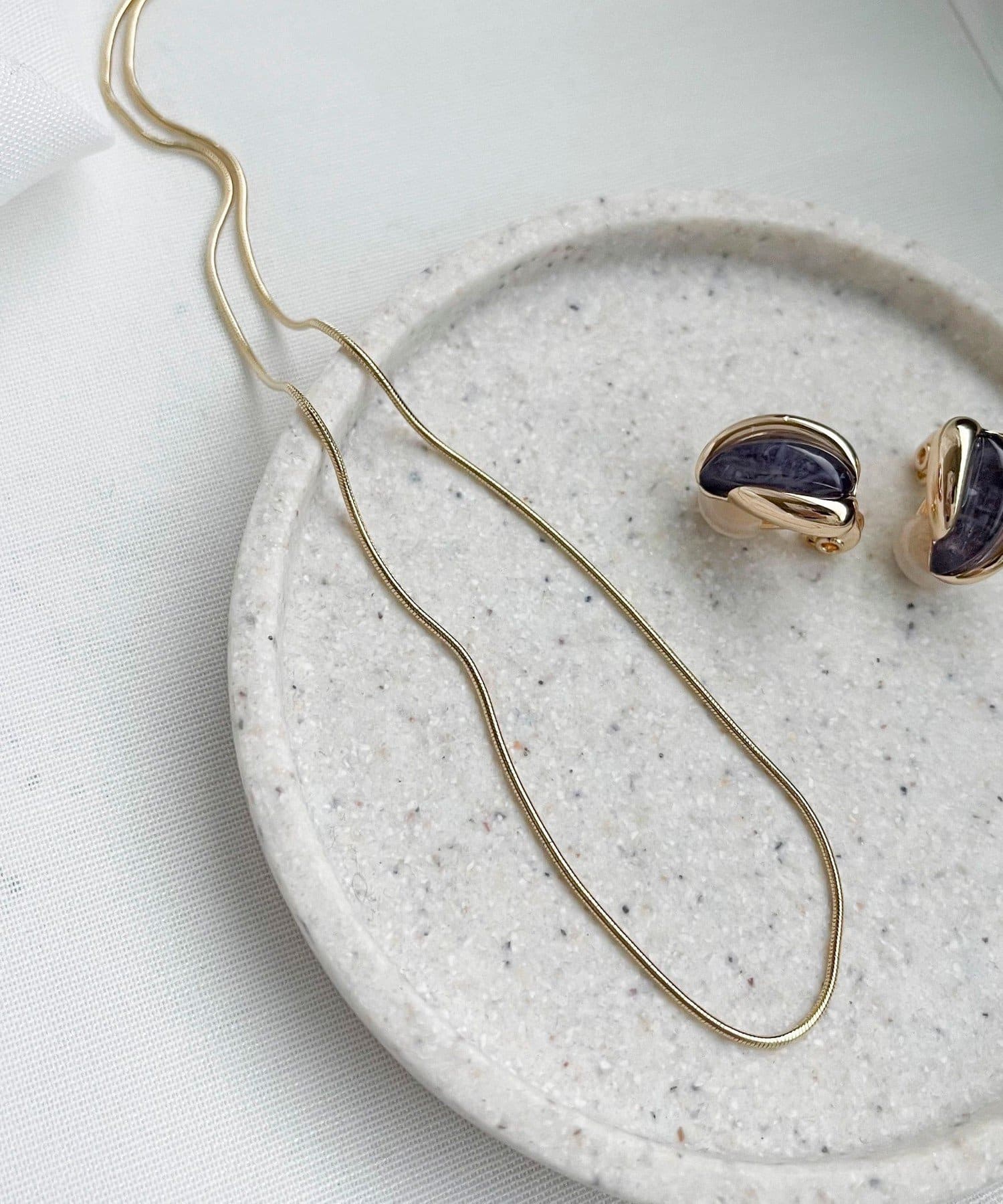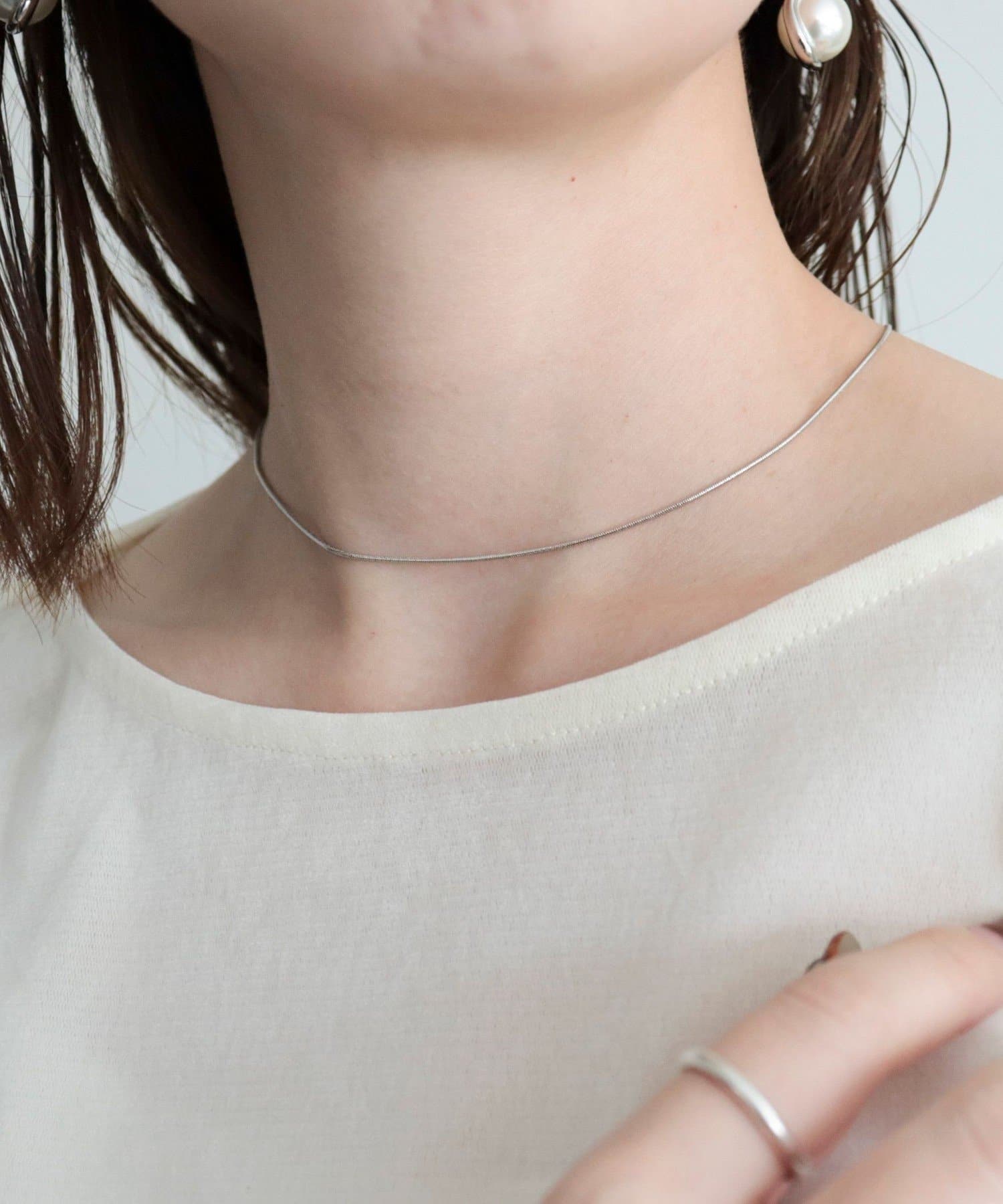 ・細いチェーンで印象は強すぎず、馴染む華奢さがあるのがポイントのショートネックレス