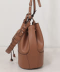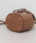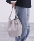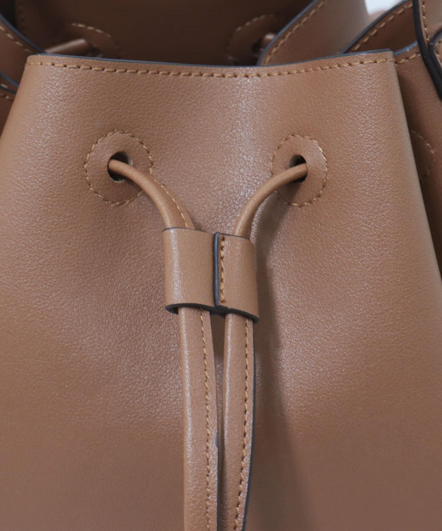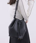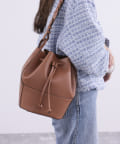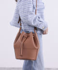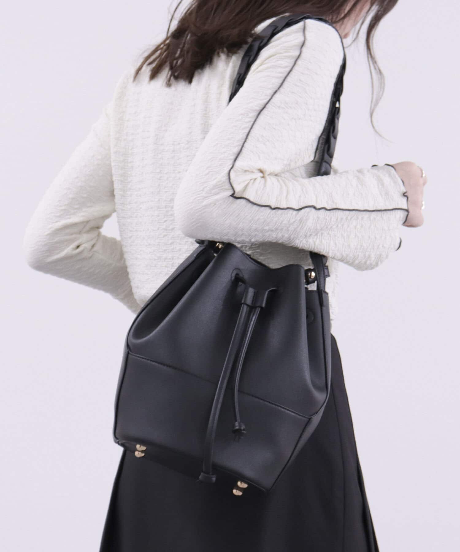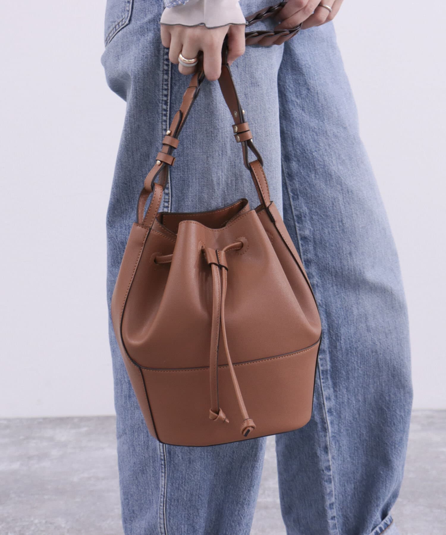 ・フェイクレザーを使用したコロンとしたフォルムの巾着バッグ