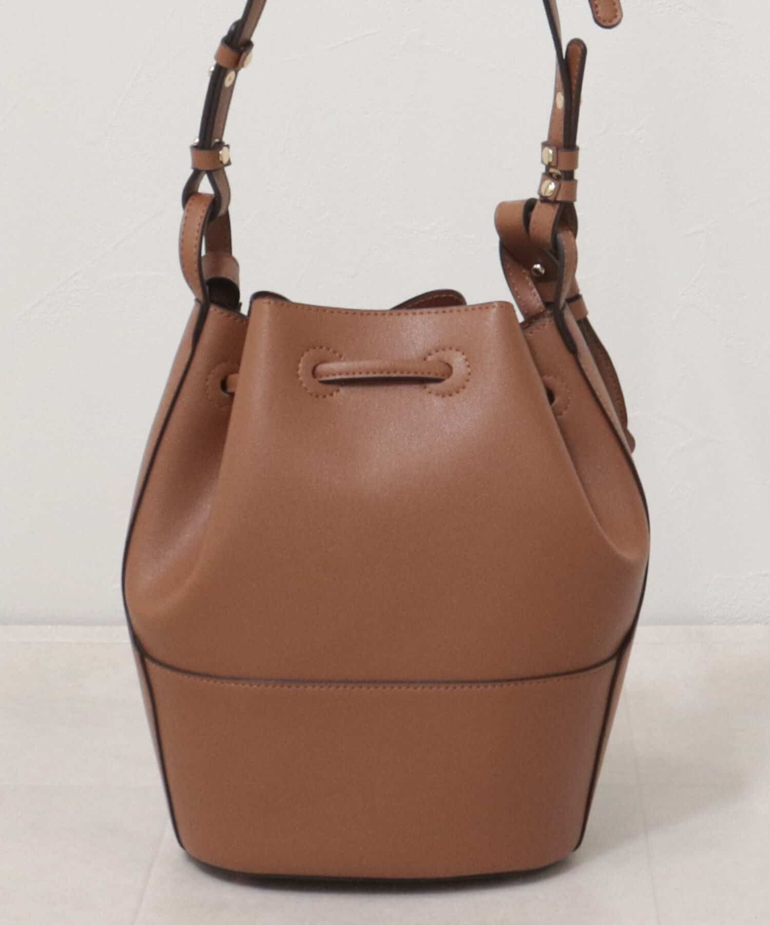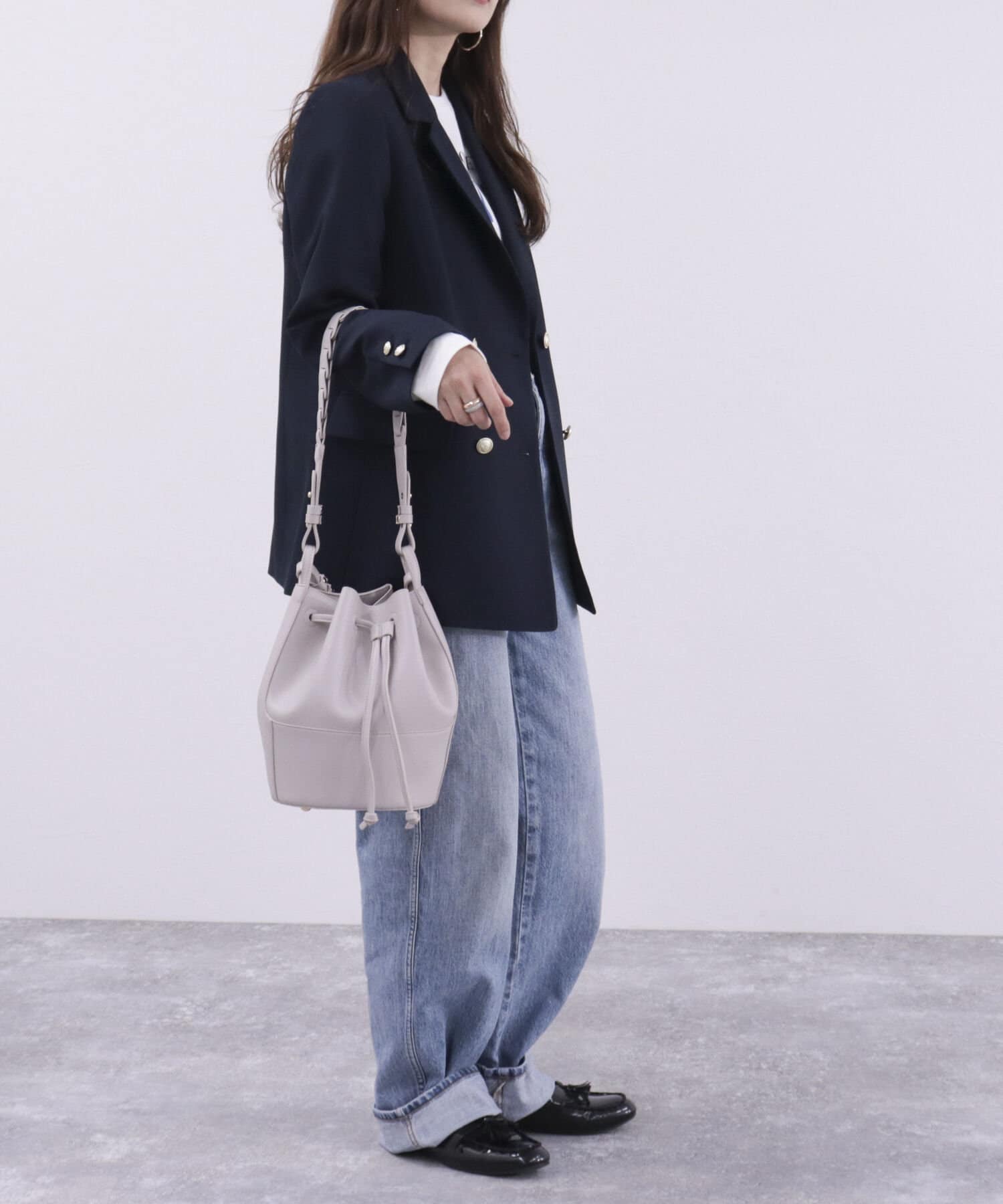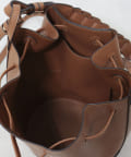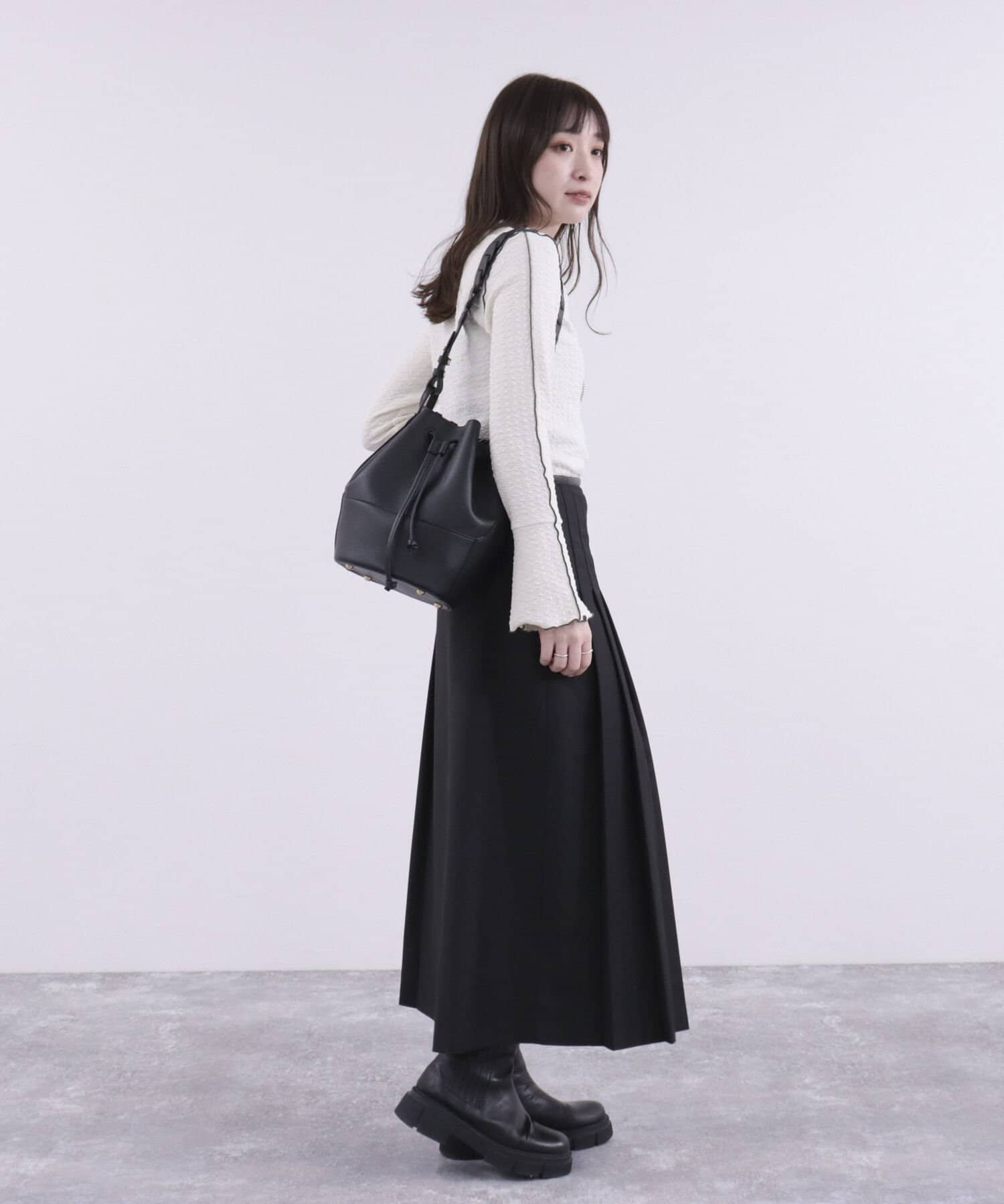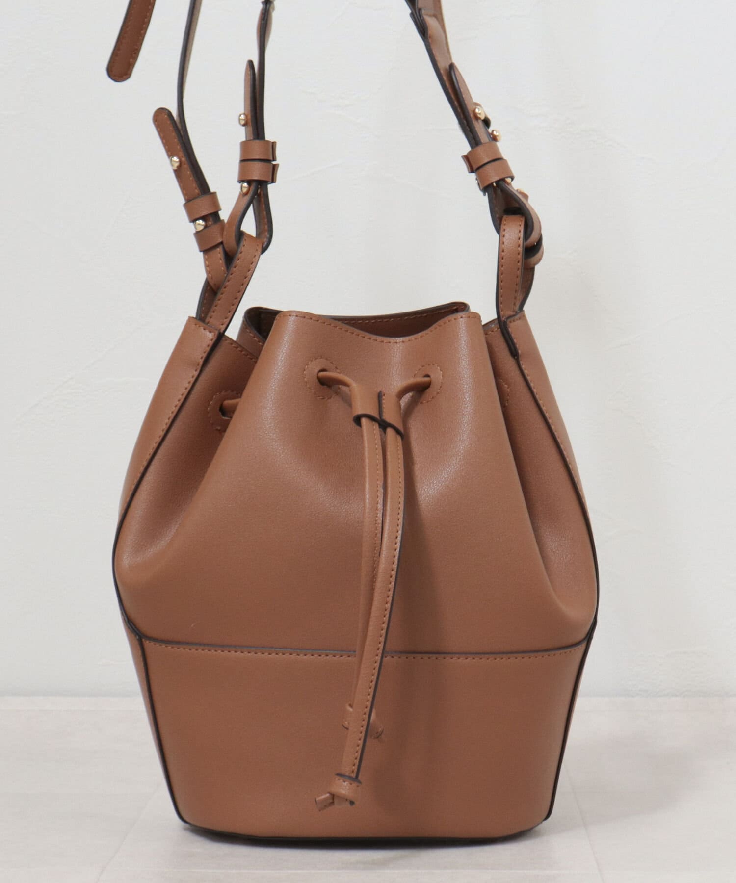 ・フェイクレザーを使用したコロンとしたフォルムの巾着バッグ