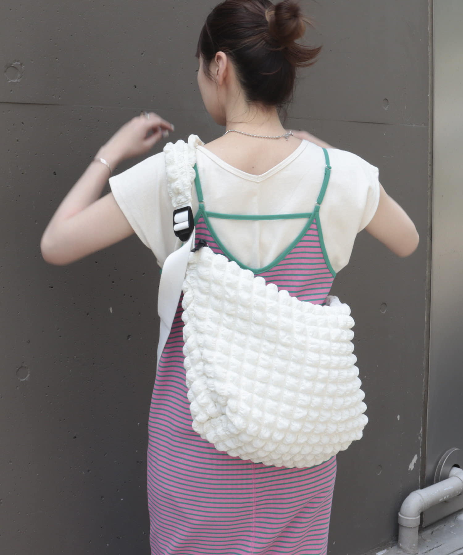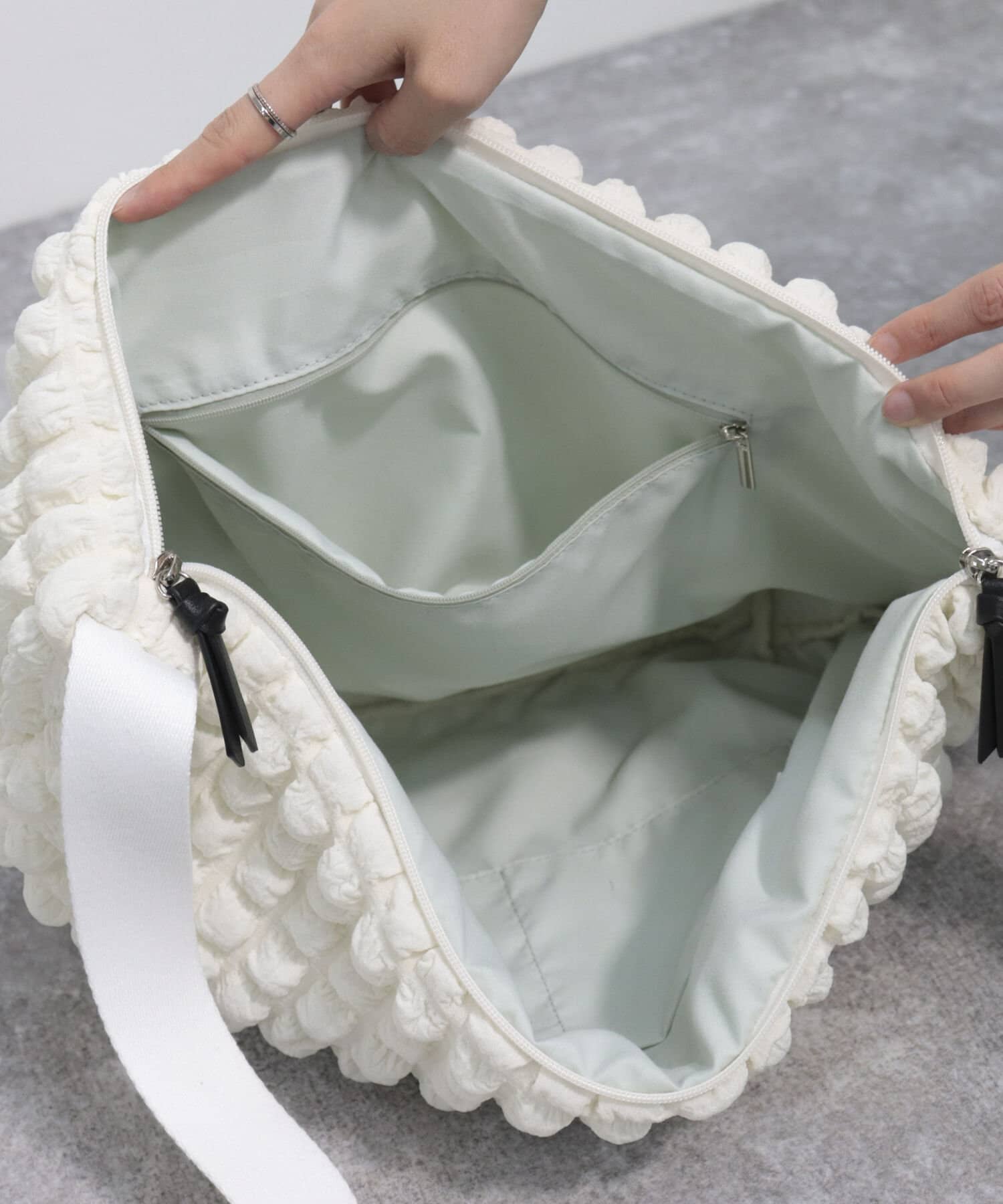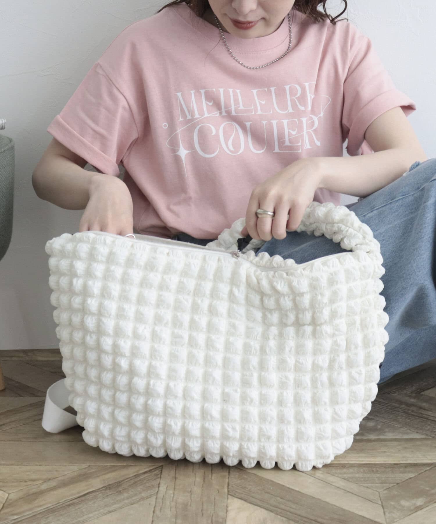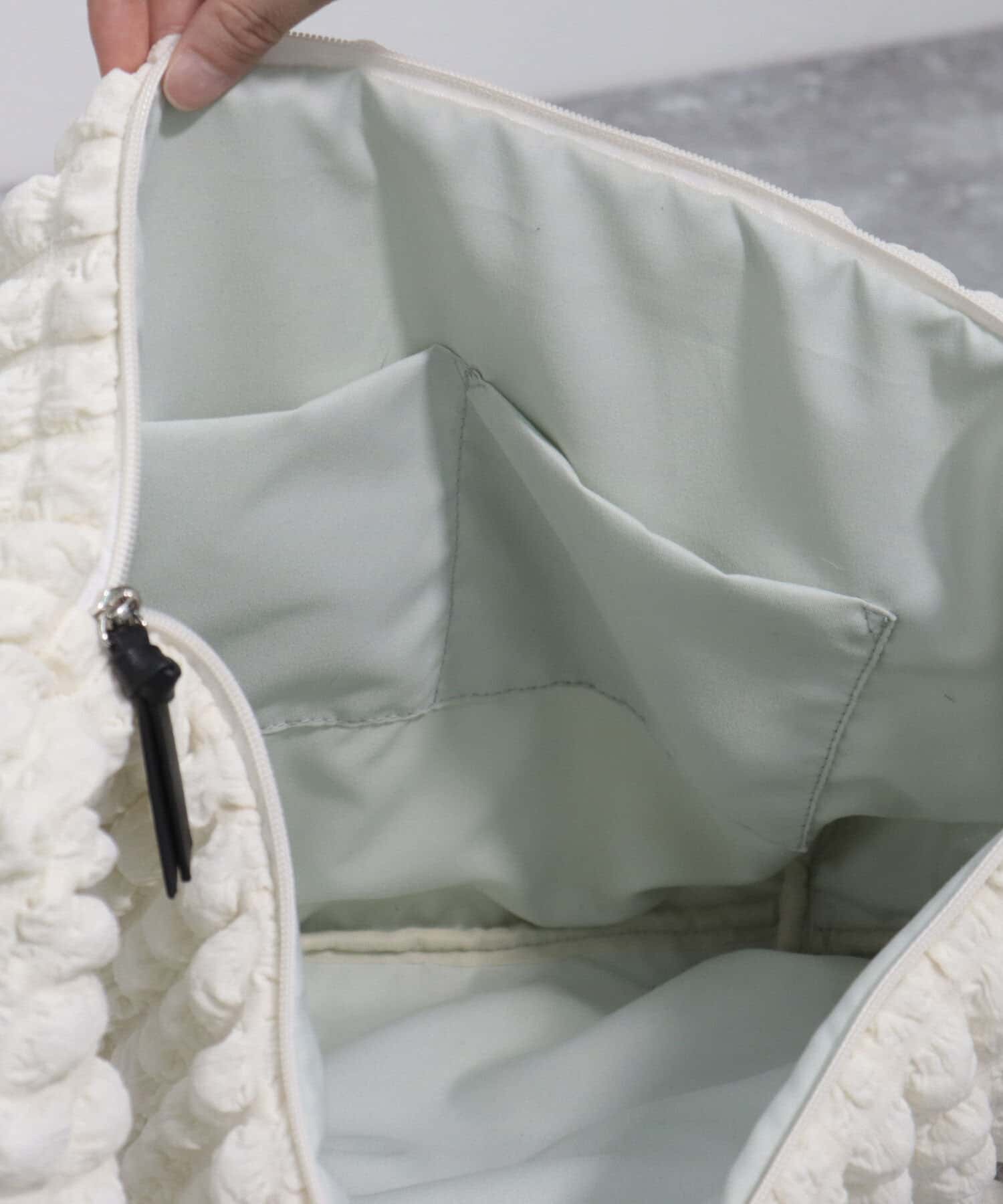 ポコポコした素材感が印象的な大容量バッグ