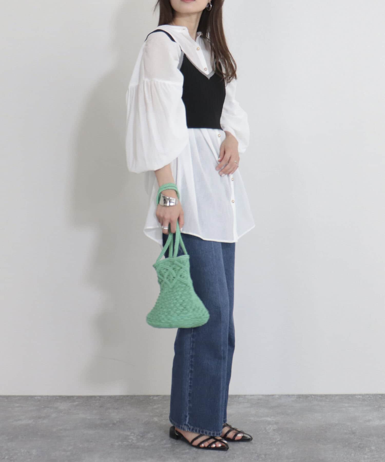 ・シアー感のあるデザインなので、春夏のコーディネートに抜け感を演出します