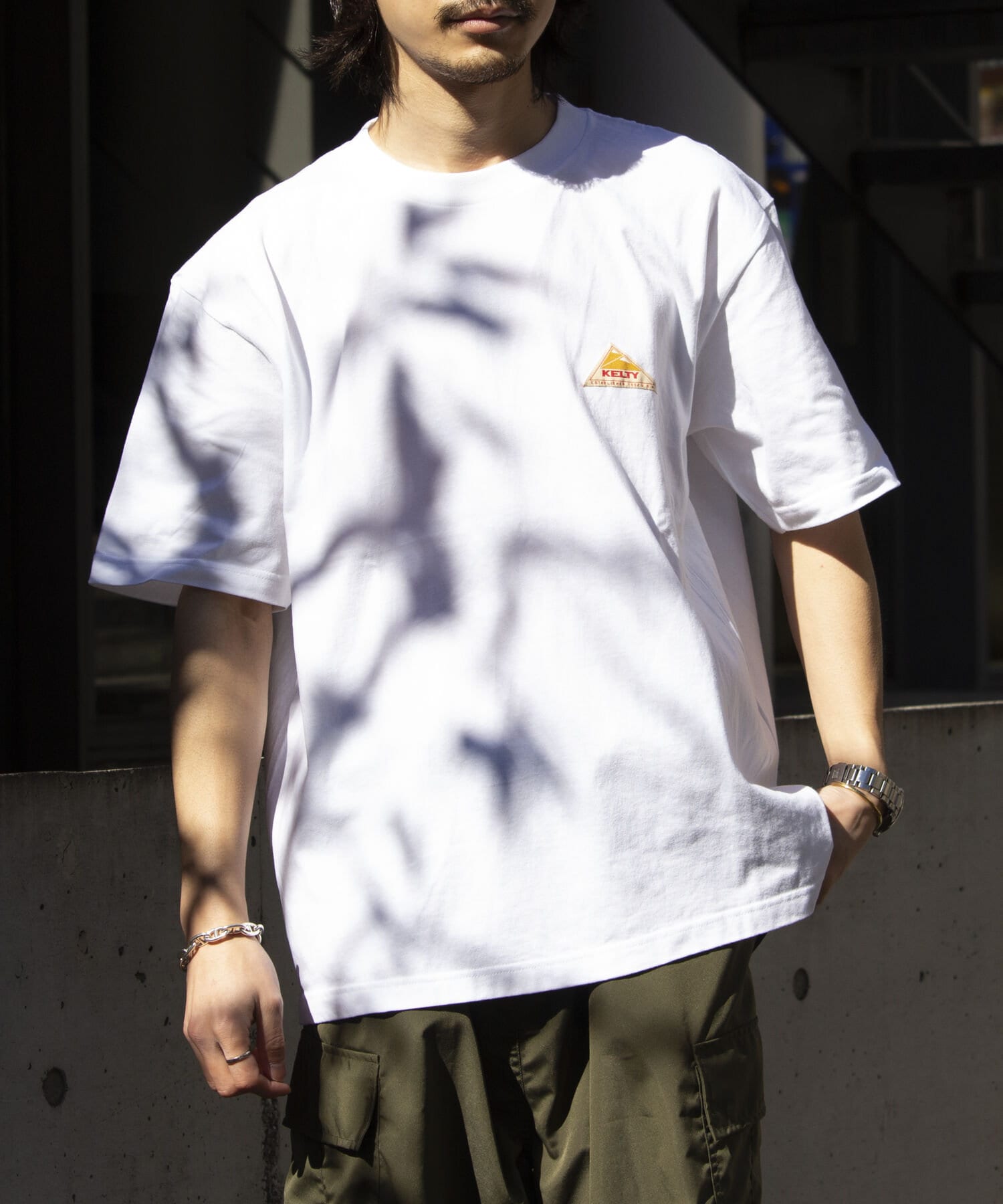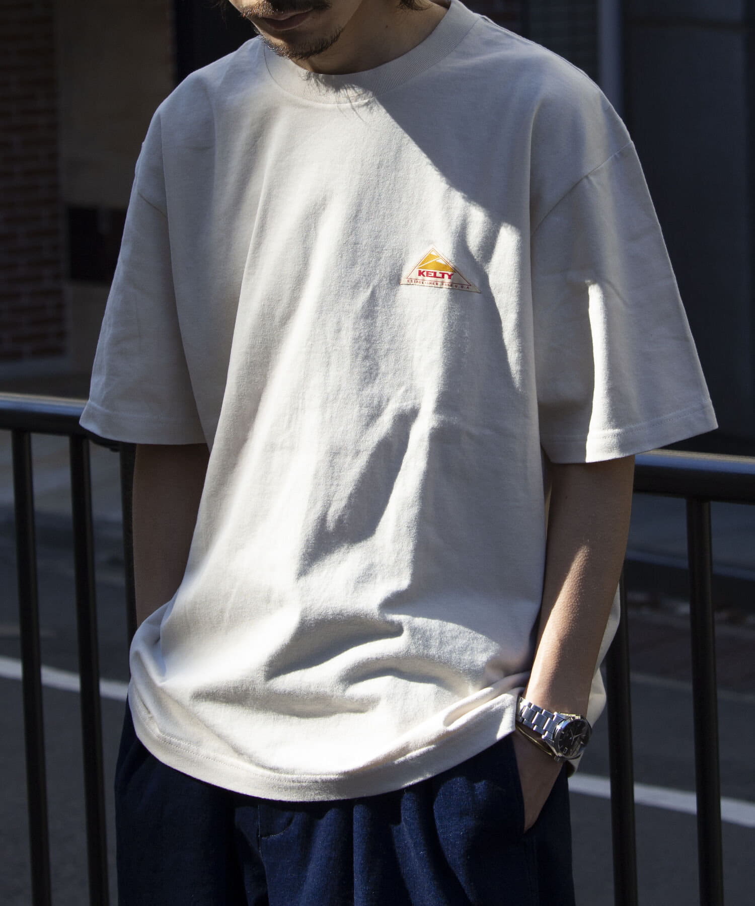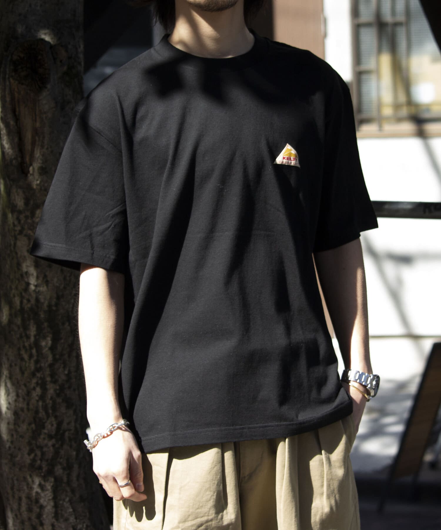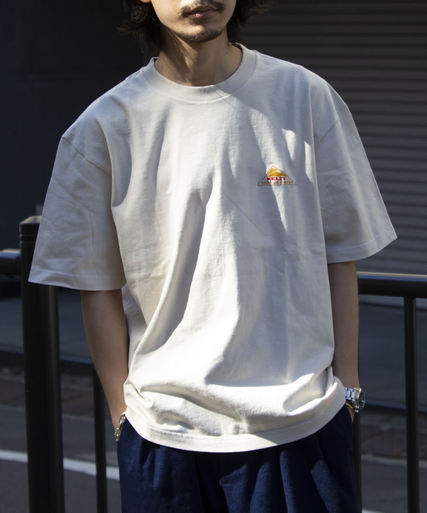 前回に続き胸元のワンポイントワッペンとバッグプリントロゴがキャッチーな半袖Tシャツが再登場です。