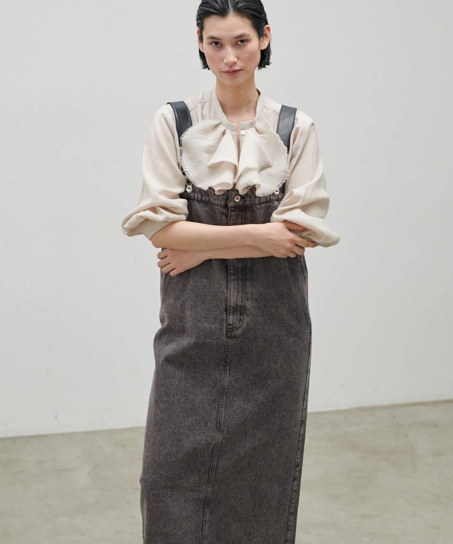 カジュアルになりがちなサロペットをこだわりのデニム素材と