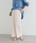 柔らかで滑らかなダンボール生地と布帛をドッキングさせたカーゴスカート。