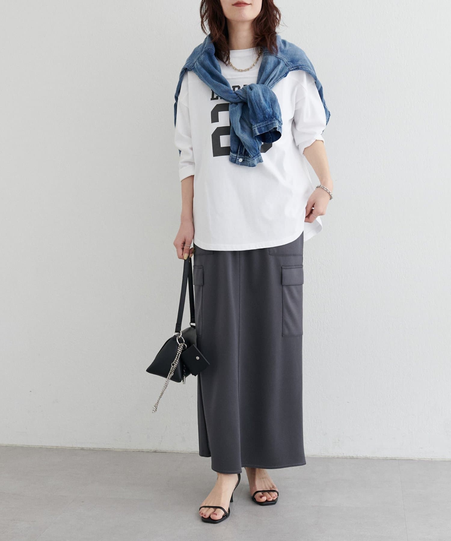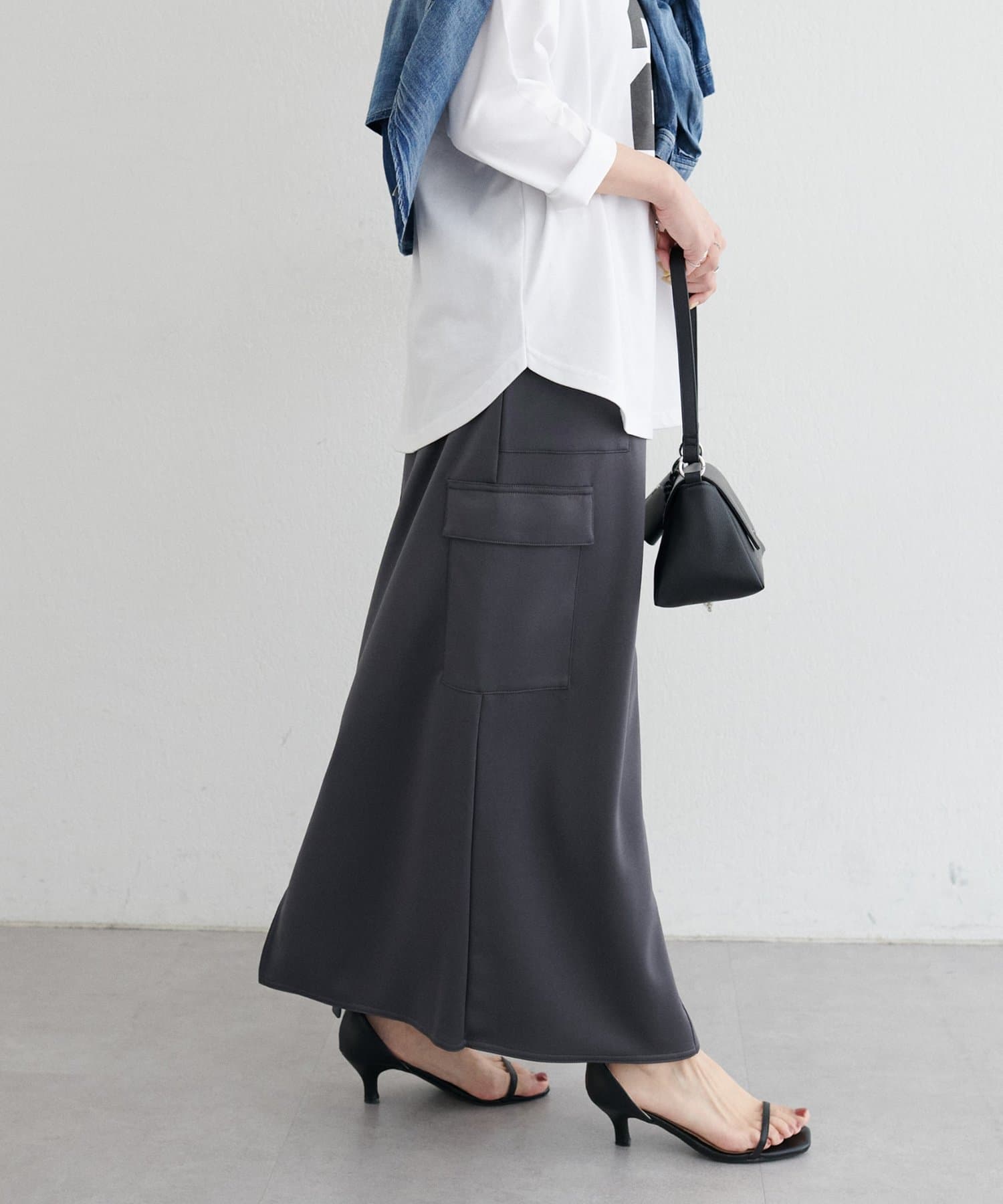シルエットにメリハリをつけてくれるIラインスカートで