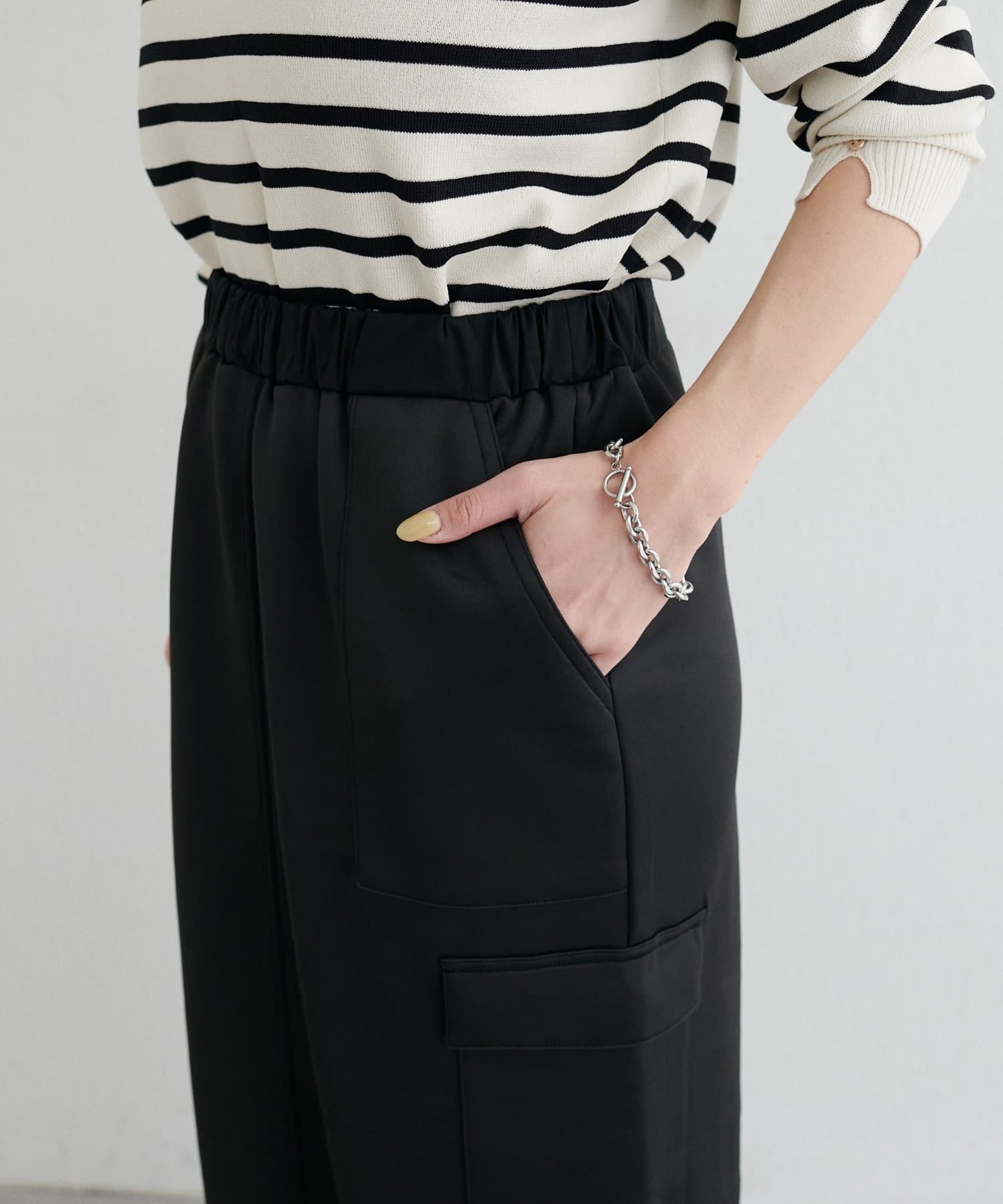 オーバーシルエットや着丈が長めのトップスとも相性がいいのが嬉しいポイント。