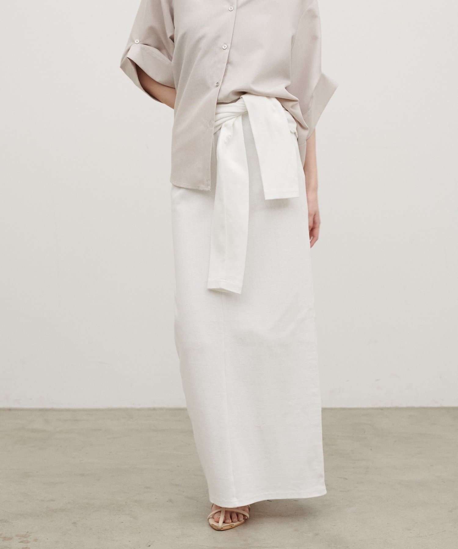 ドッキングされた裾を巻き付ければ腰巻きのようなスタイルに。