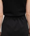 腰元のフラップデザインを生かして、クロップド丈のトップスと
