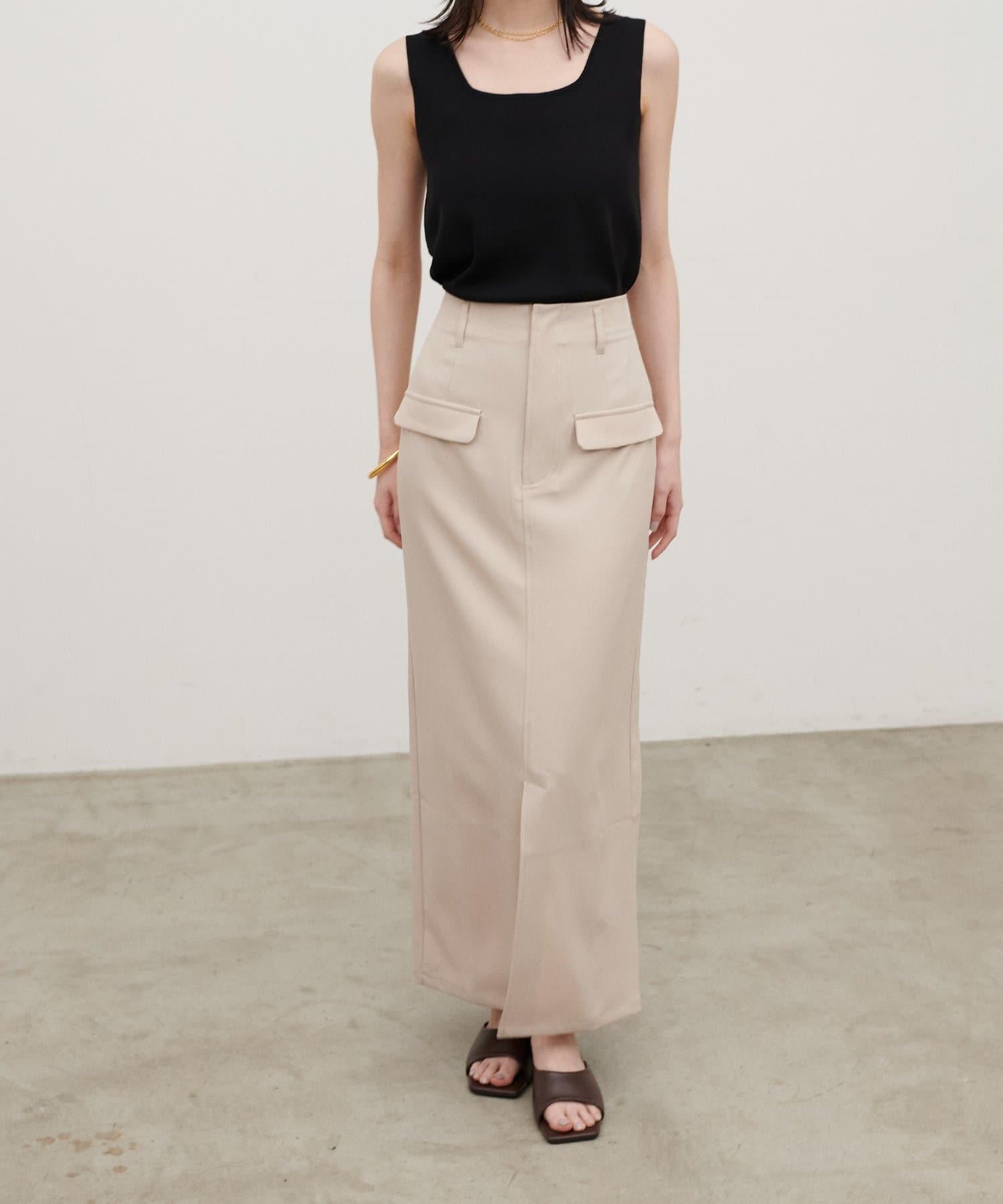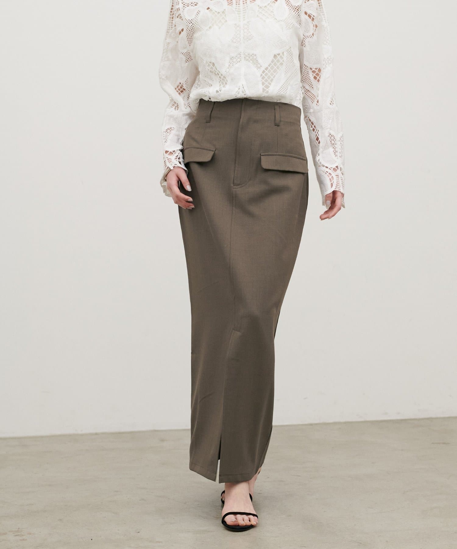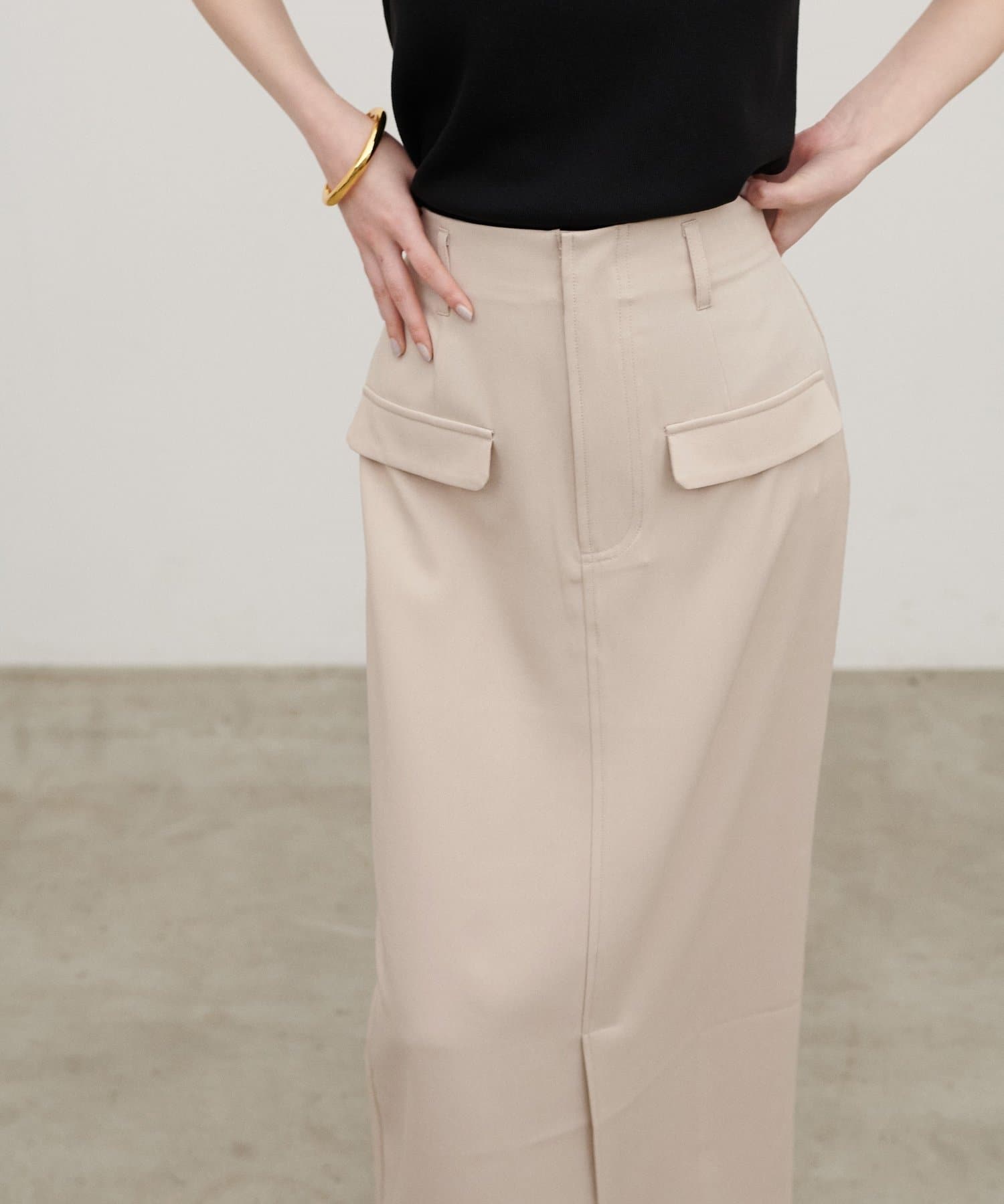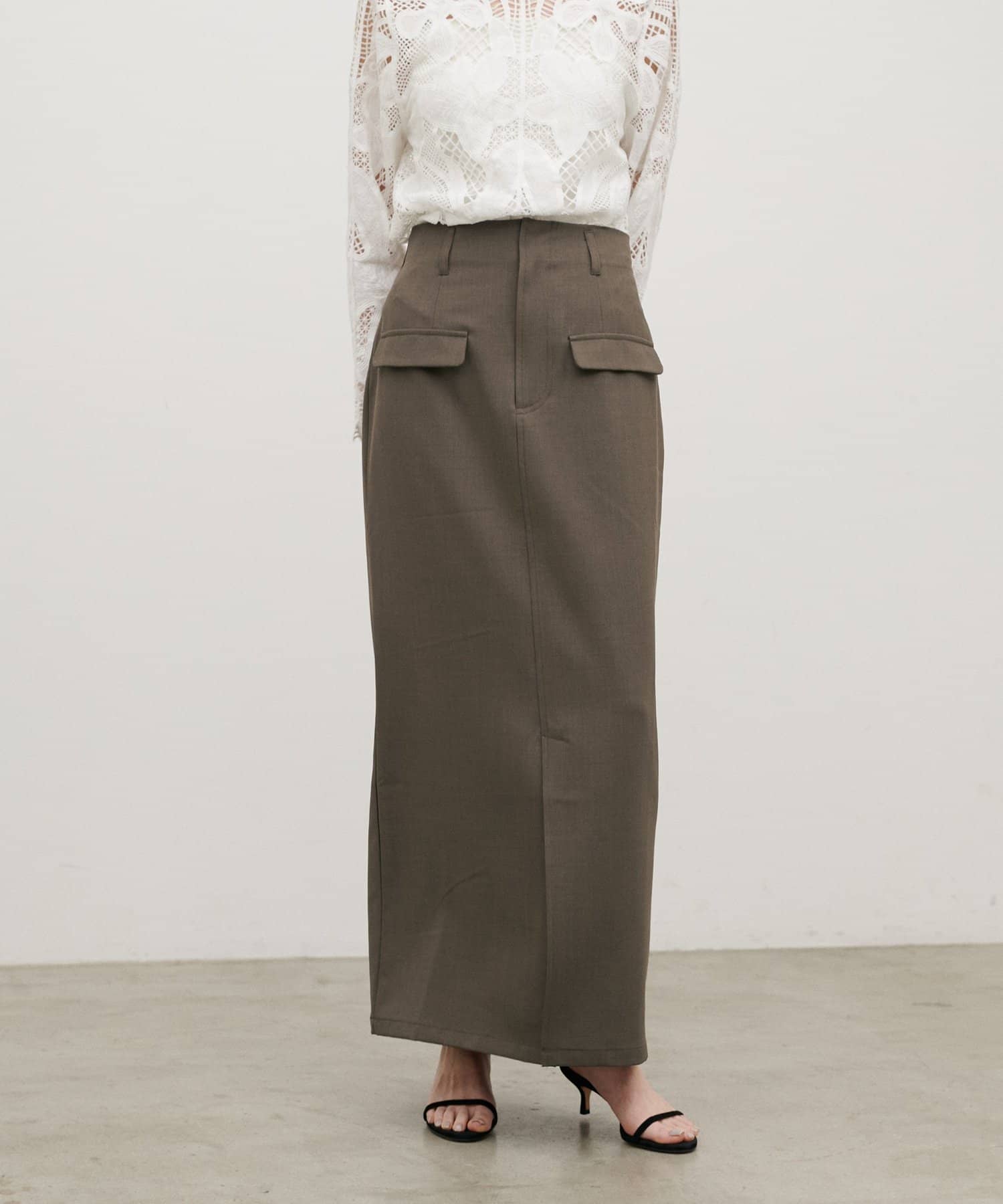 サイドのフラップデザインがアクセントになったIラインスカート。