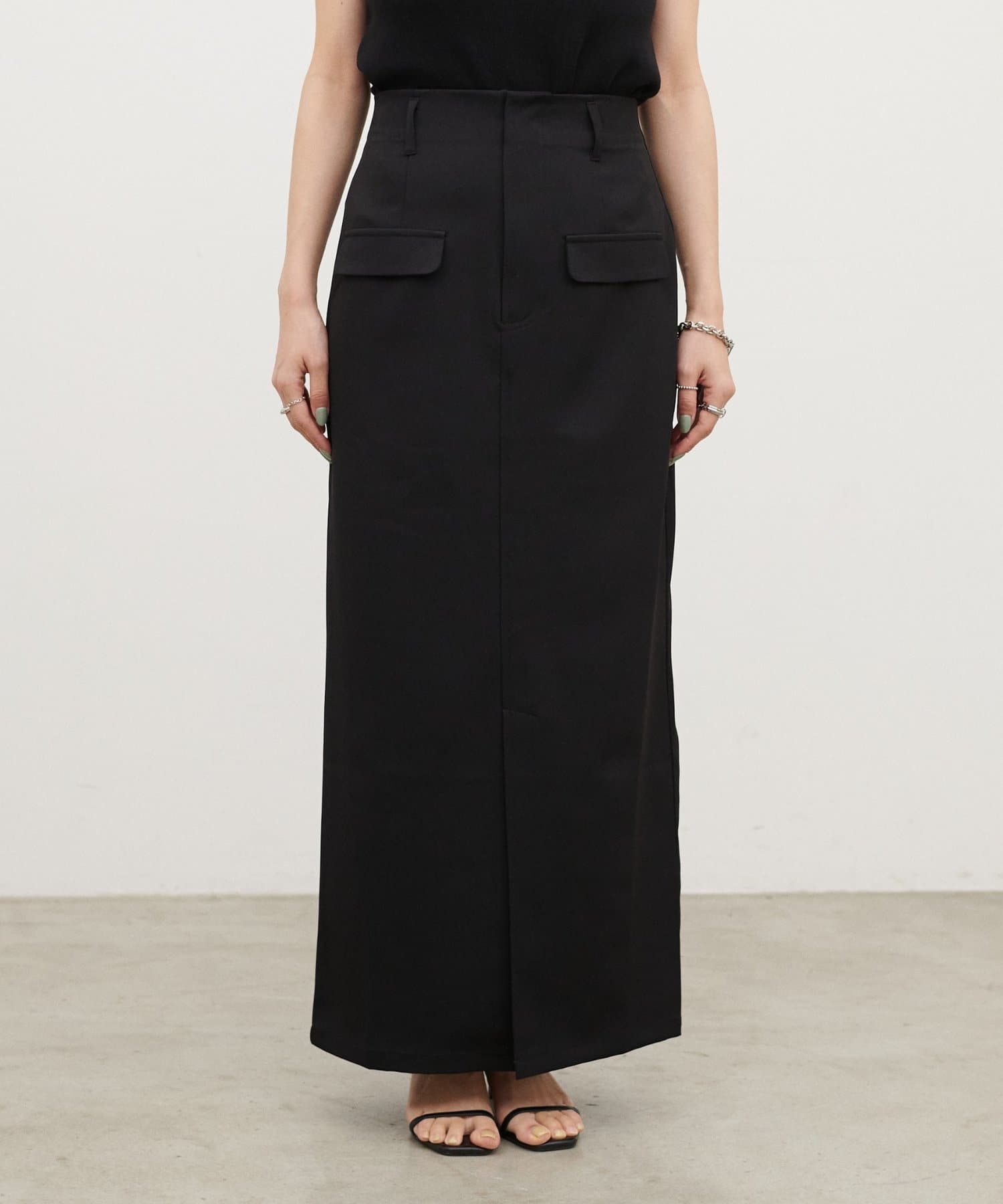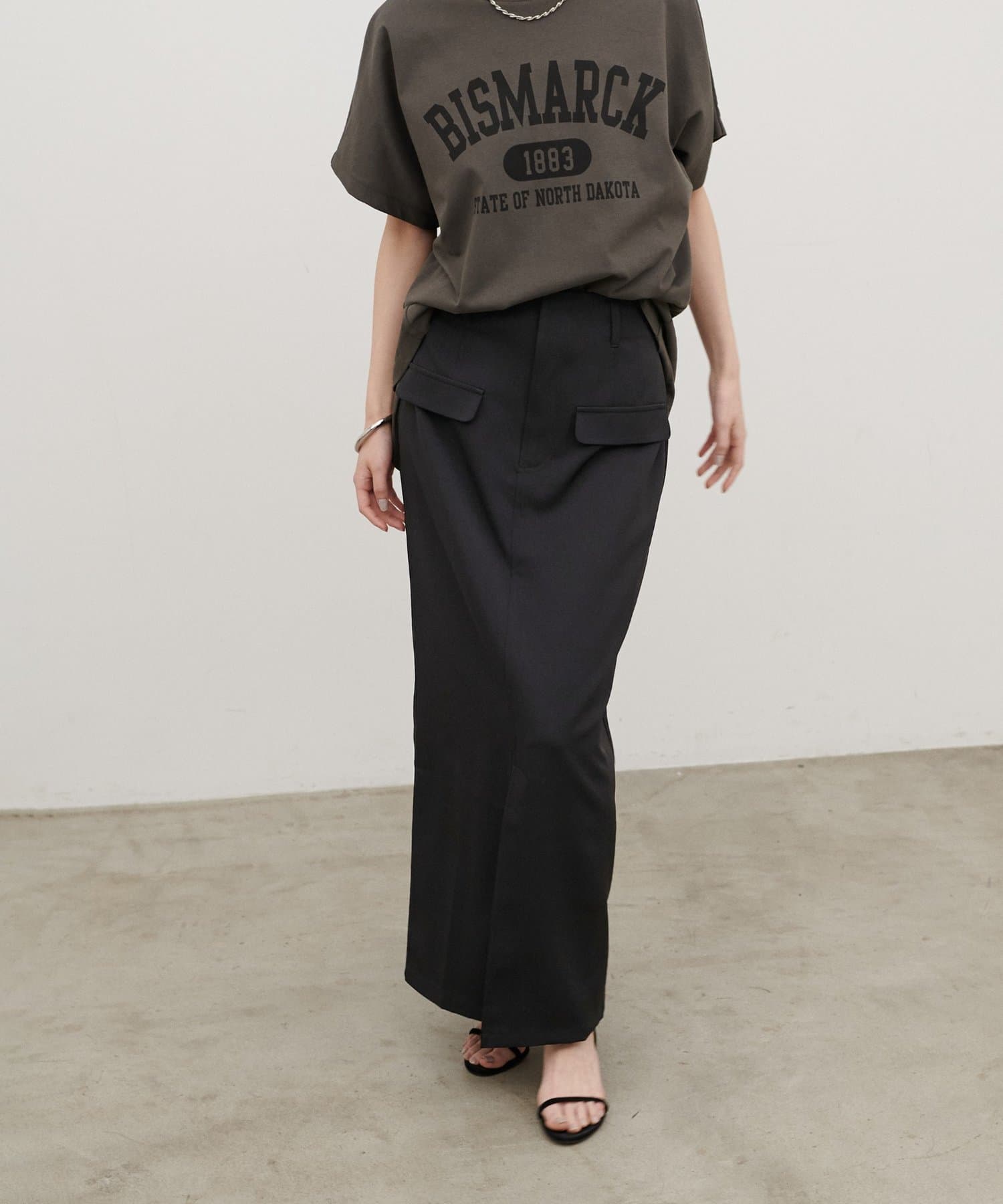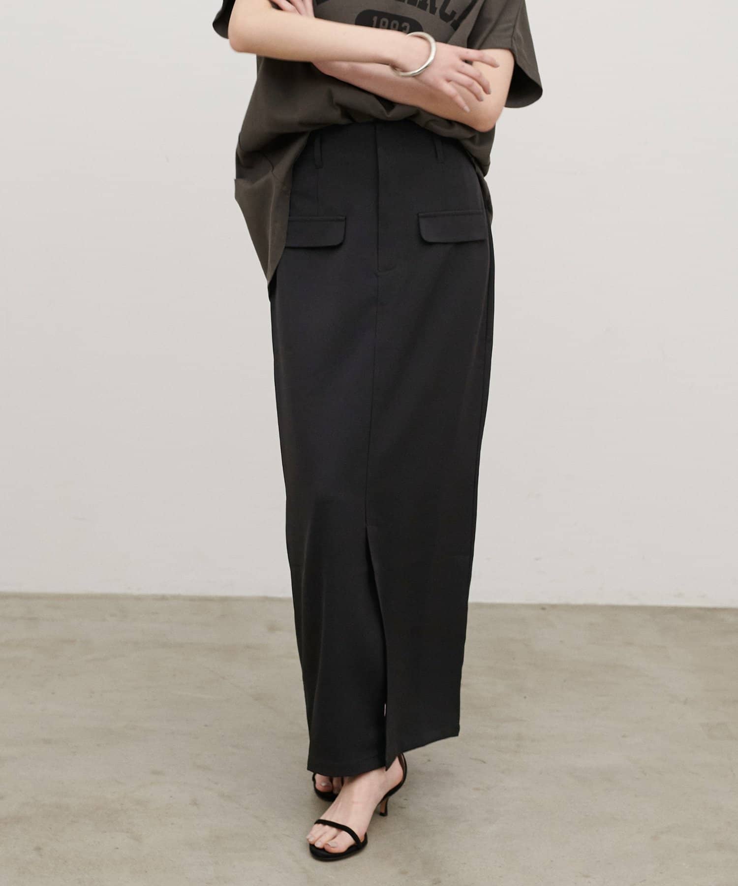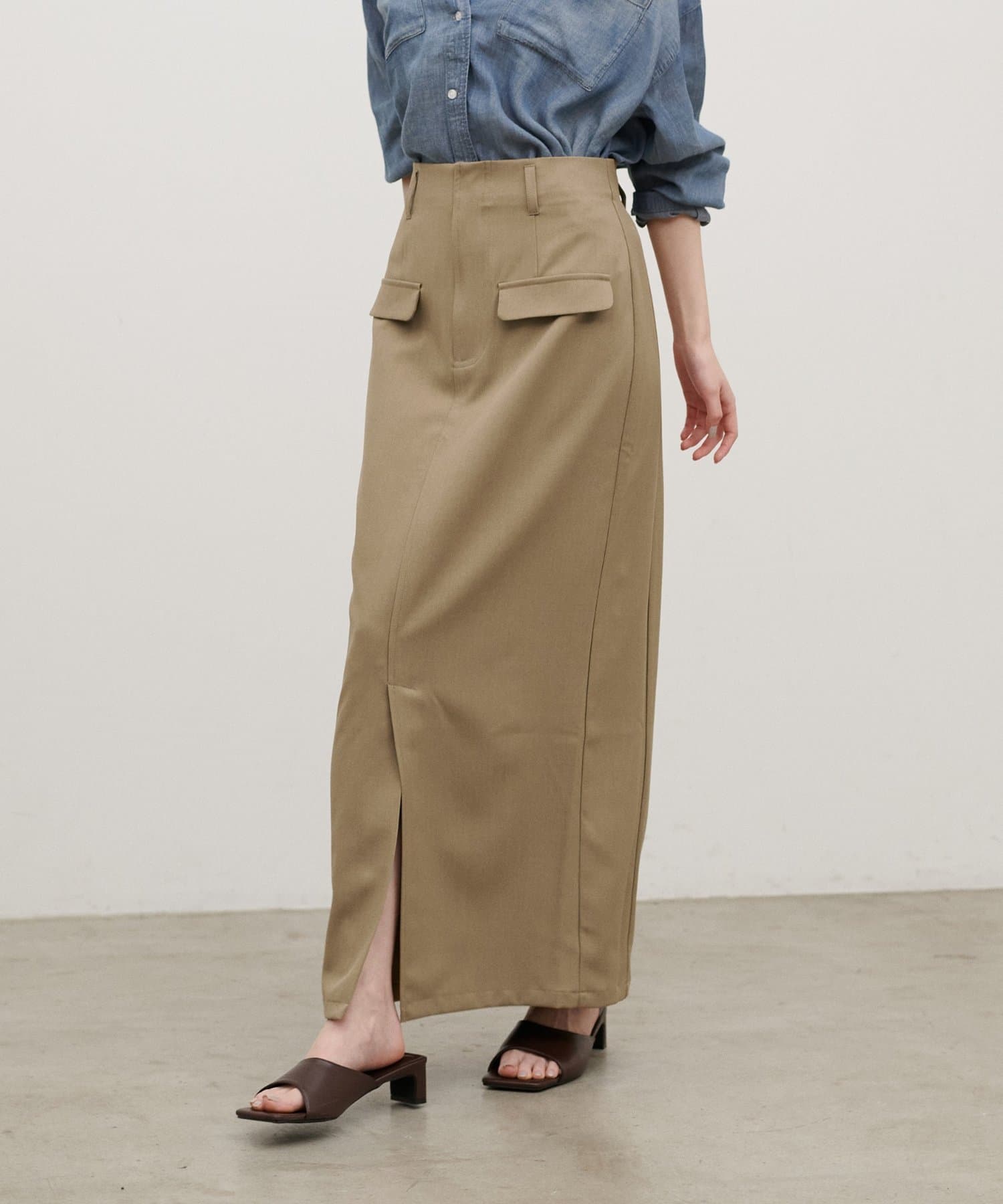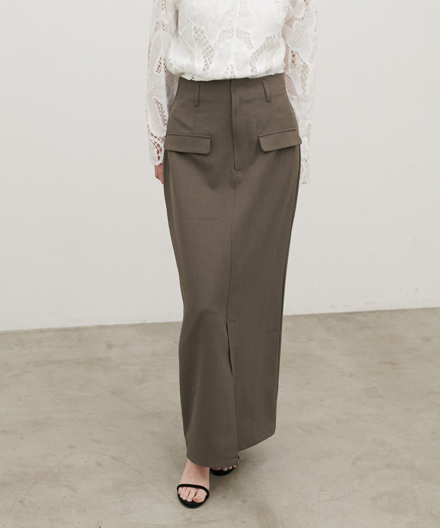 サイドのフラップデザインがアクセントになったIラインスカート。