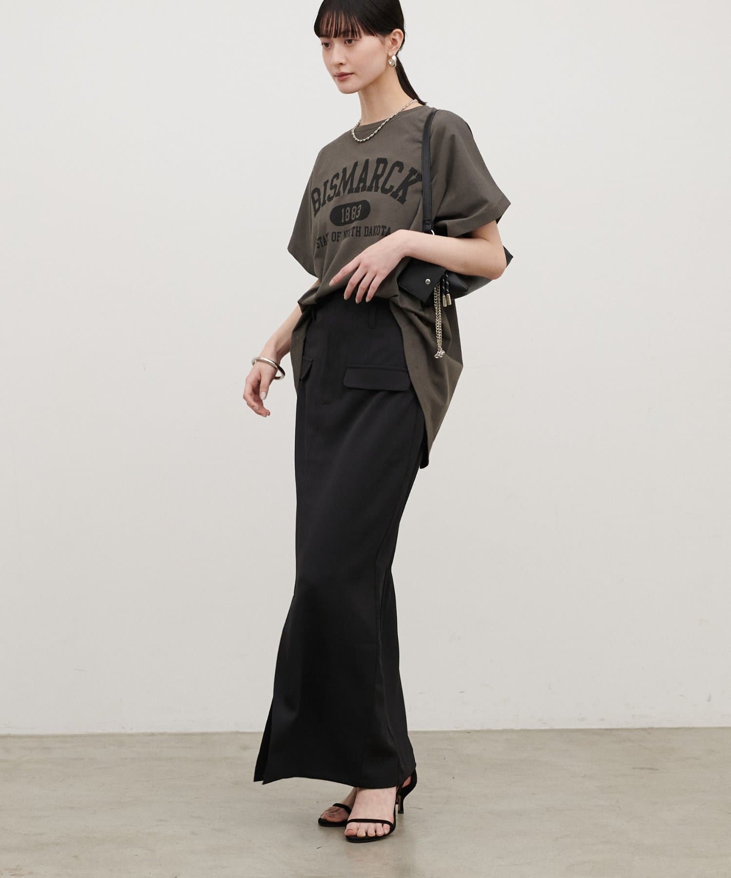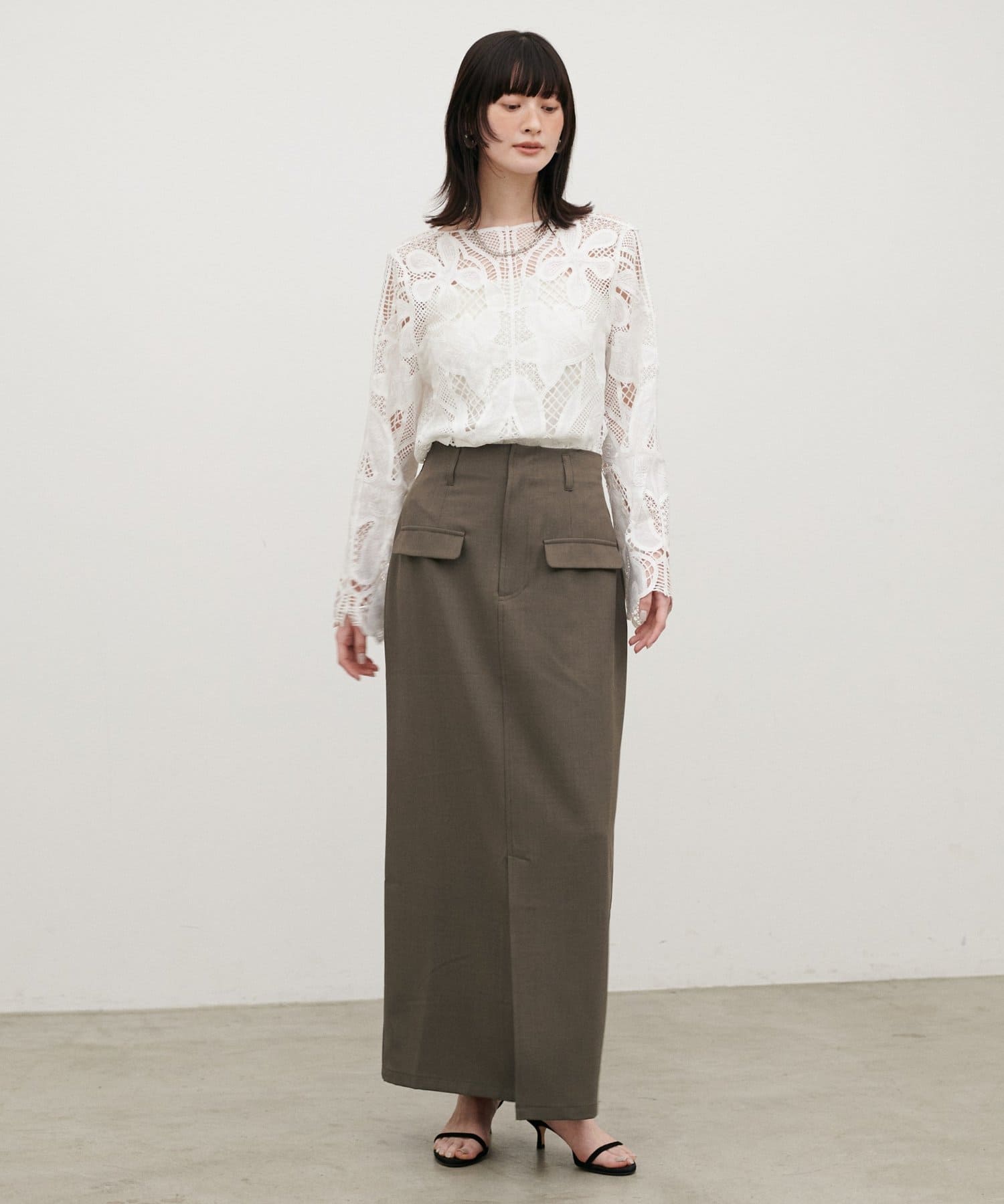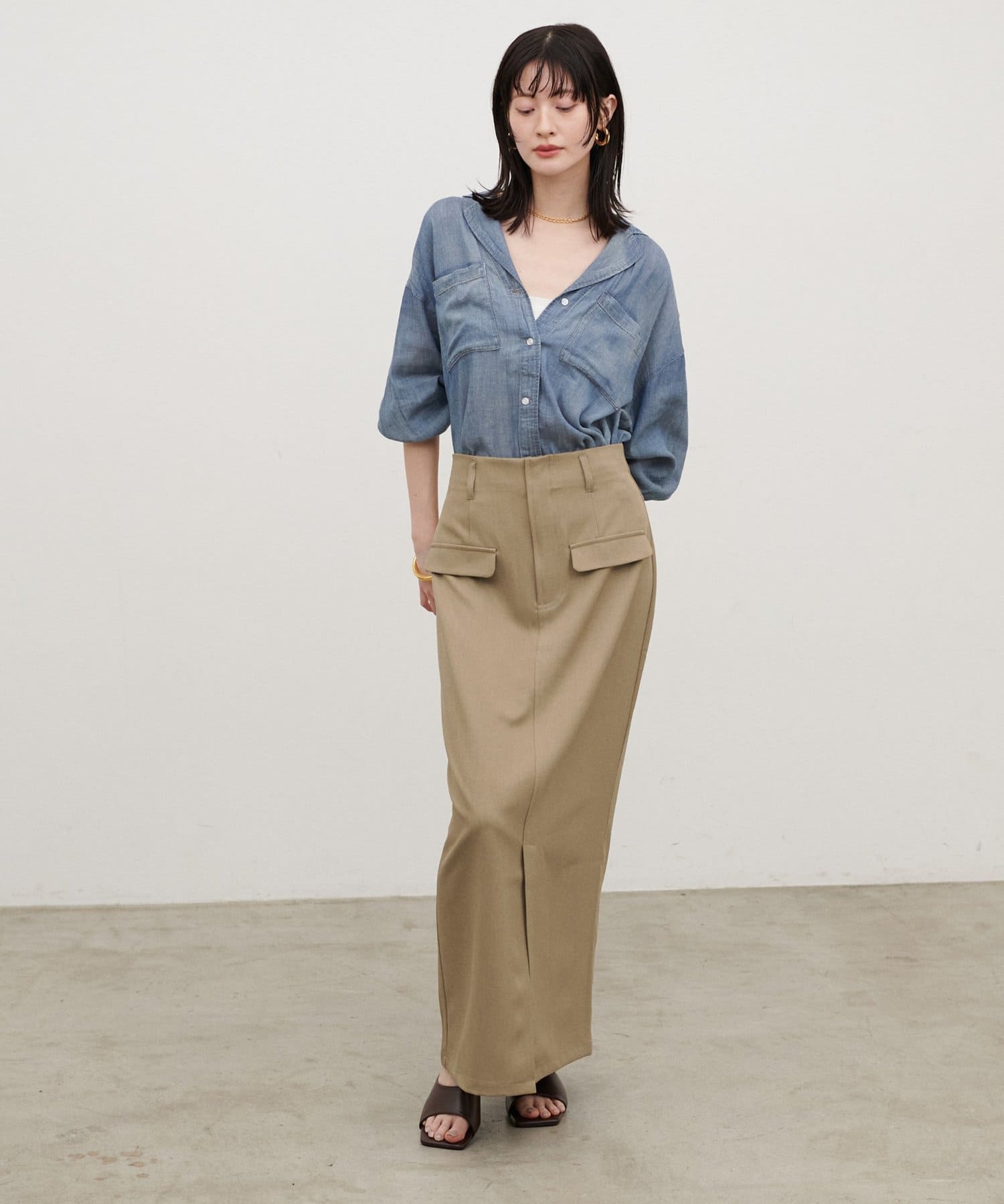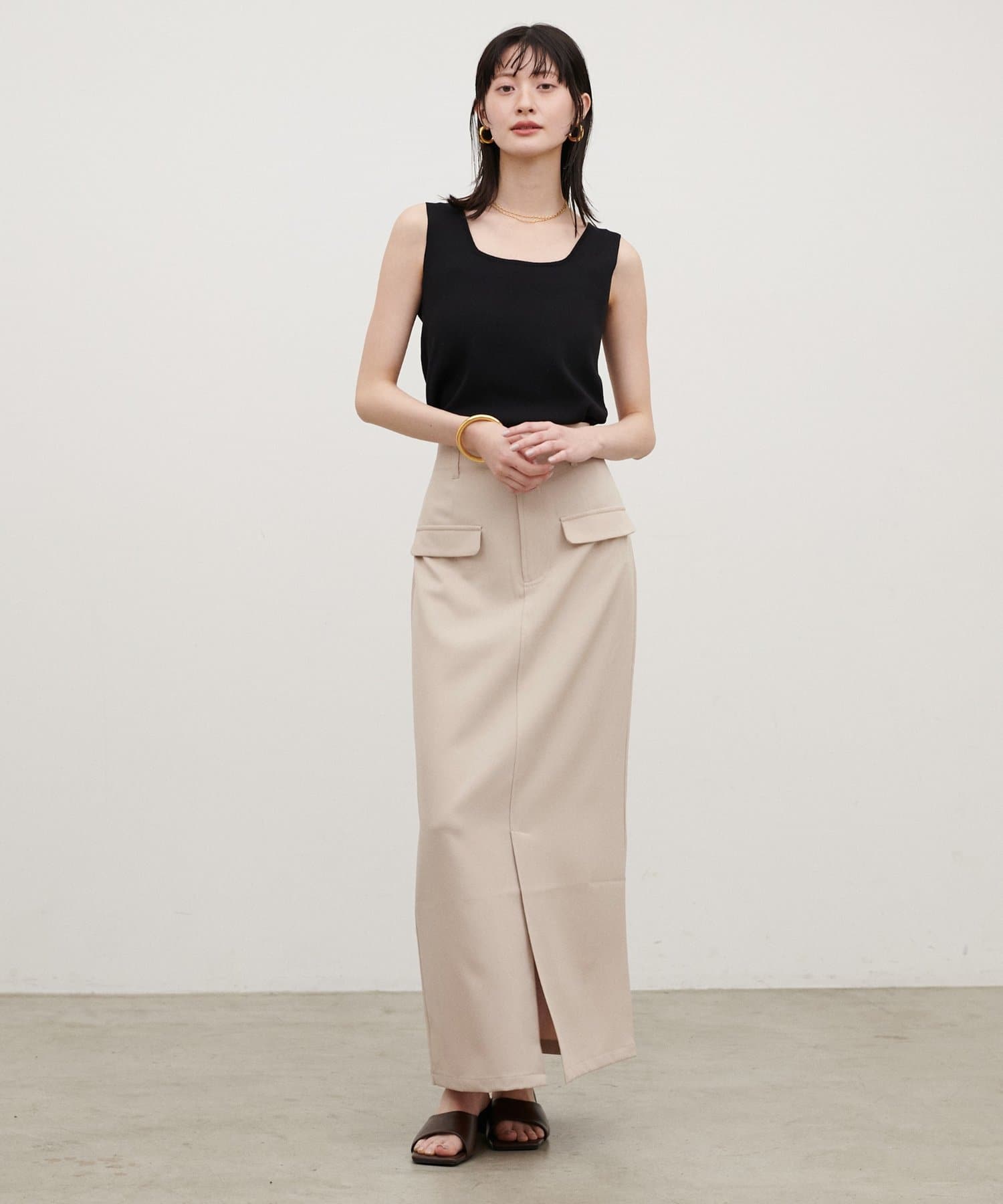 サイドのフラップデザインがアクセントになったIラインスカート。