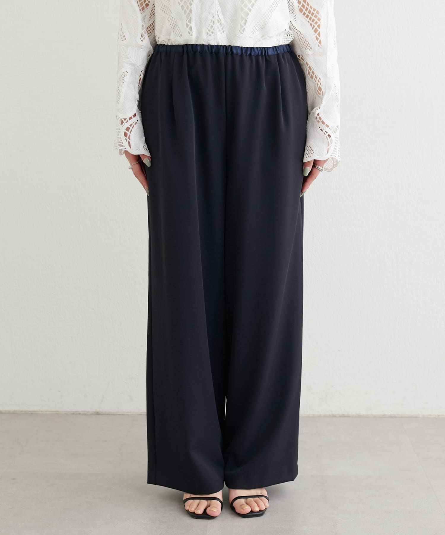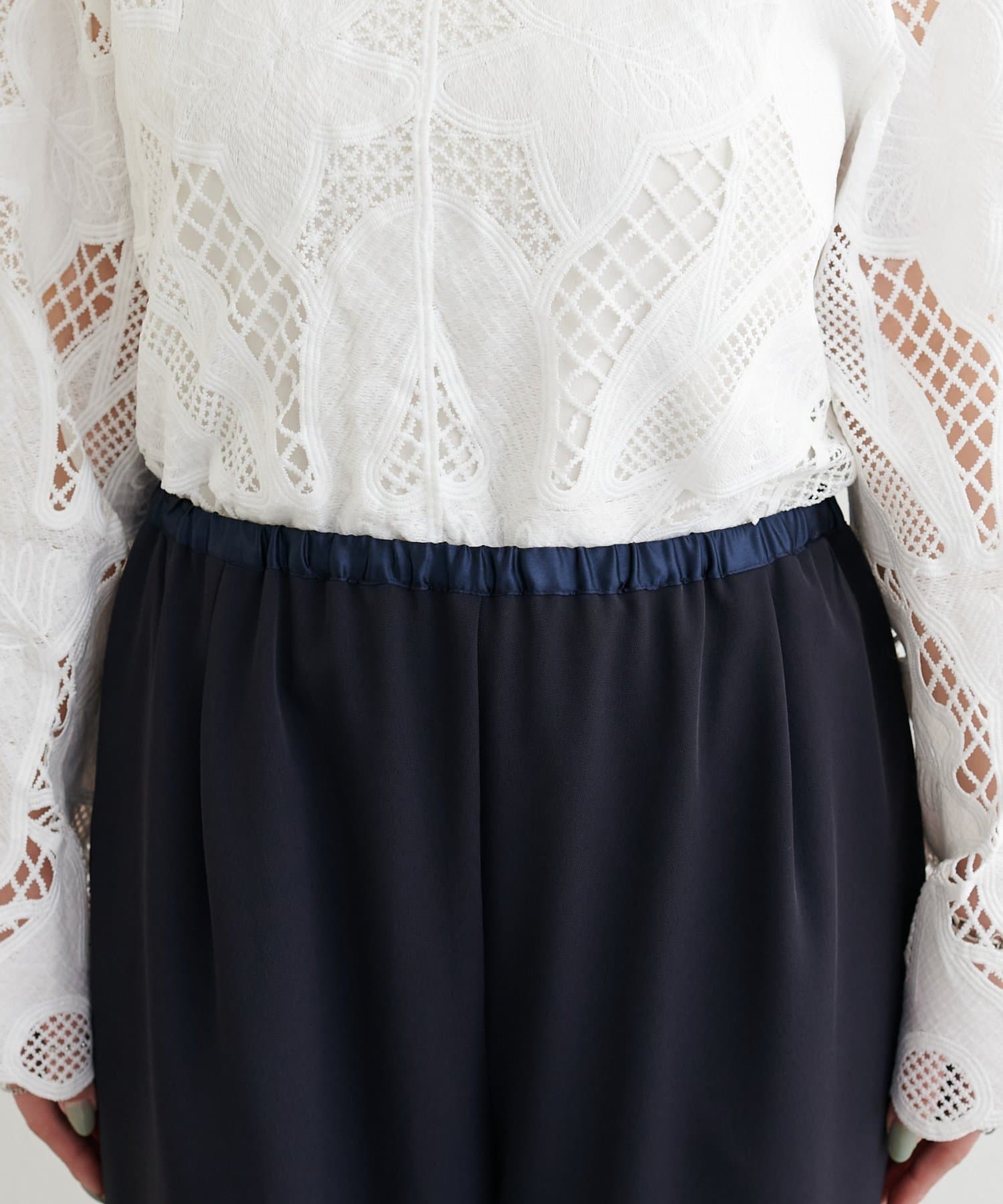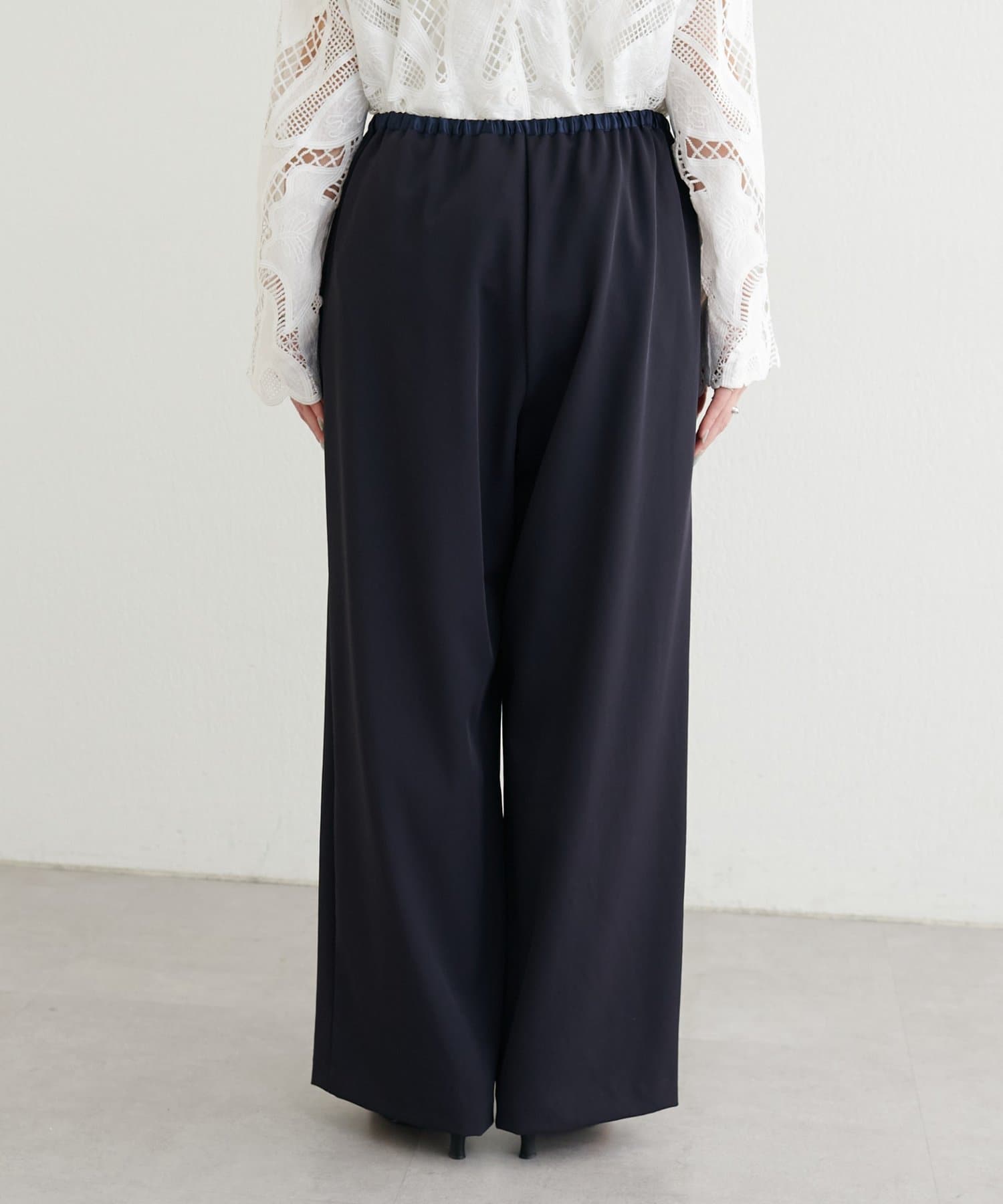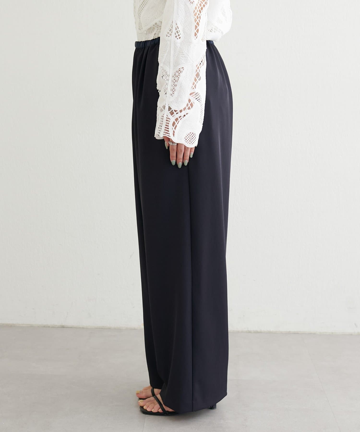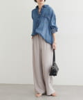 ウエストはゴム仕様でリラックス感がありながら、ストンと落ちるラインですっきりとした印象に仕上げました。
