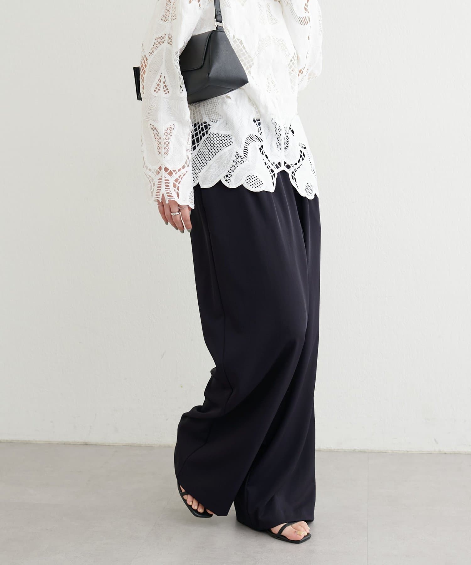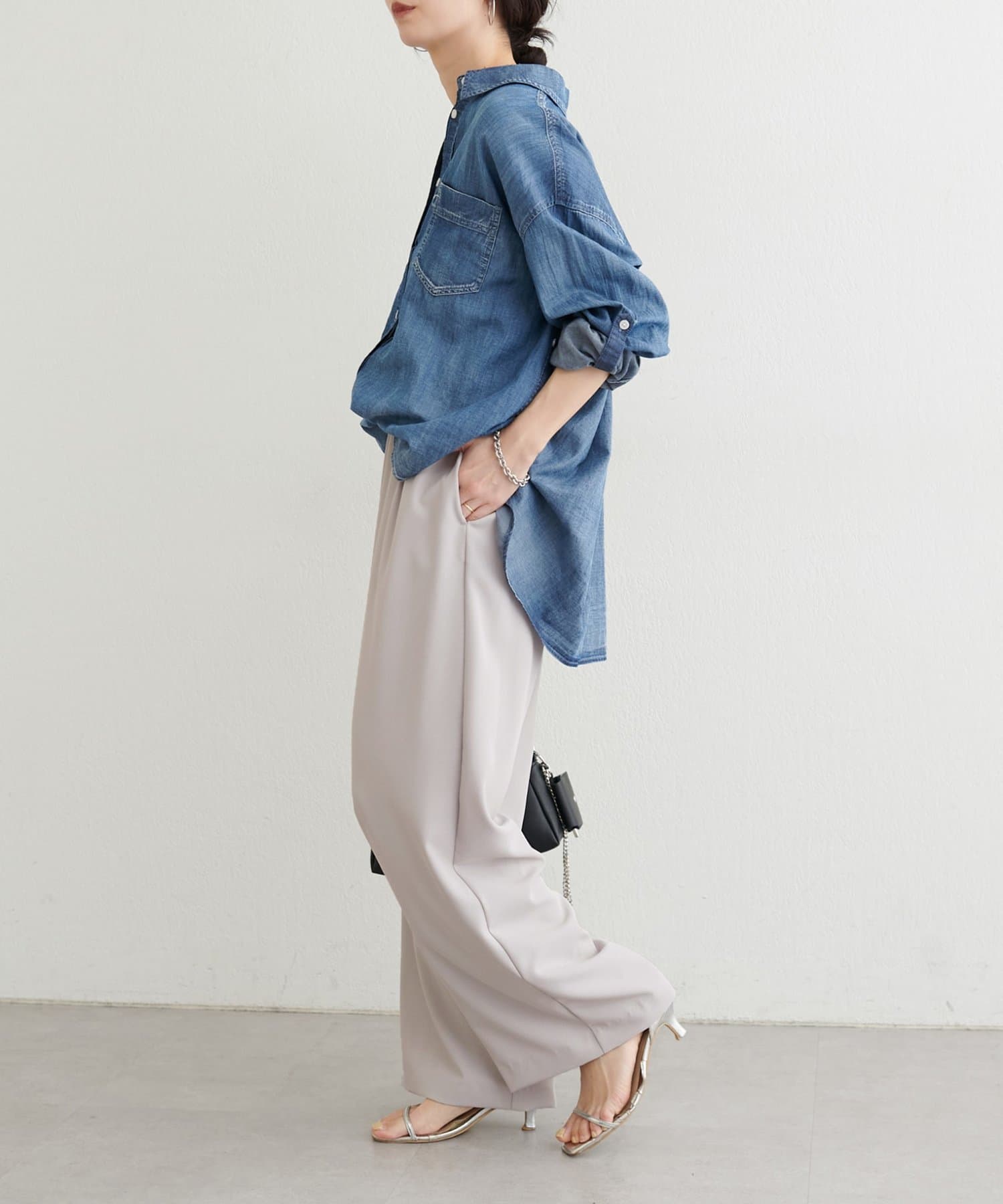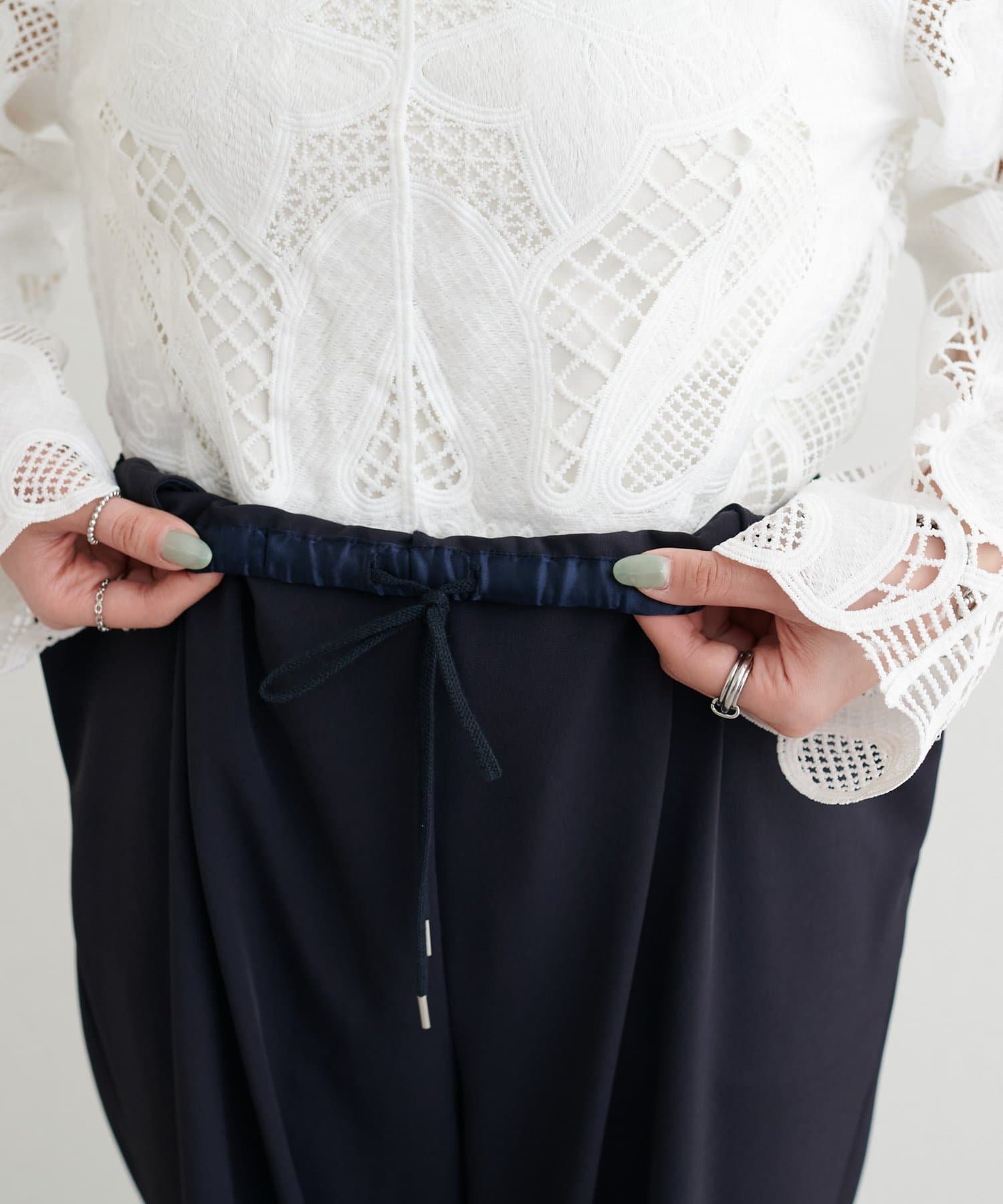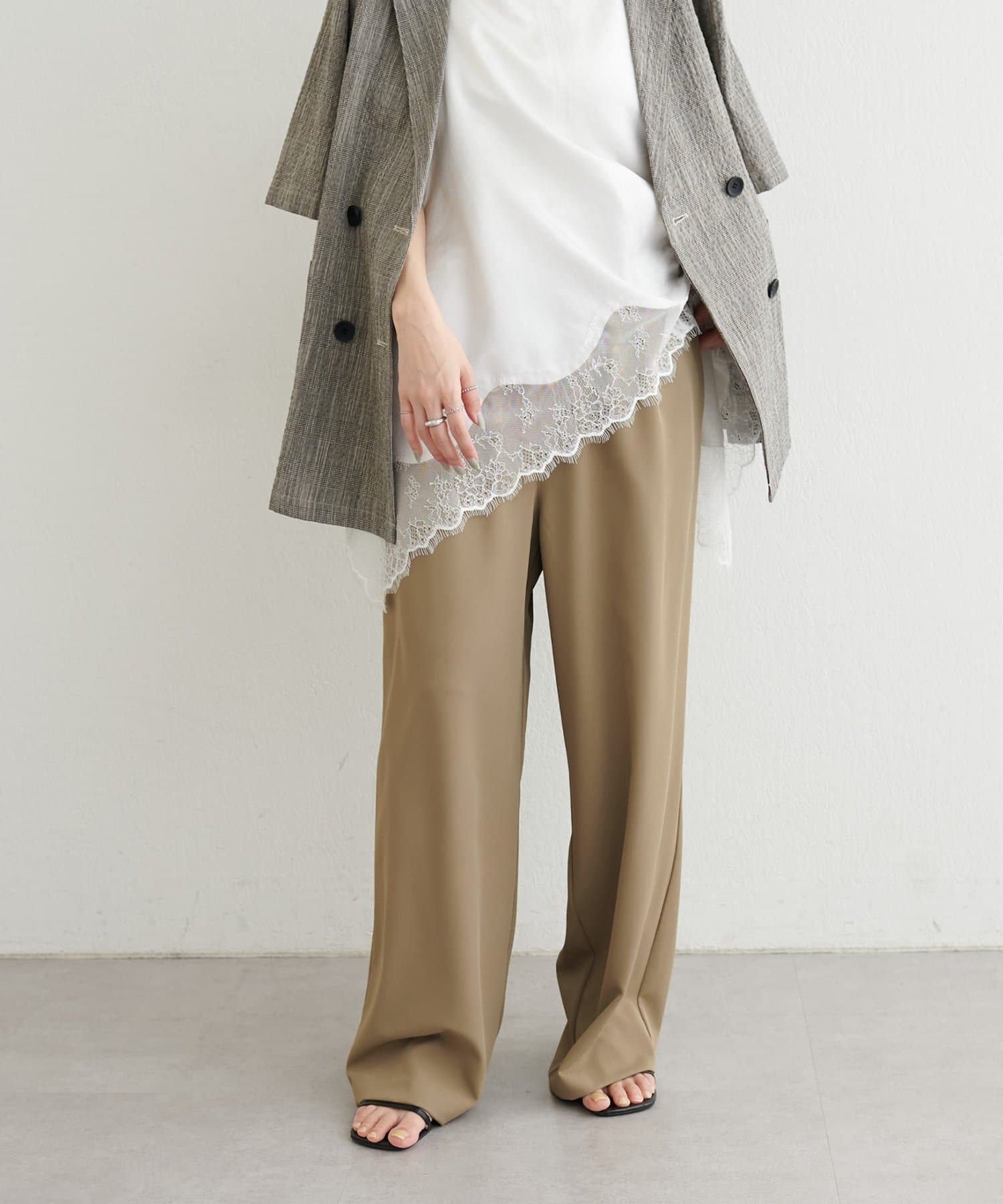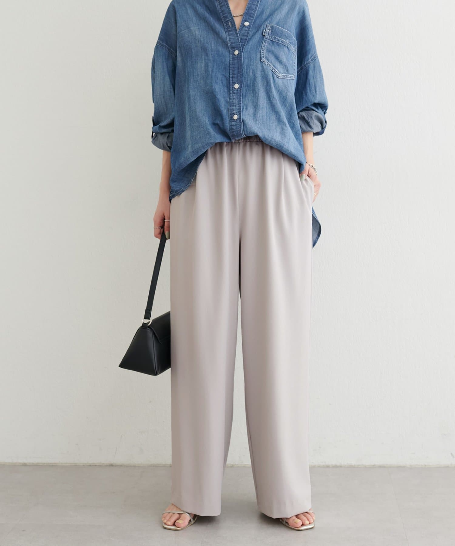 ウエストはゴム仕様でリラックス感がありながら、ストンと落ちるラインですっきりとした印象に仕上げました。