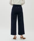 腰回りはすっきり、裾に向かってまっすぐ落ちるラインで脚がきれいに見えるバランスに仕上げました。