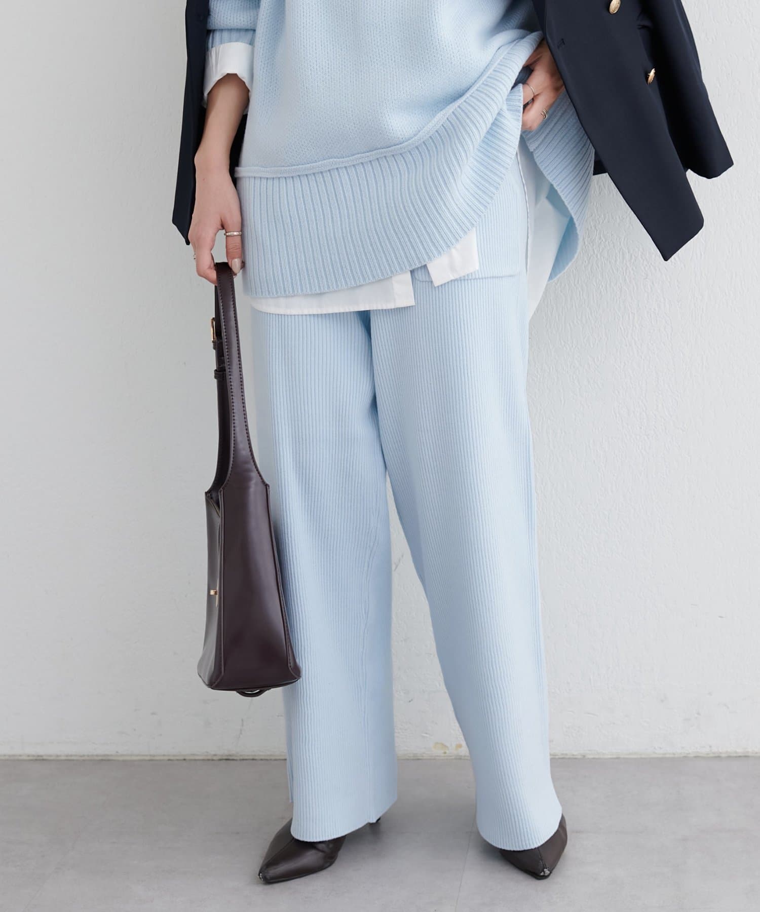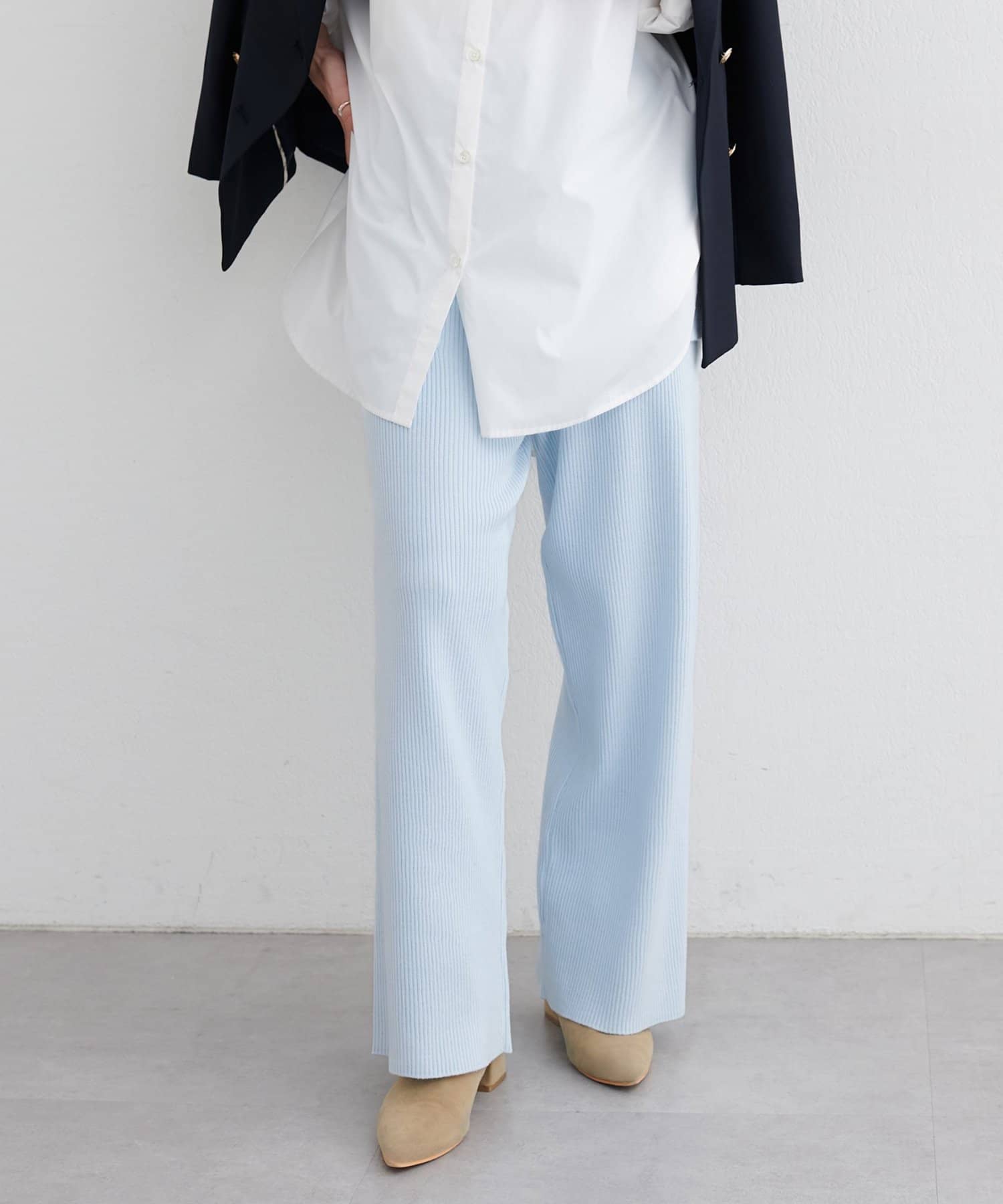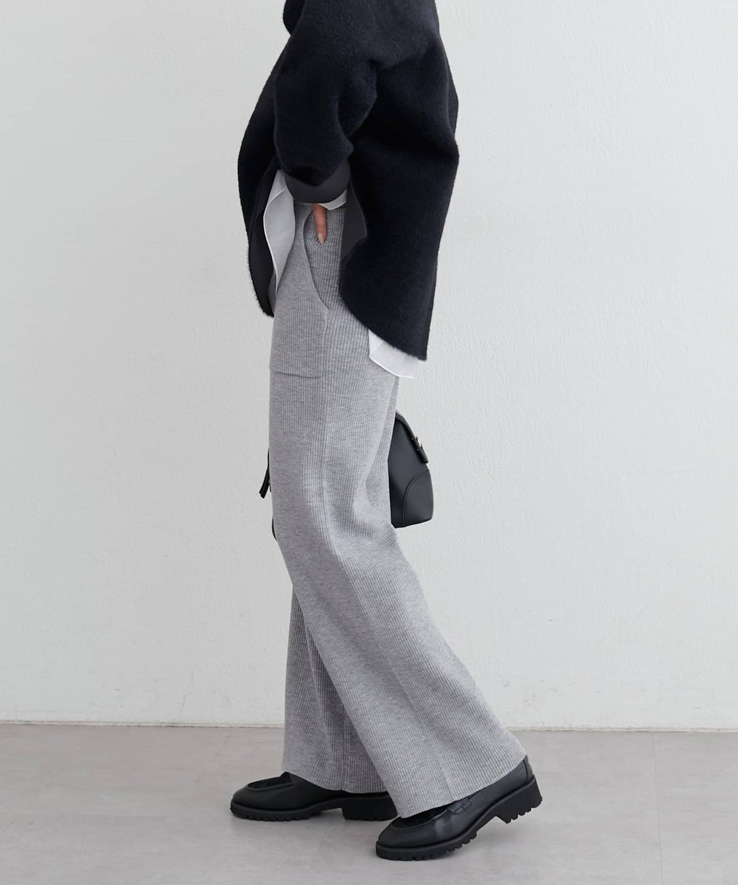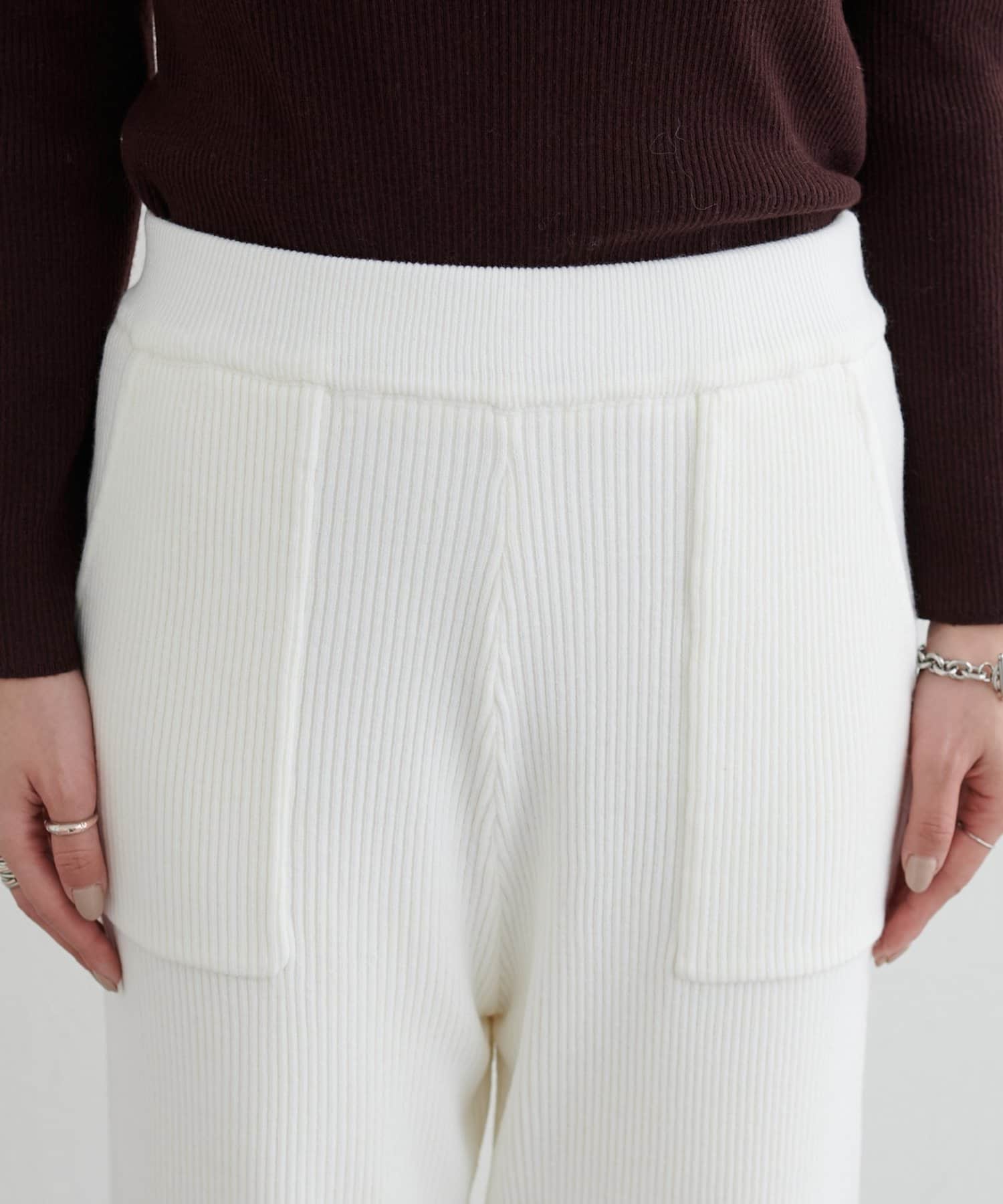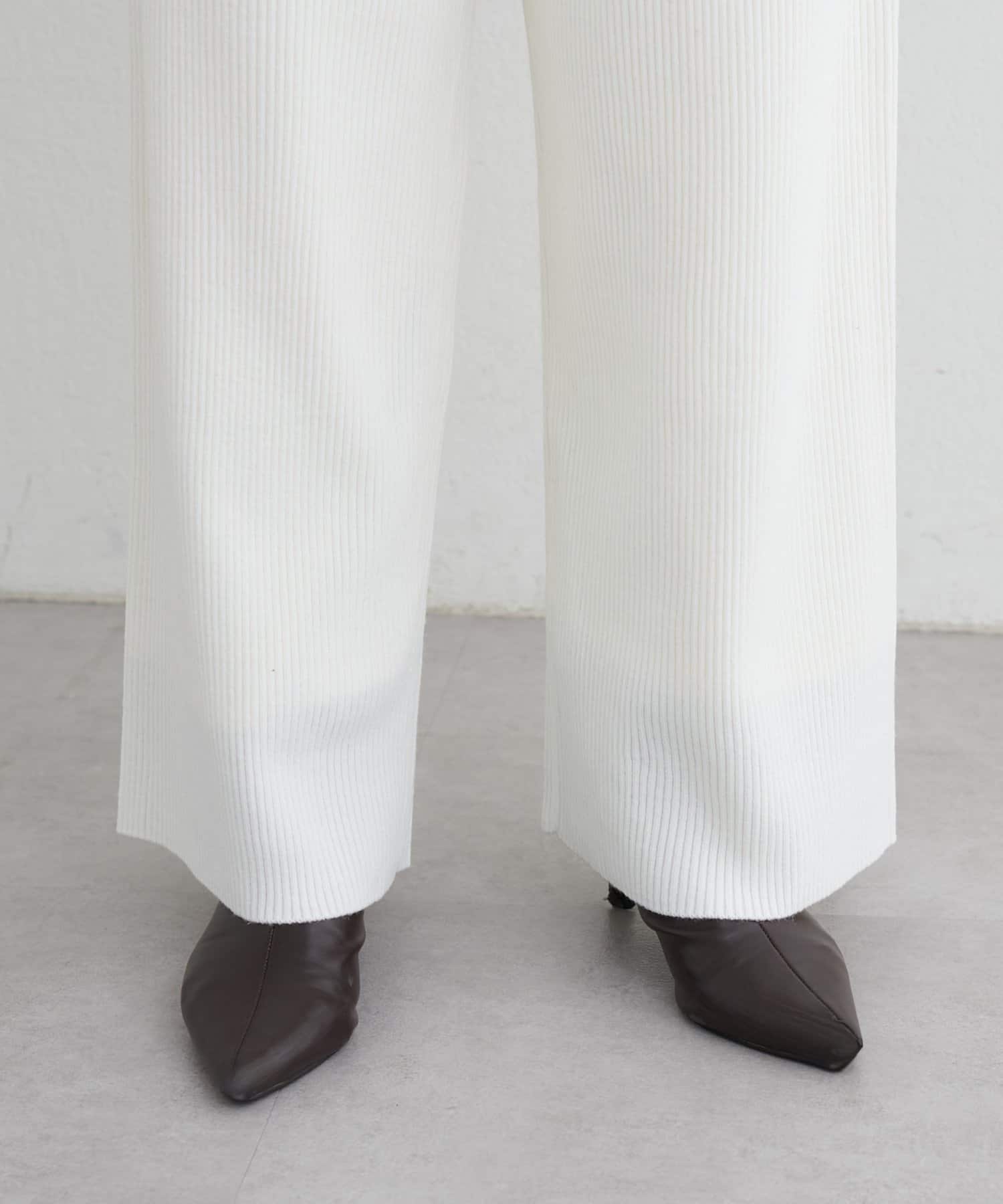 カシミアのような柔らかさと伸縮性を併せ持つ、ストレスフリーなリブニットパンツ。