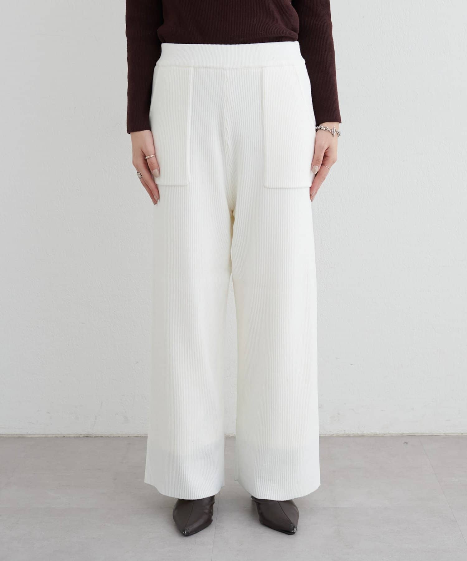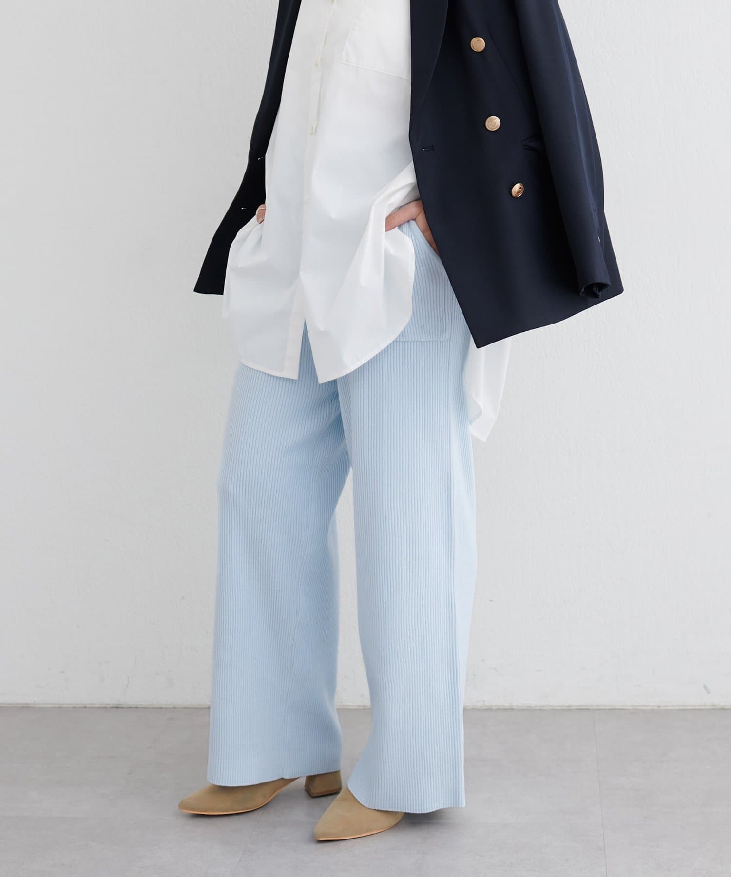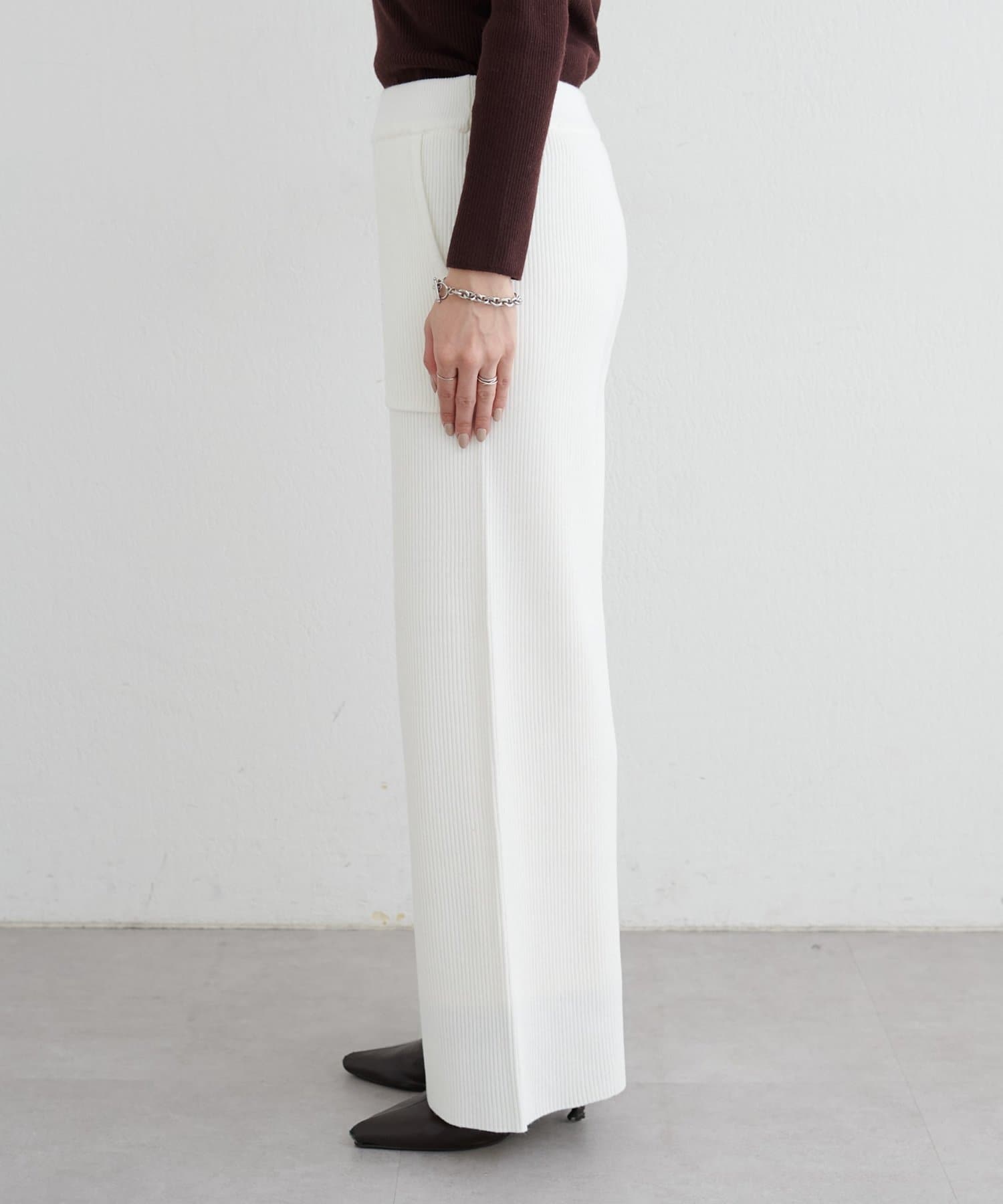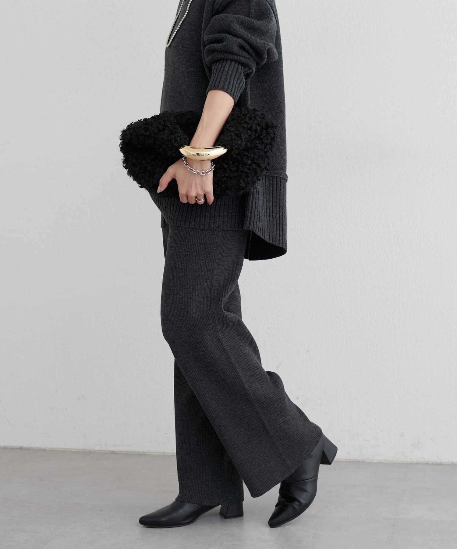 カシミアのような柔らかさと伸縮性を併せ持つ、ストレスフリーなリブニットパンツ。