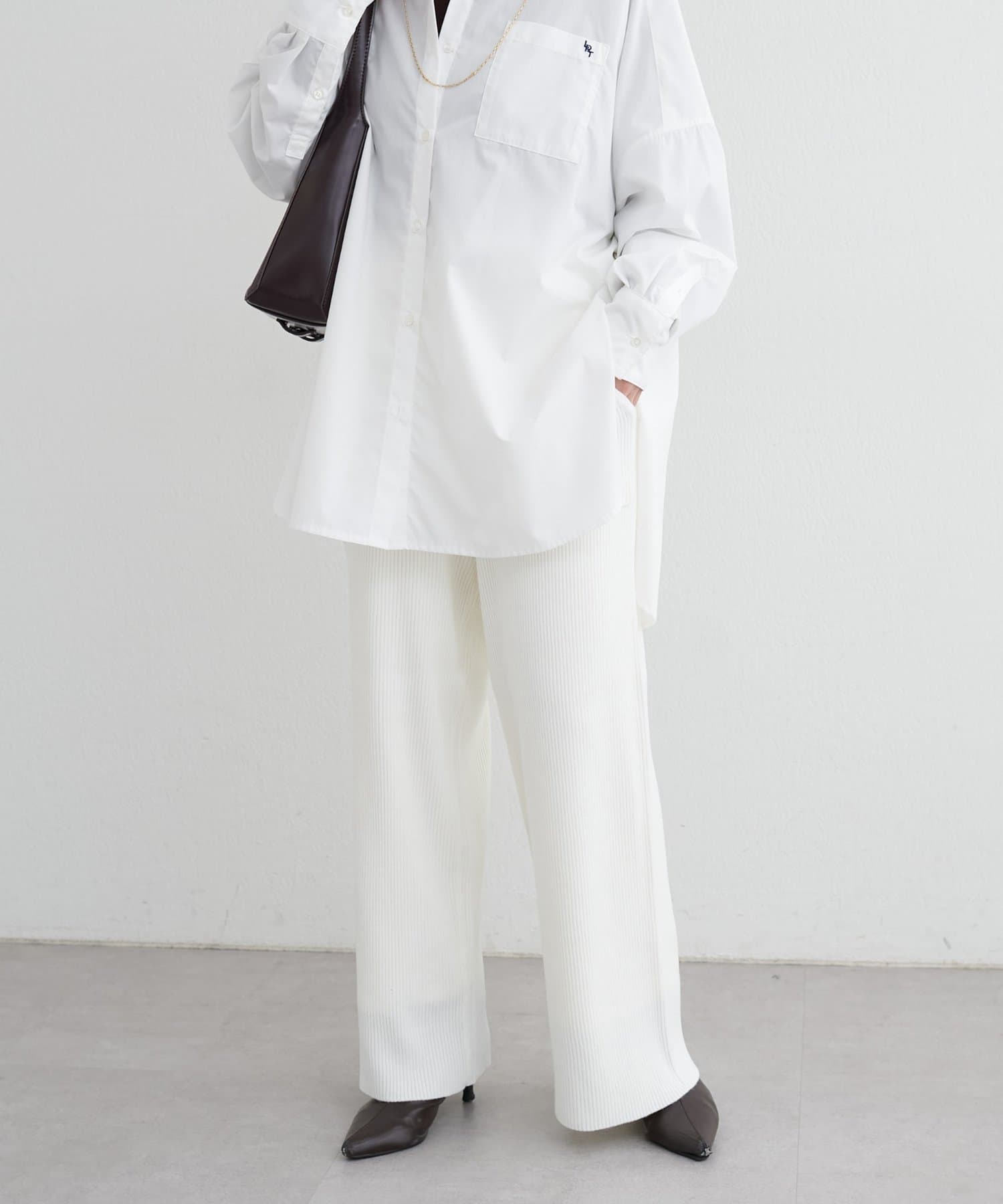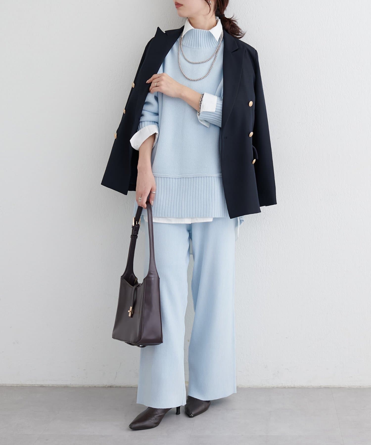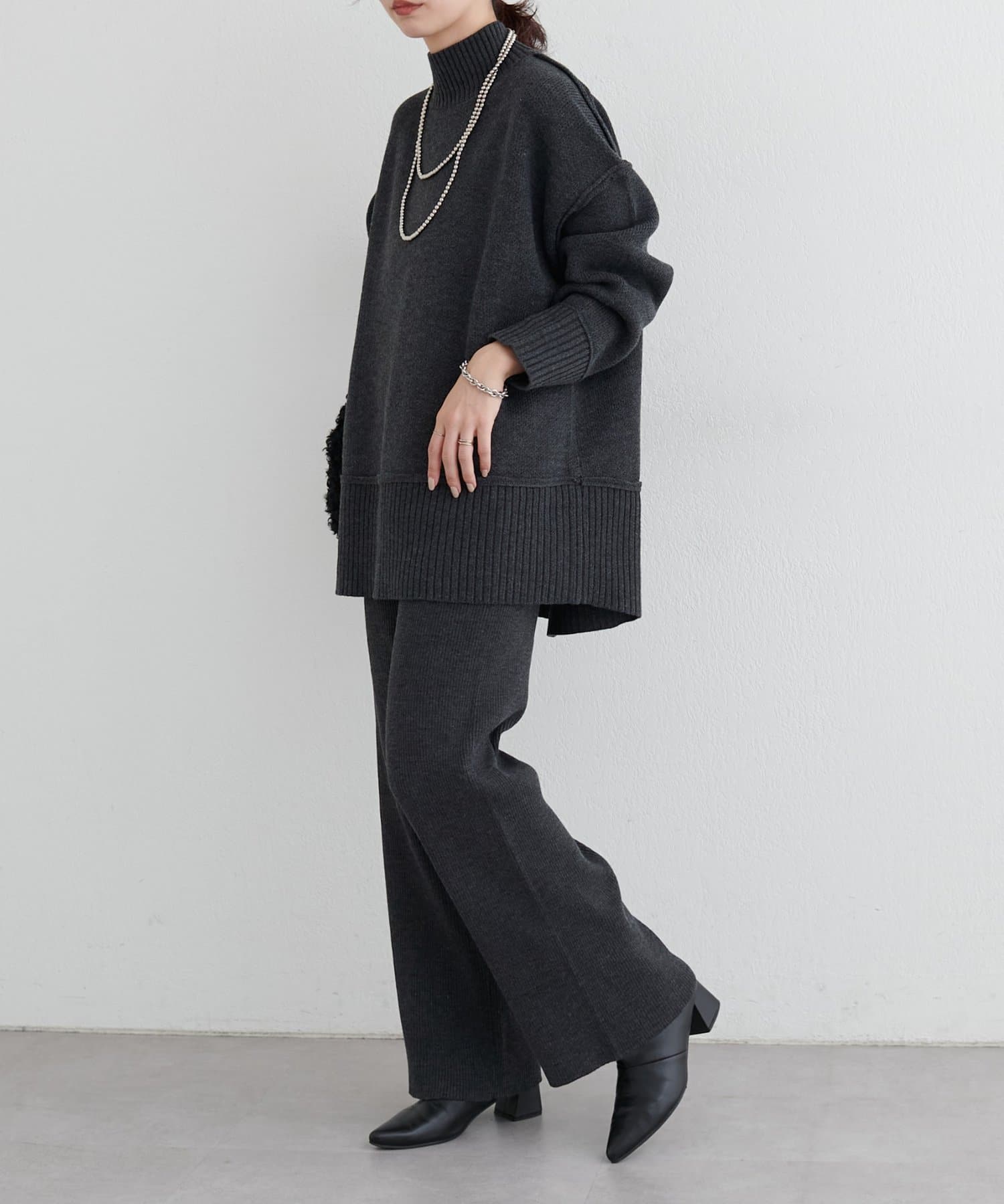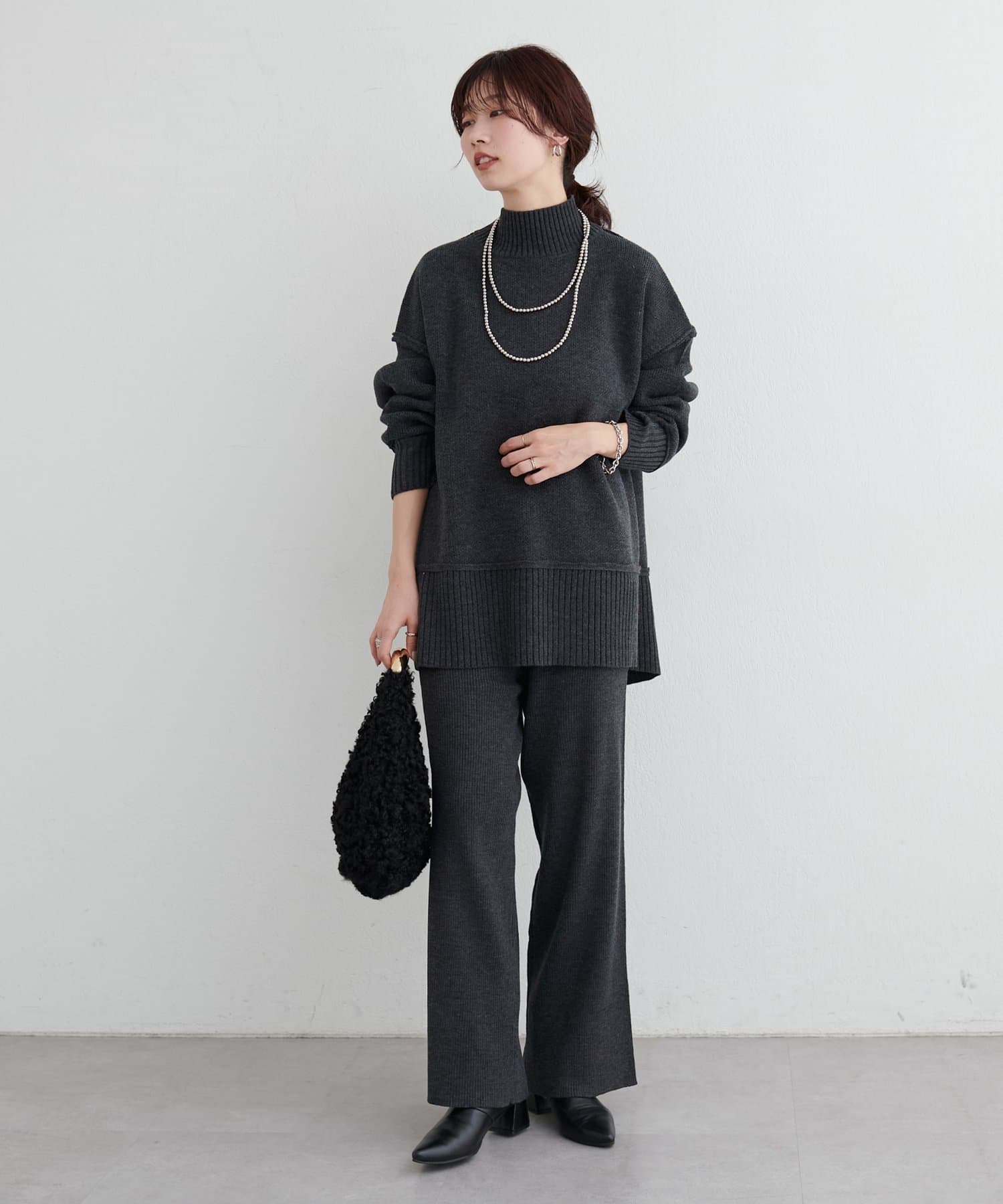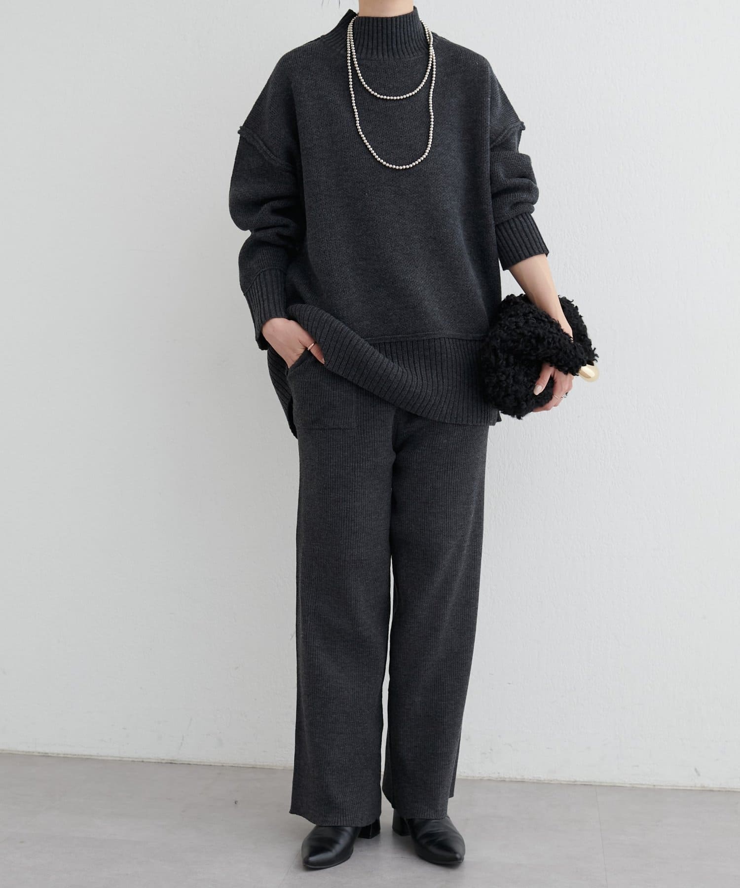カシミアのような柔らかさと伸縮性を併せ持つ、ストレスフリーなリブニットパンツ。