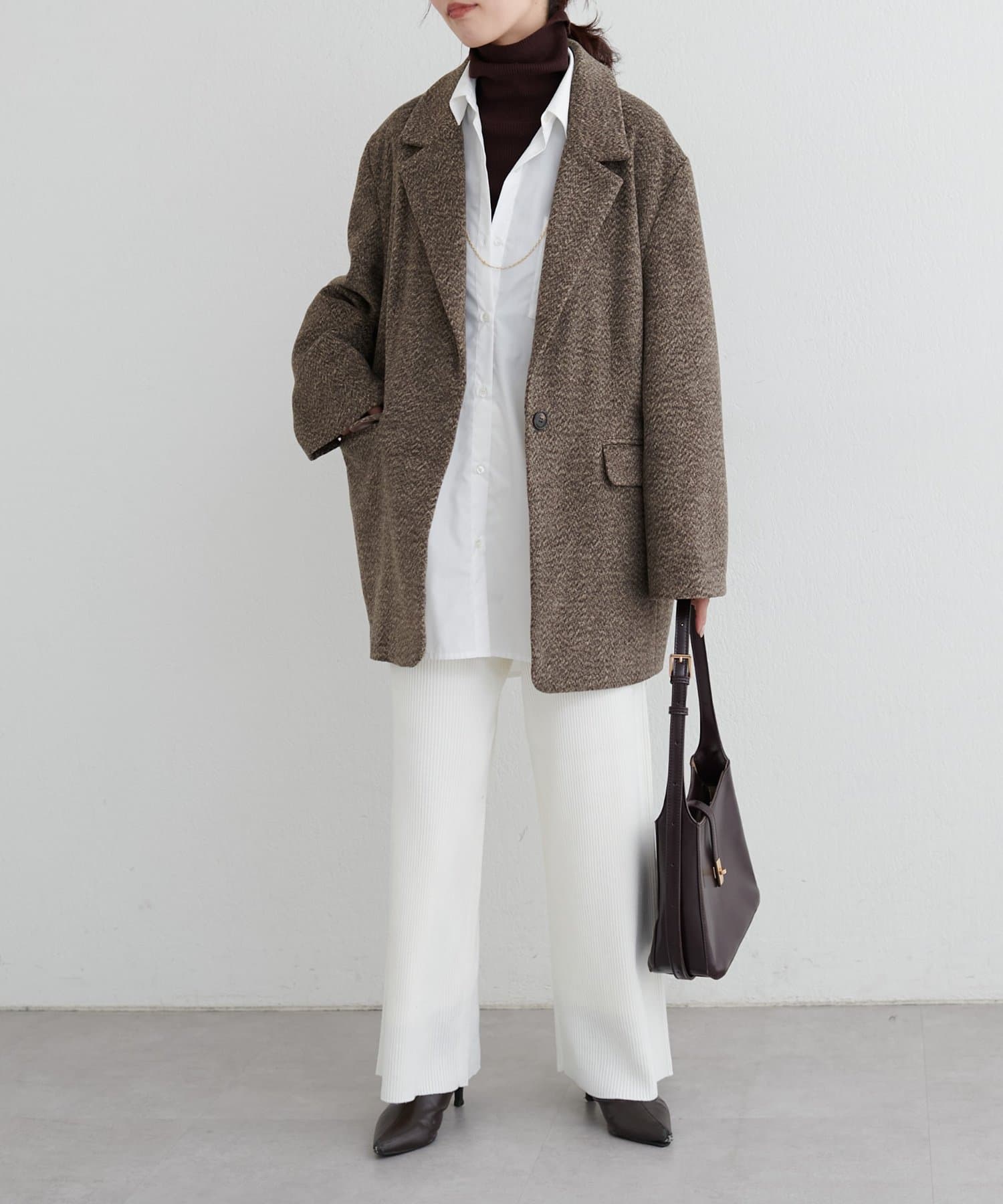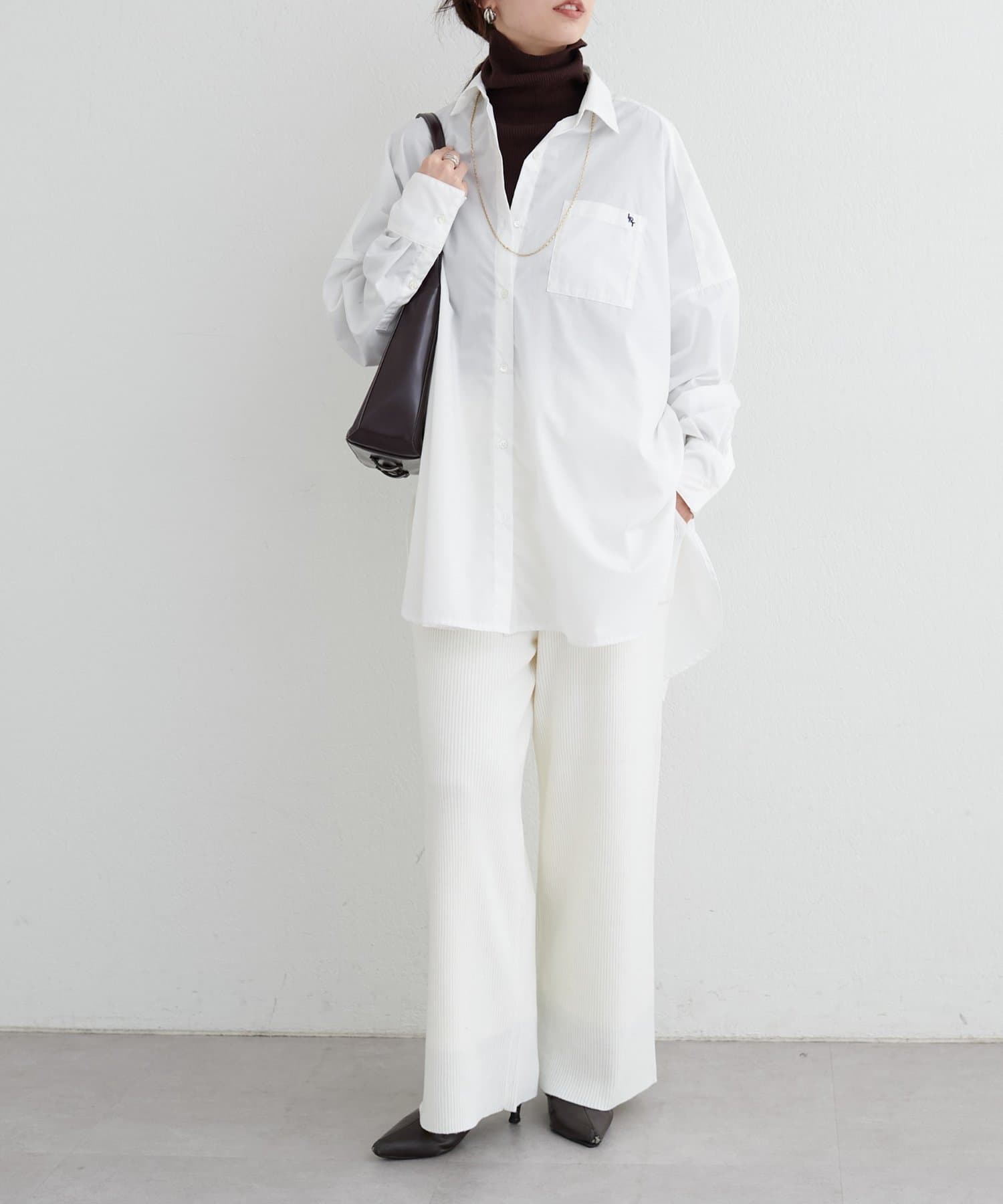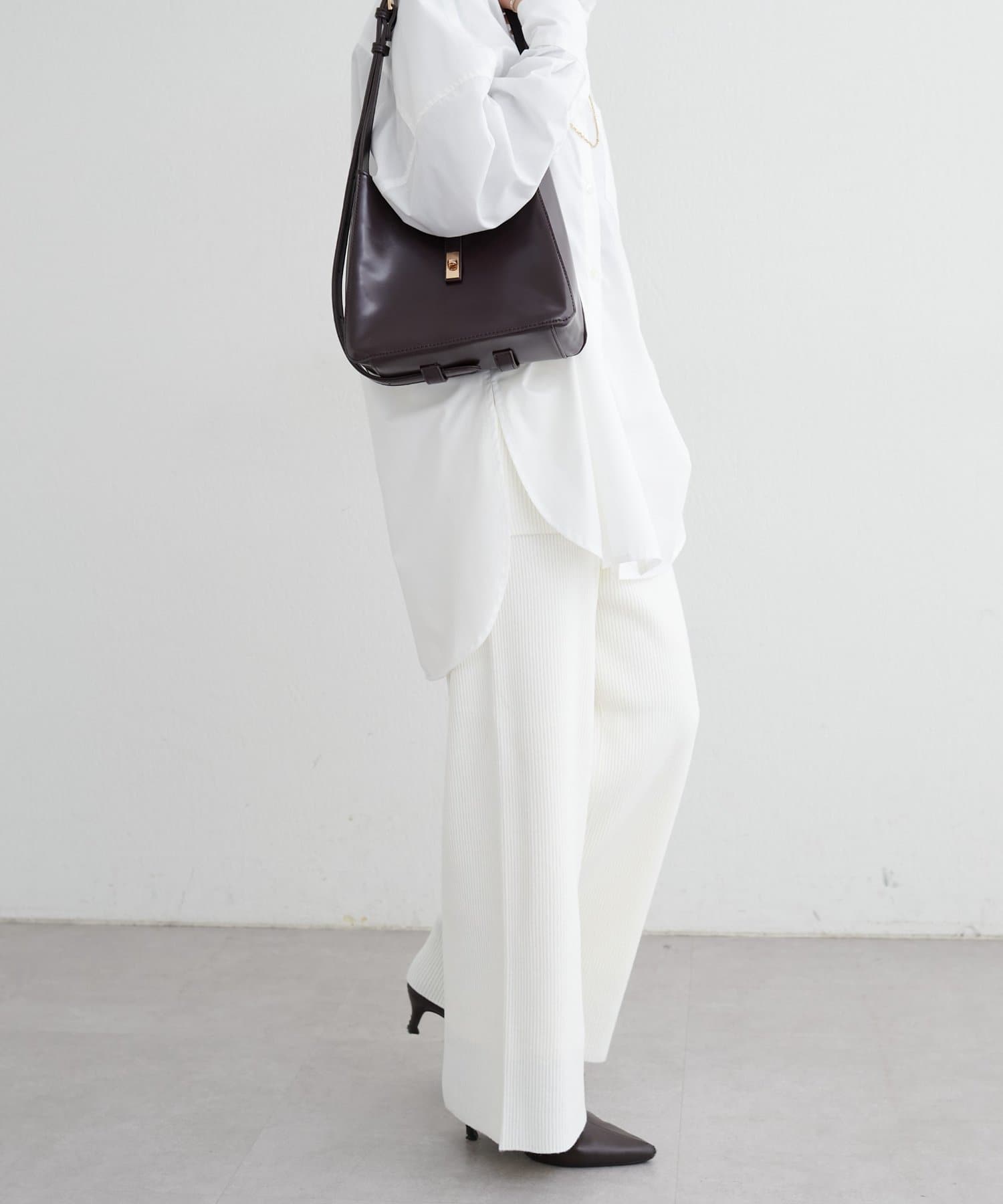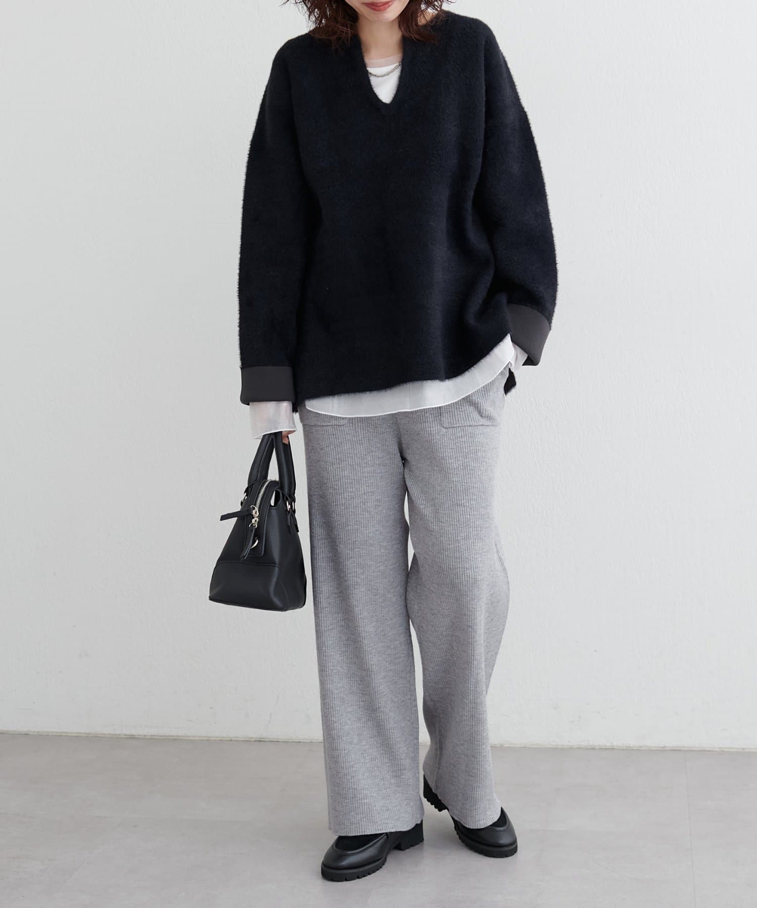 Vネックニットやコンパクトニットと合わせてすっきりまとめても◎。