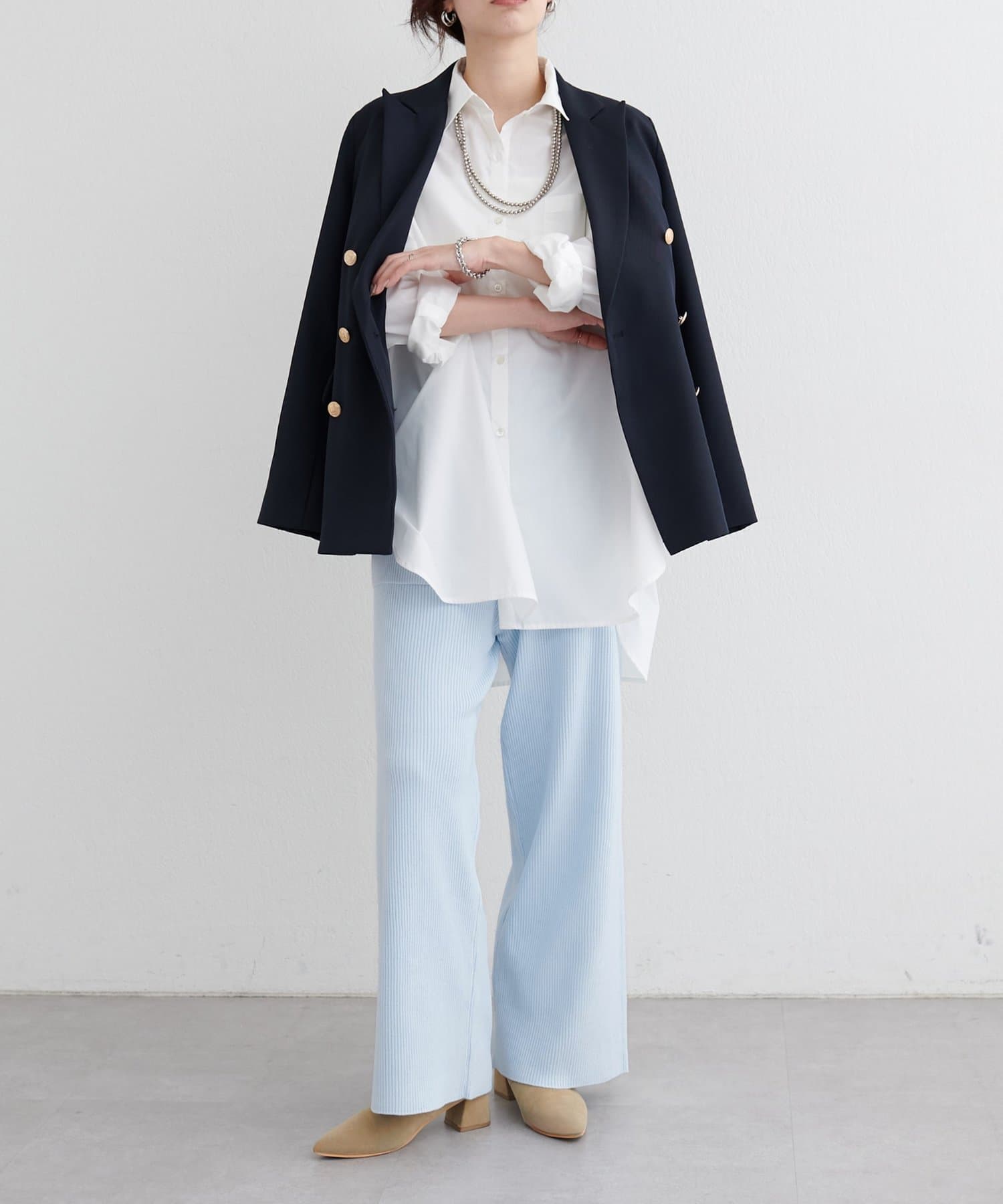 身体のラインを拾いにくい程よい太さで、美脚見えするシルエットに仕上げました。