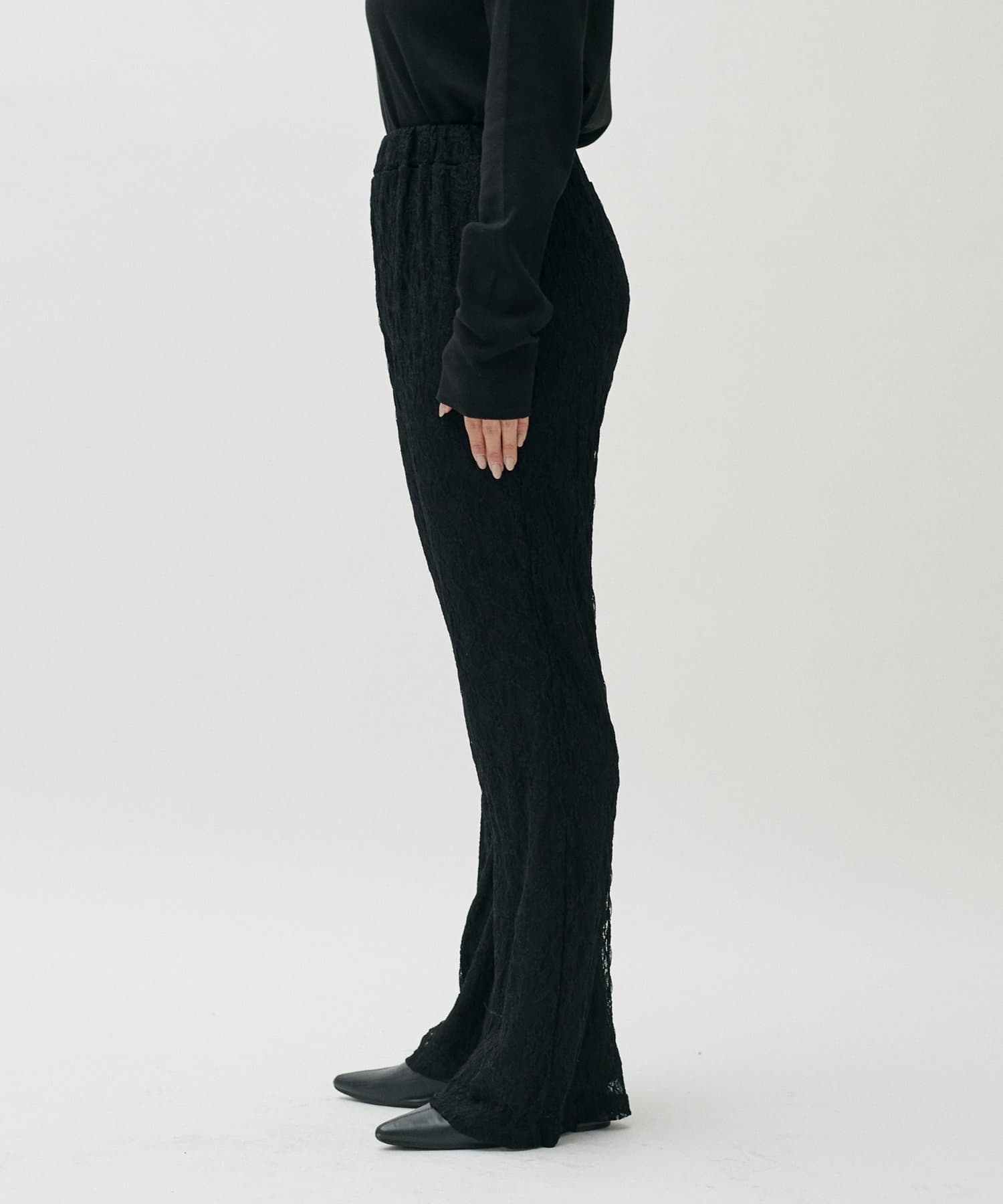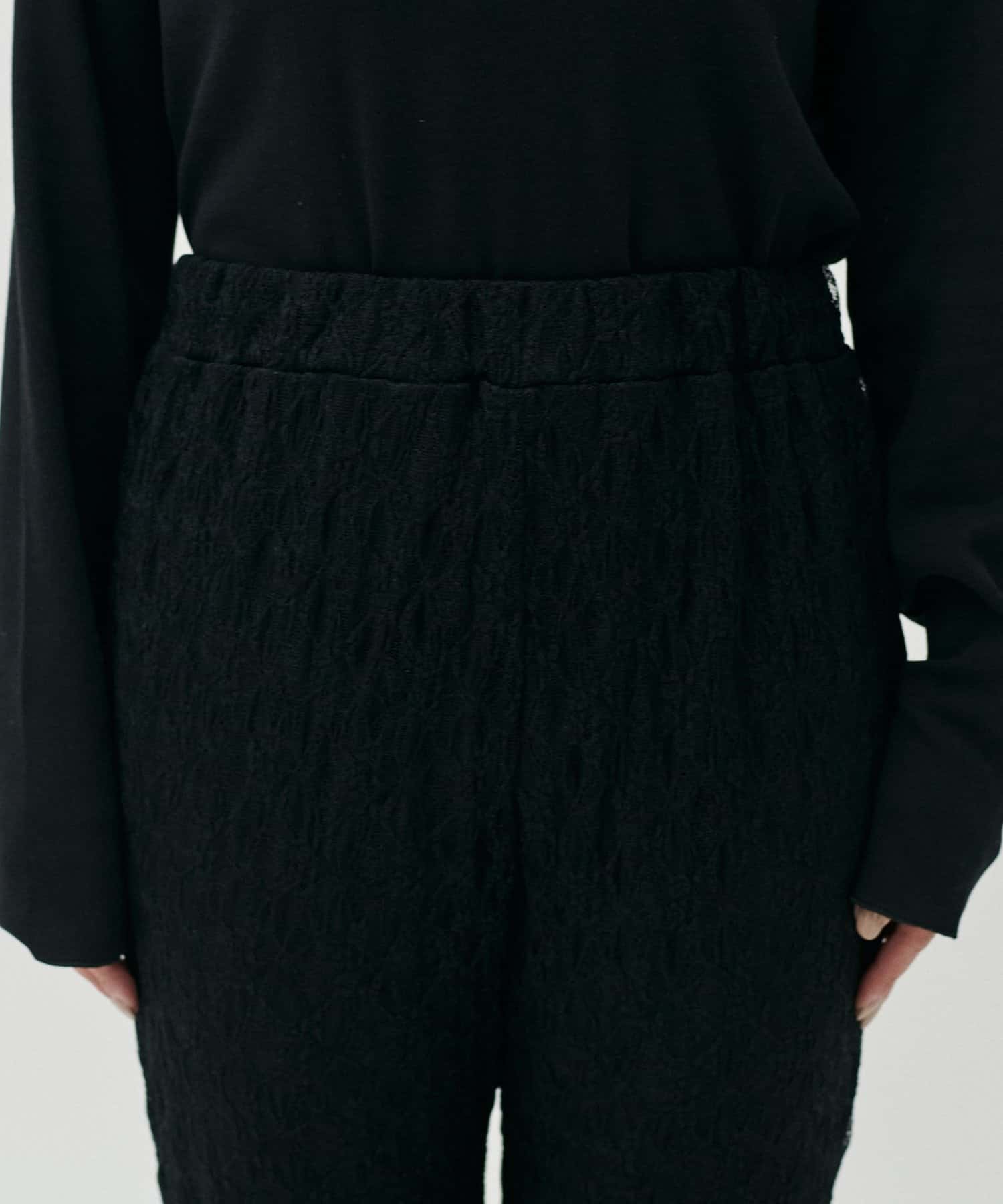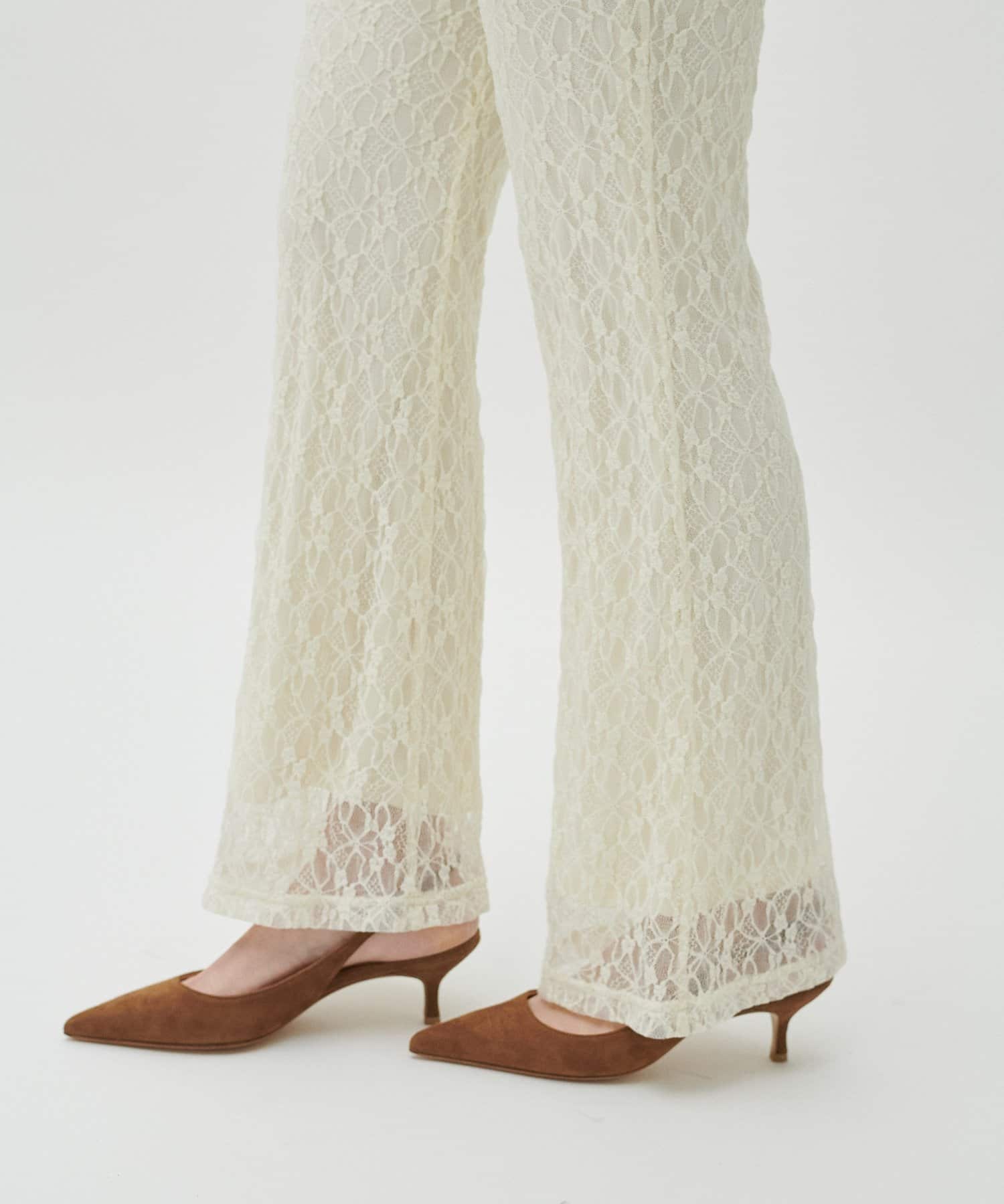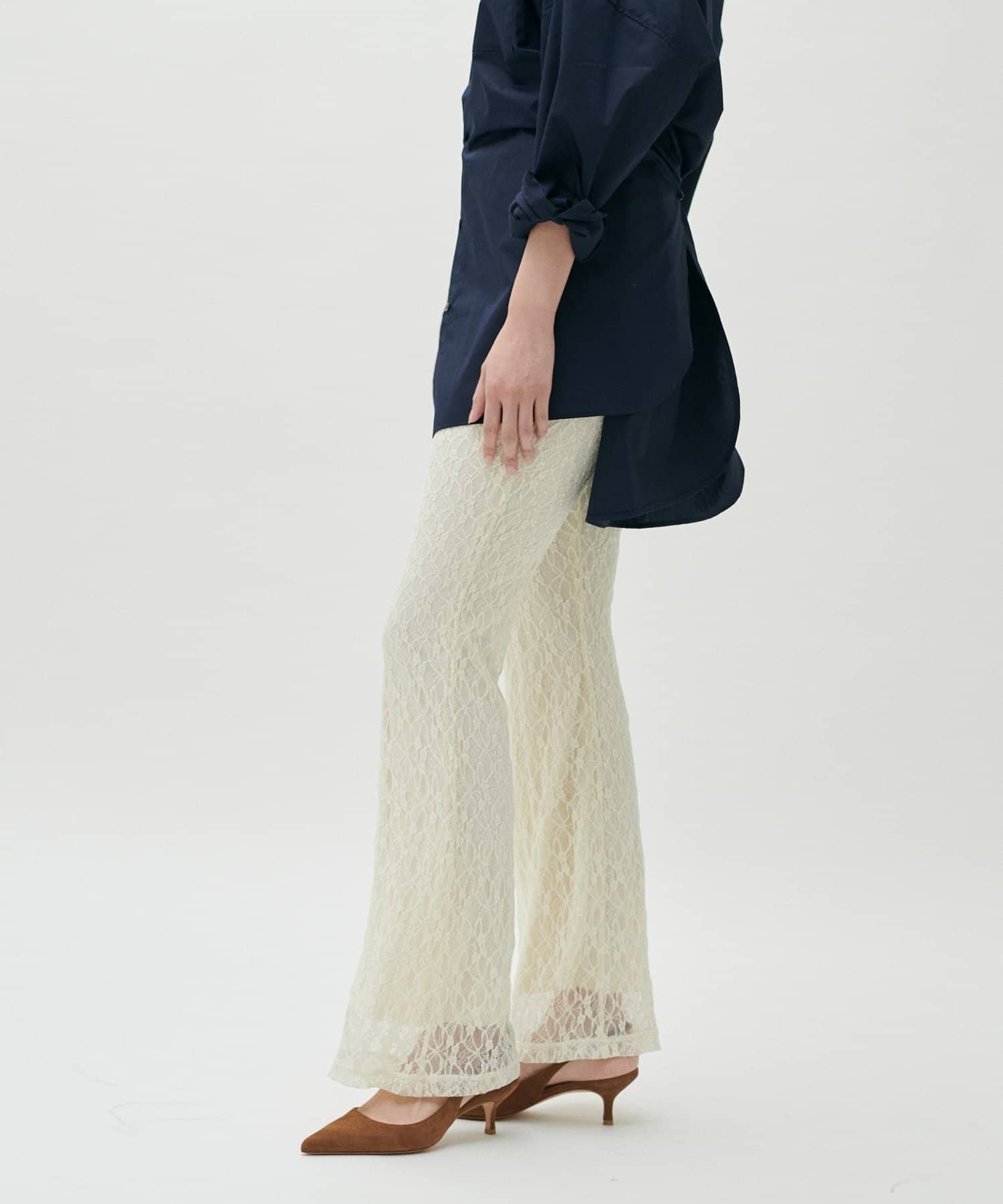 繊細なレース素材を、あえてリラックス感のあるカットソーパンツ型に落とし込んだ一本。