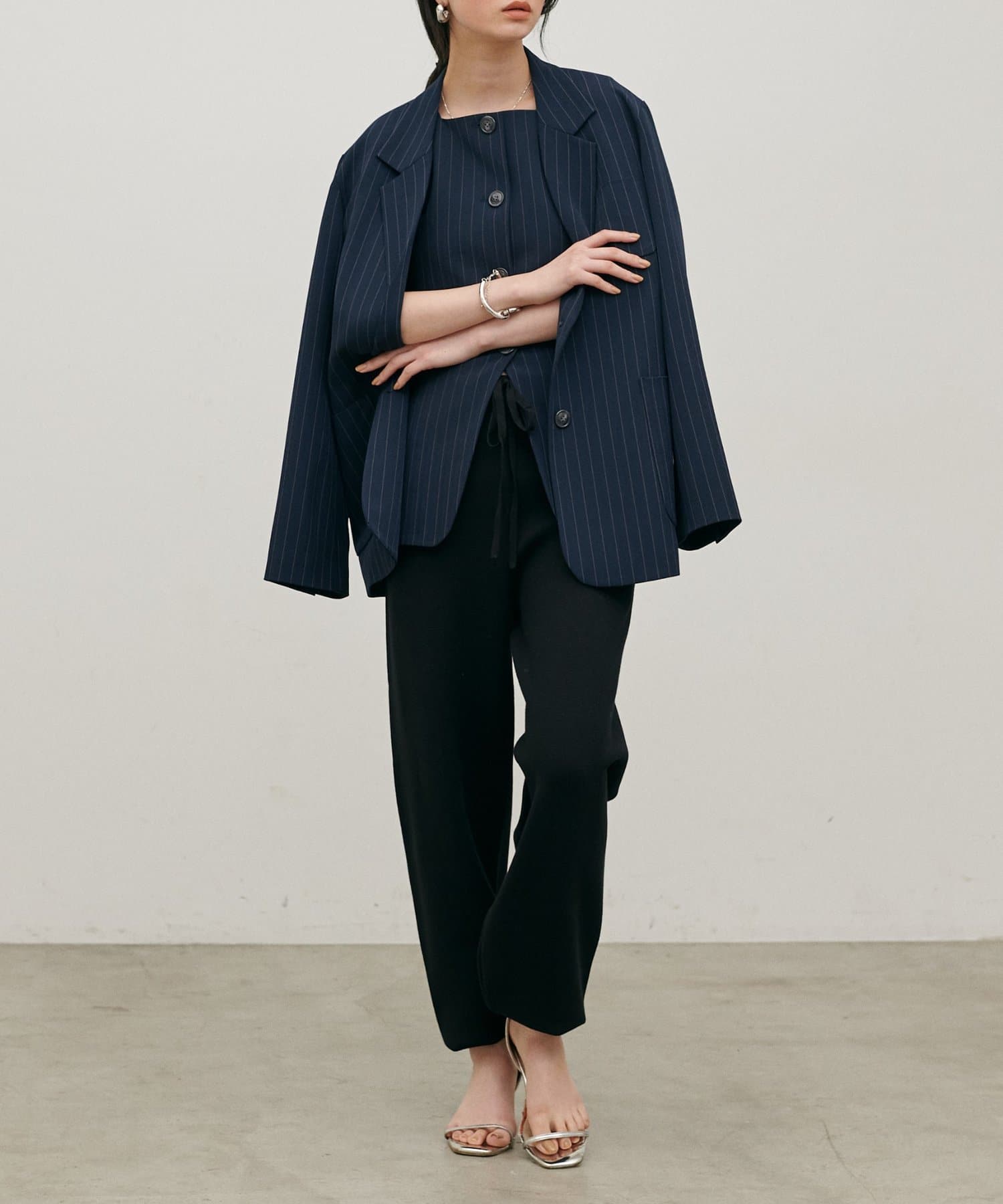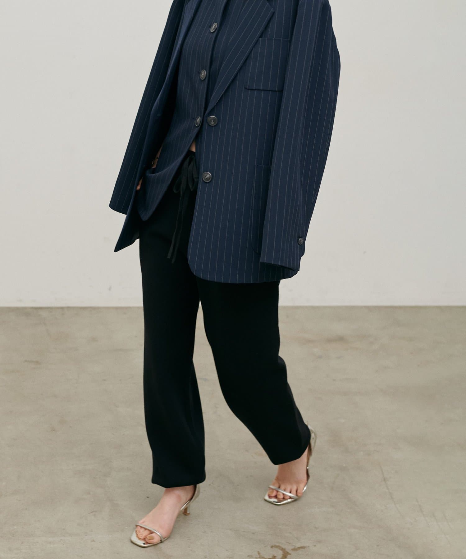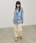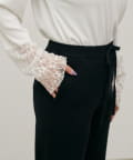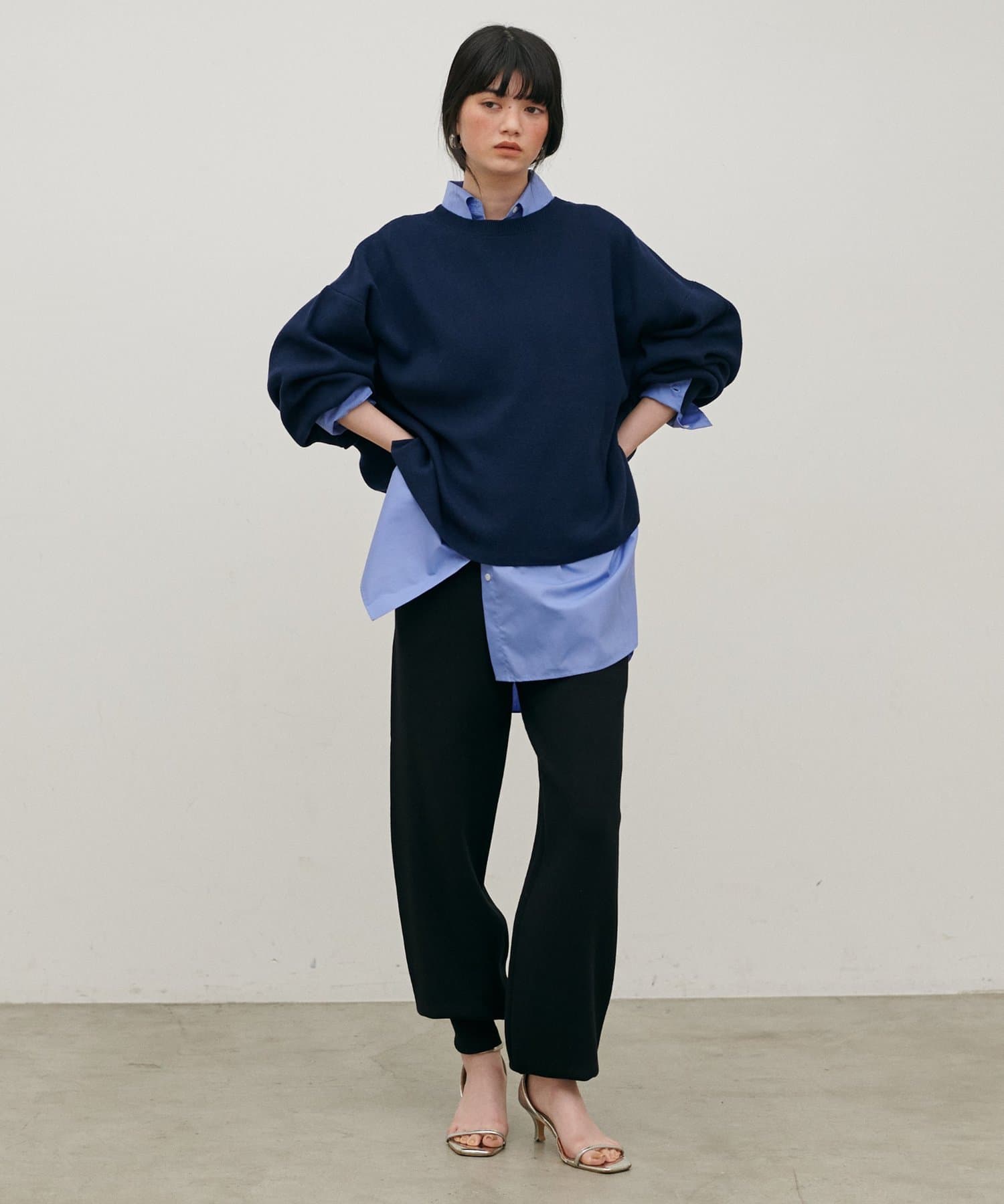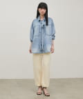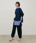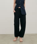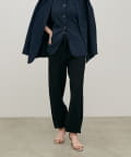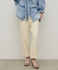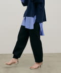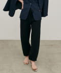 脚のラインを拾いにくいシルエットと、裾に向かってすっきりとしたフォルムで、リラックス感がありながらも品のある印象に。