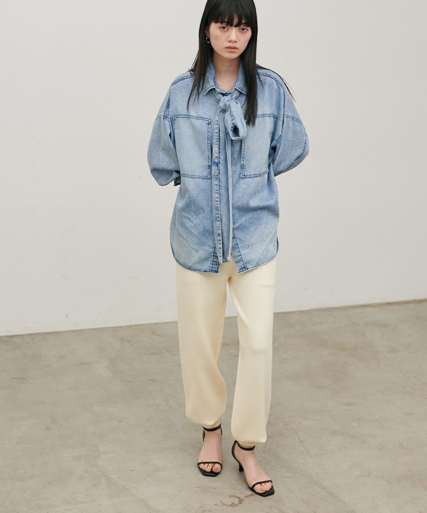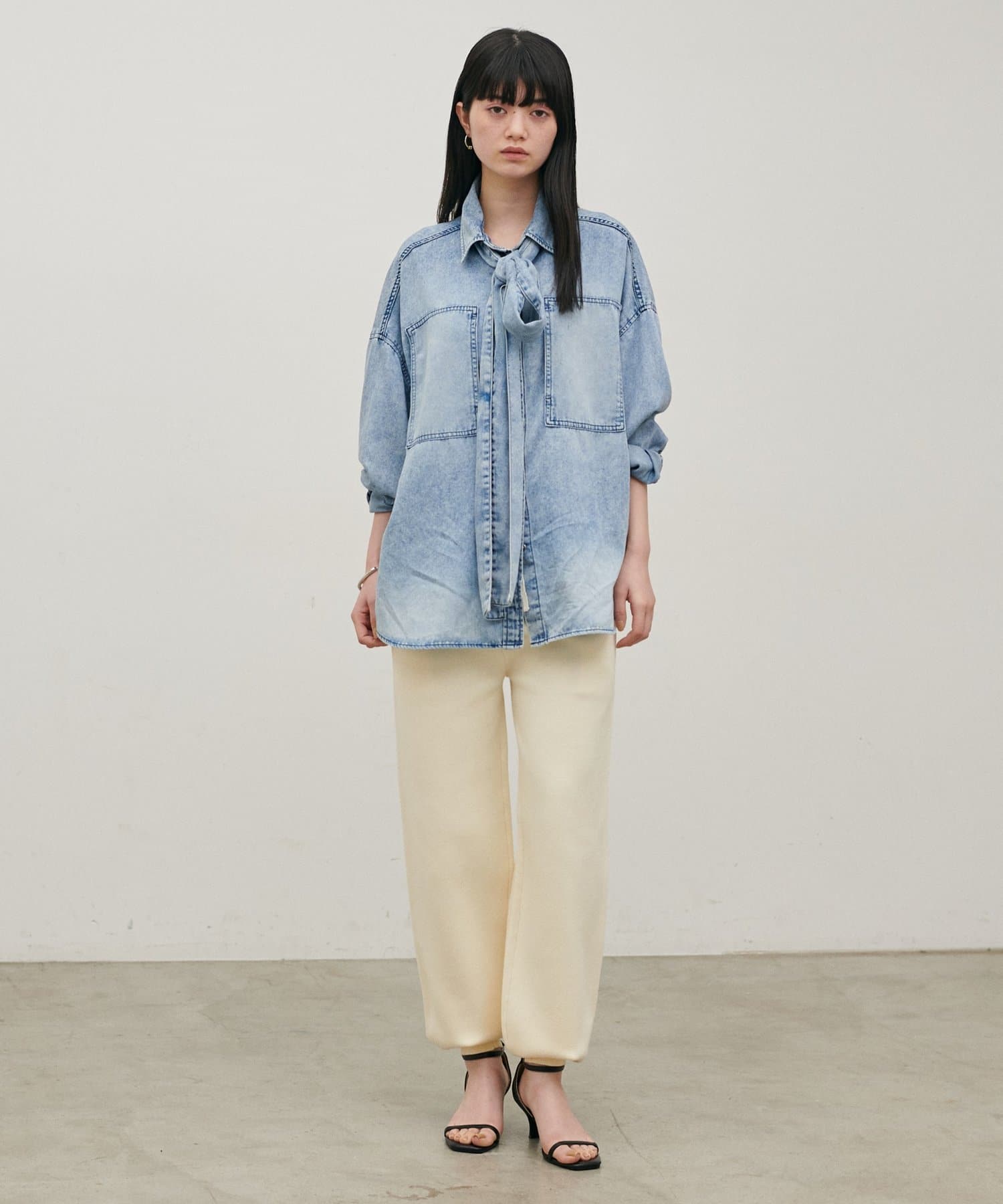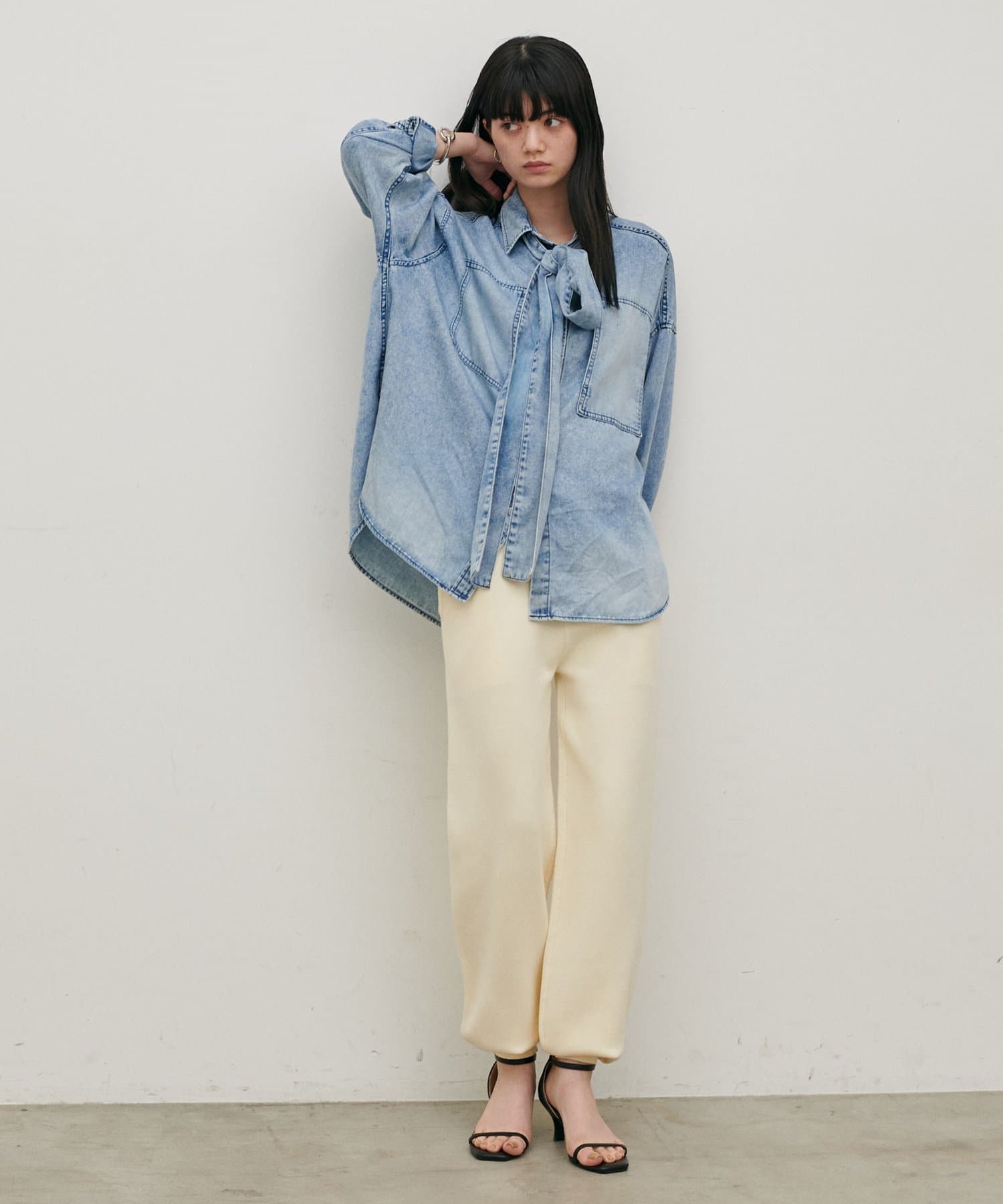 シャツやブラウス、ジャケットと合わせれば、きれいめカジュアルなスタイリングが完成。