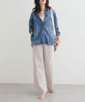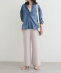 同素材のトップスと合わせたセットアップスタイルもおすすめです。